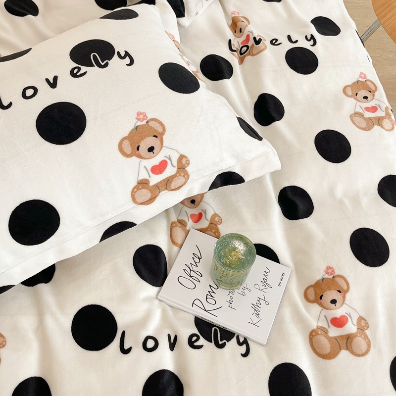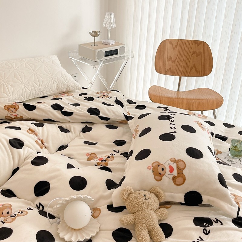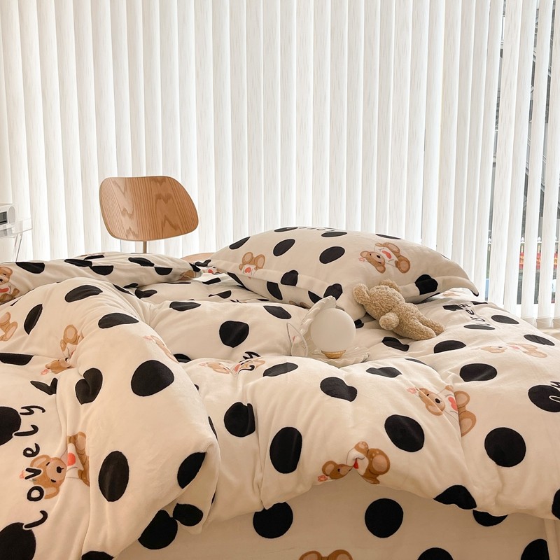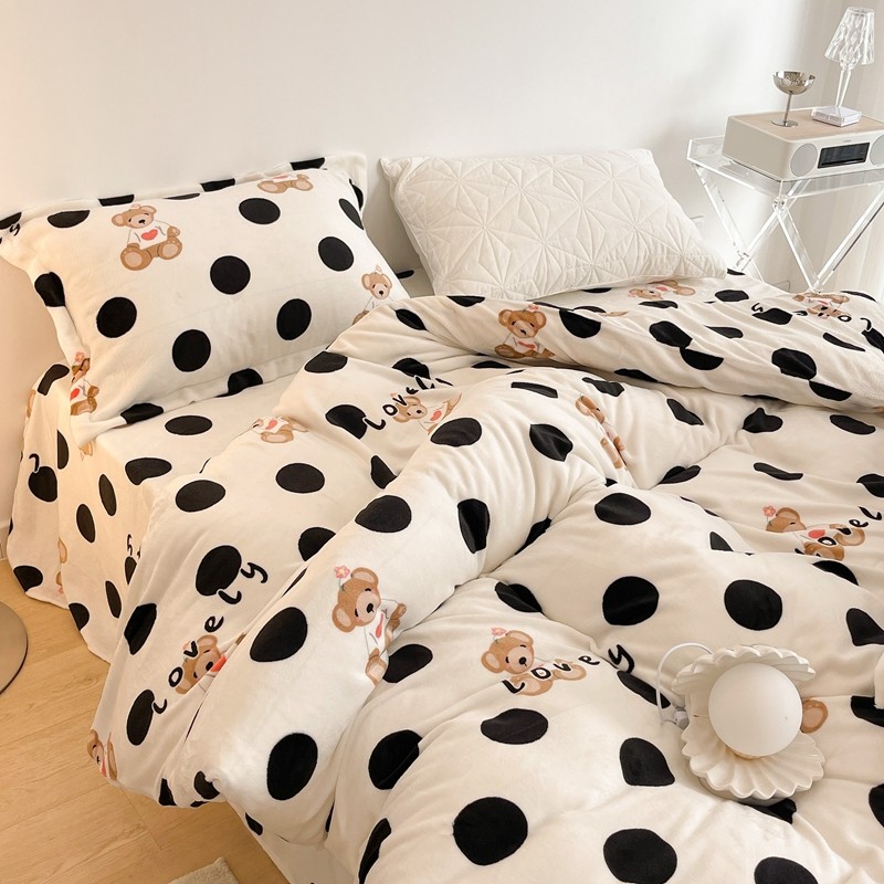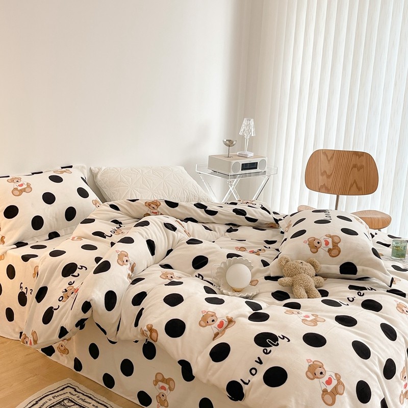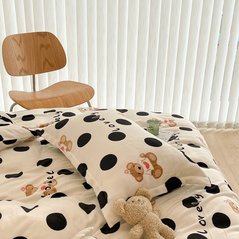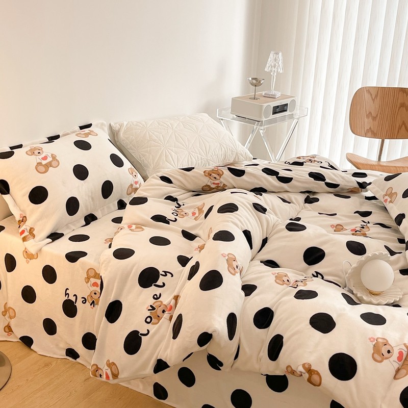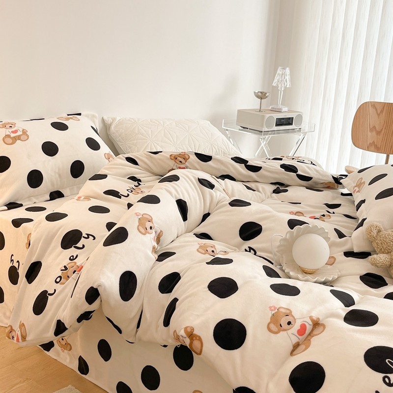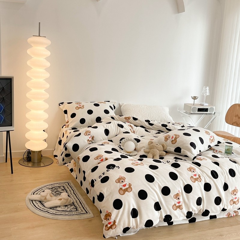 昔可家纺 2021新款牛奶绒四件套-二批 波点小熊仔