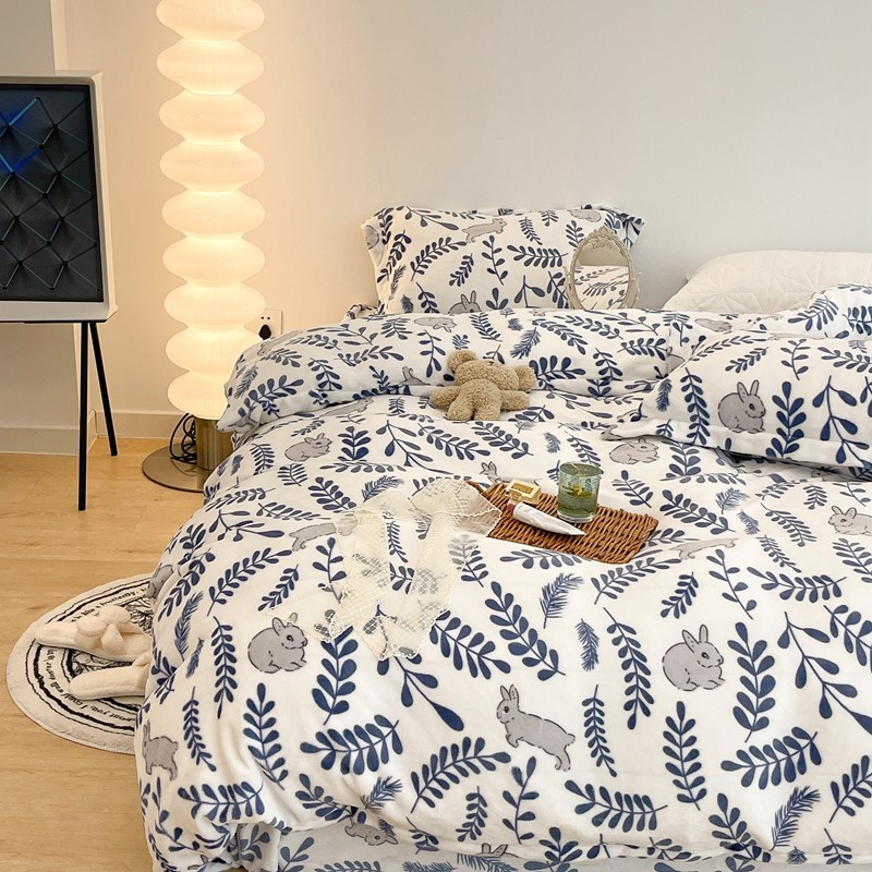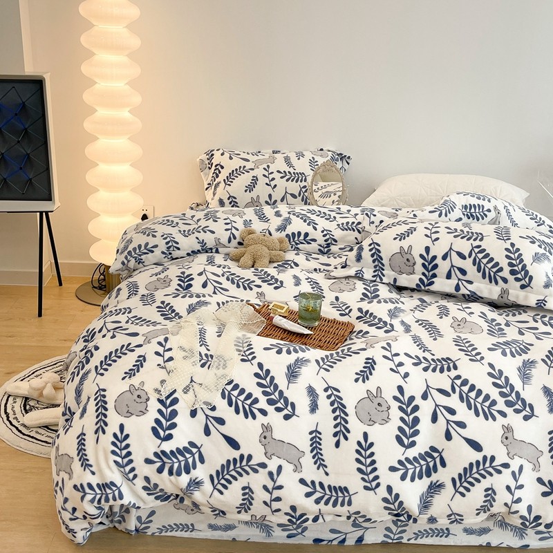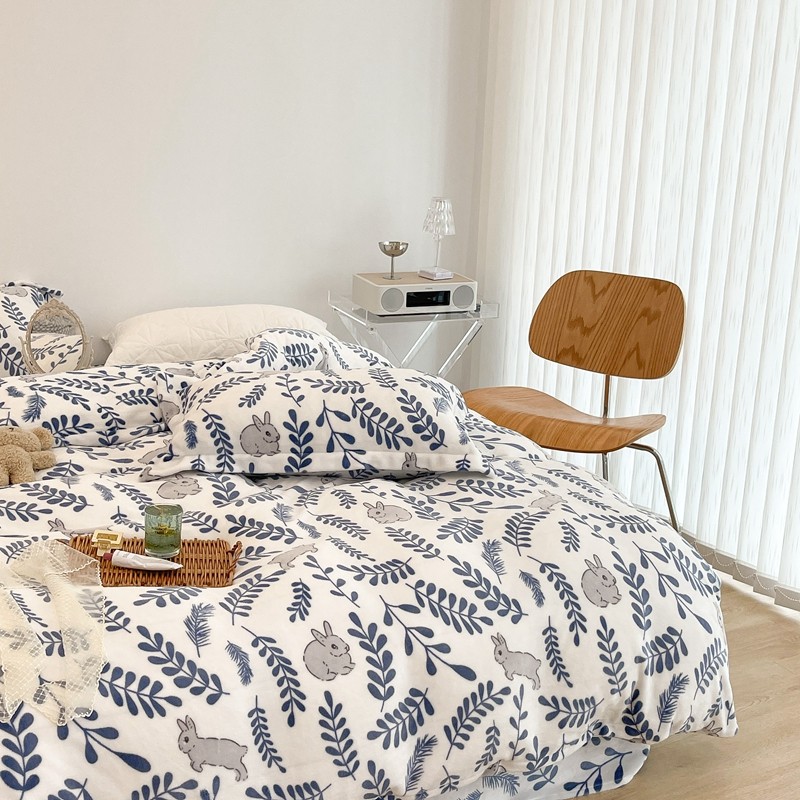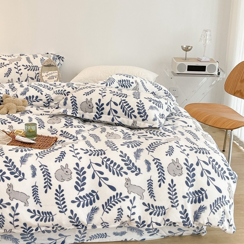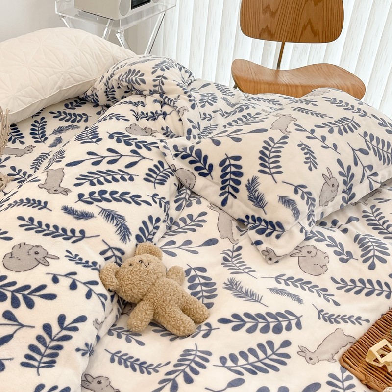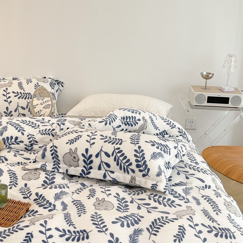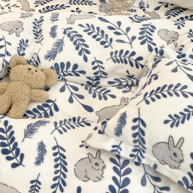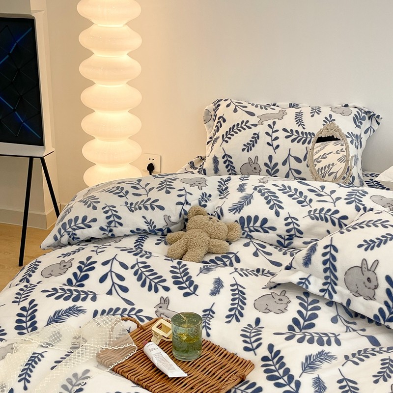 昔可家纺 2021新款牛奶绒四件套-二批 森系小兔