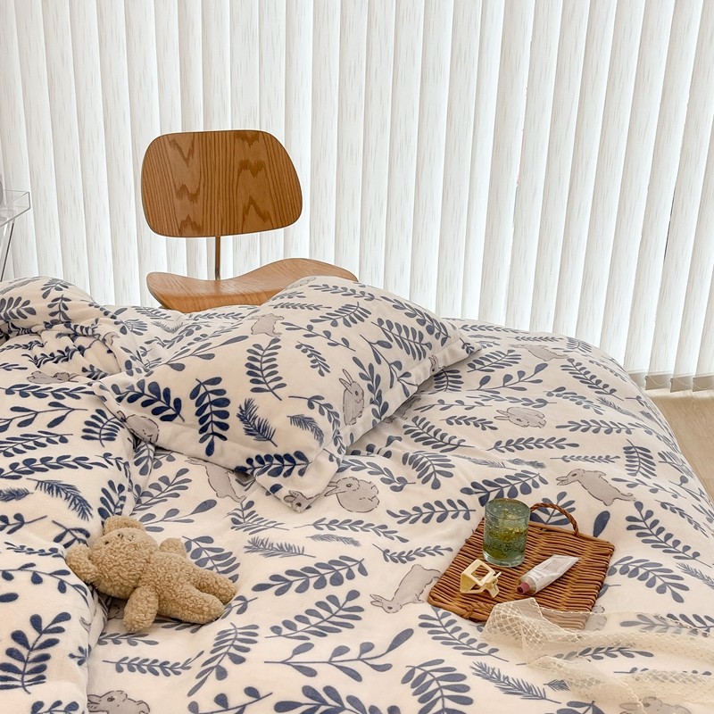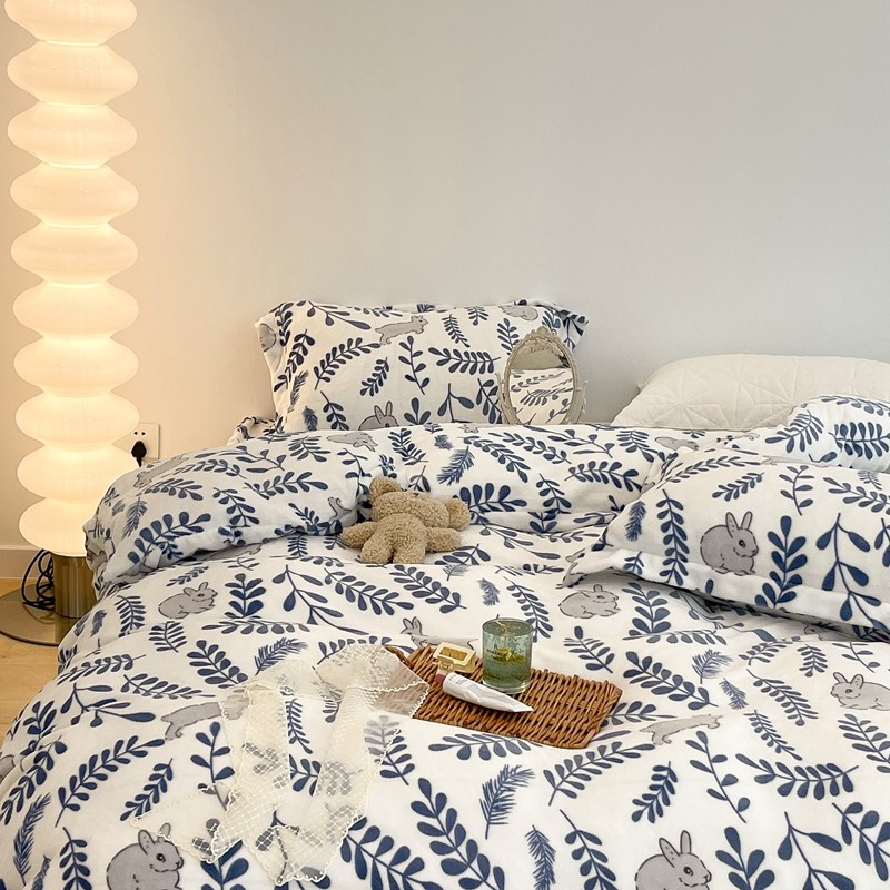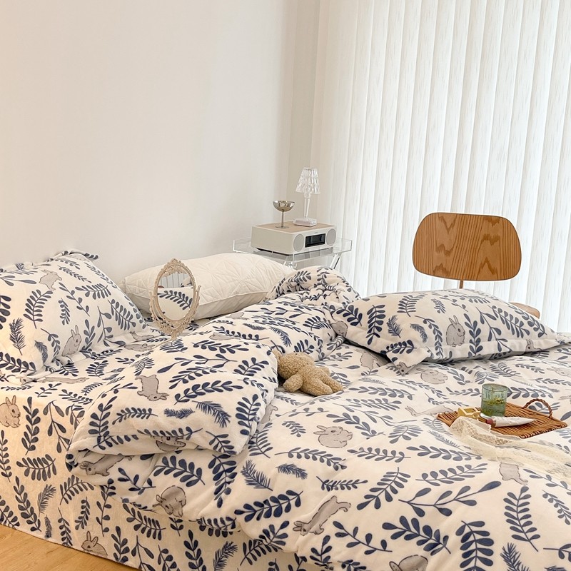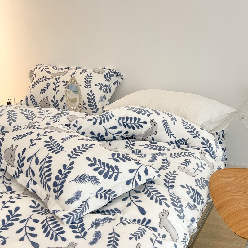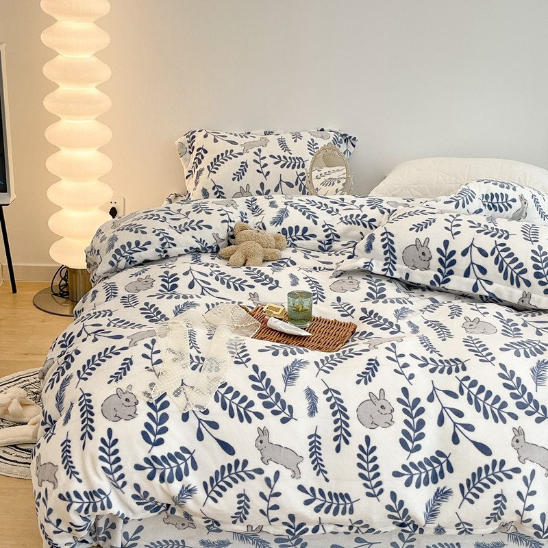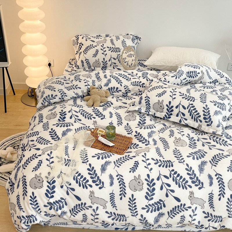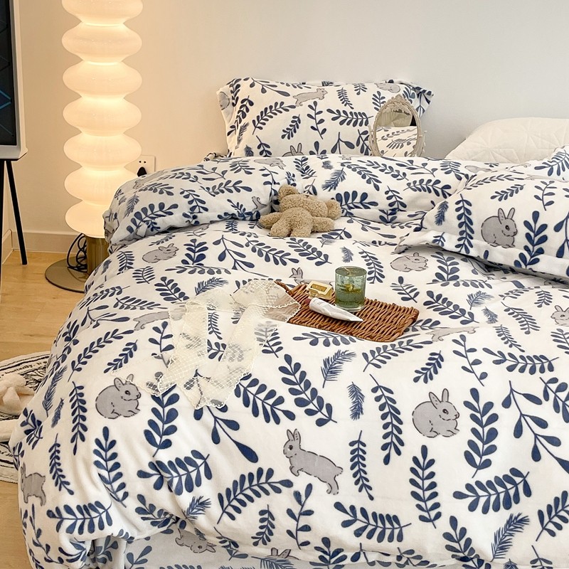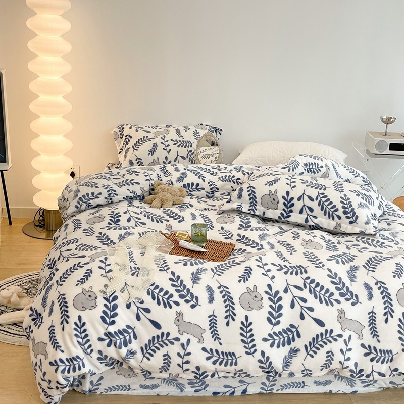 昔可家纺 2021新款牛奶绒四件套-二批 森系小兔