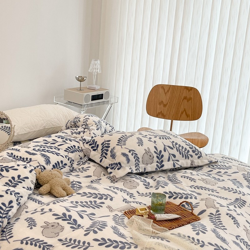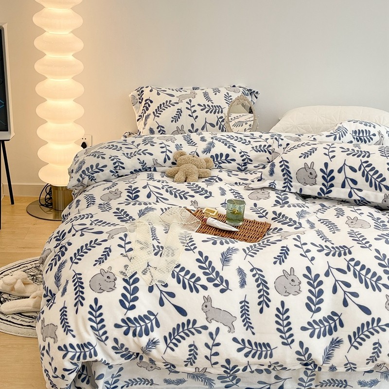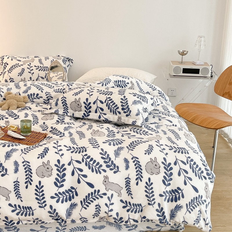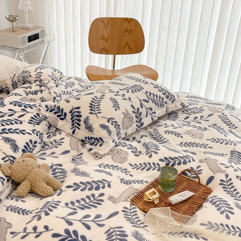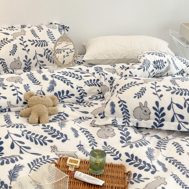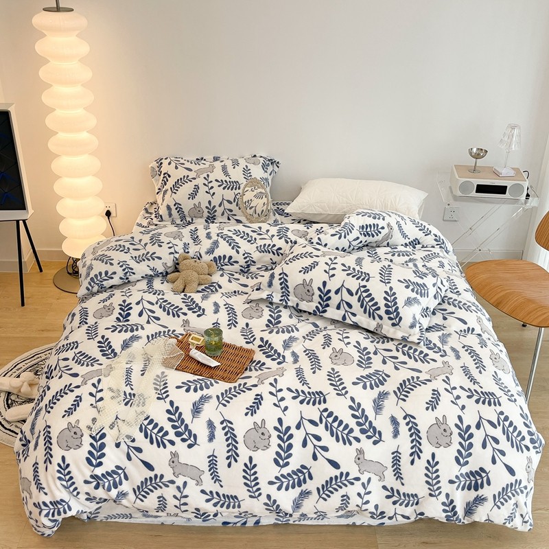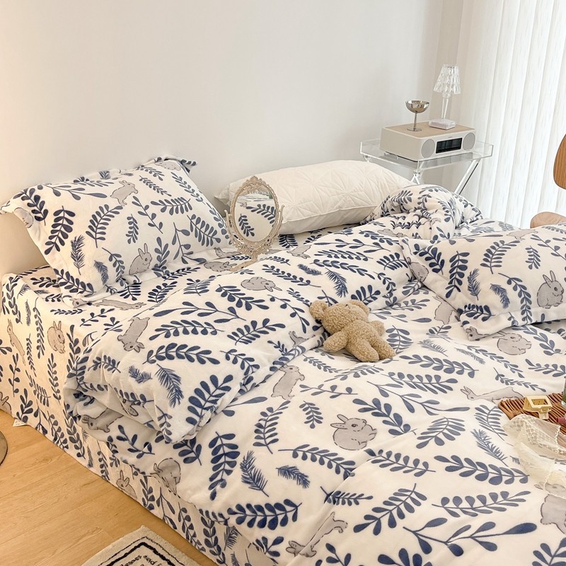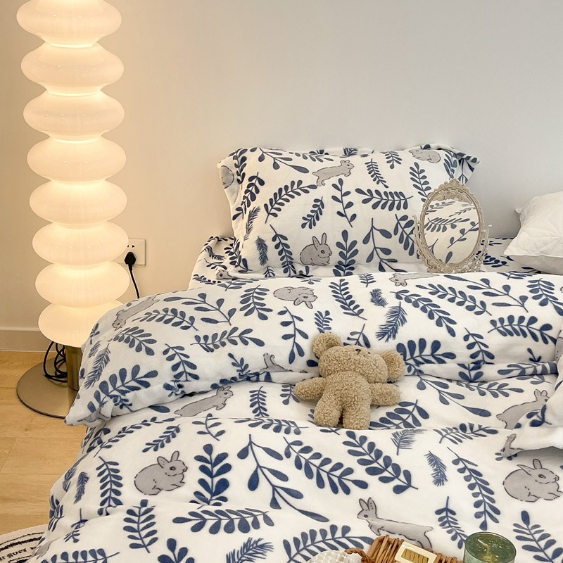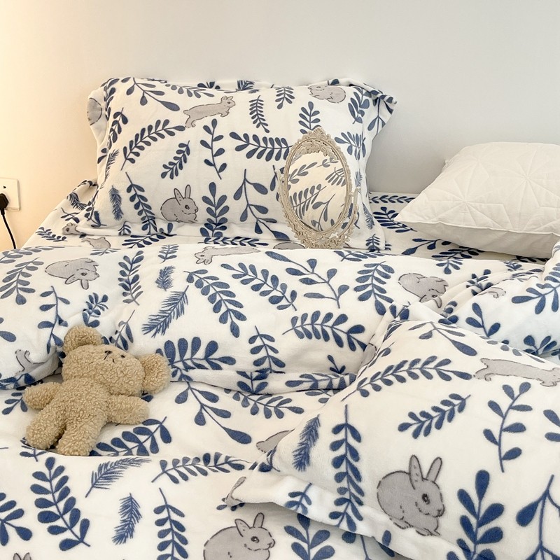 昔可家纺 2021新款牛奶绒四件套-二批 森系小兔