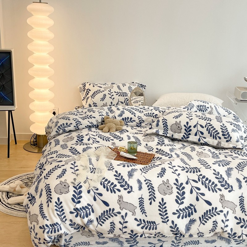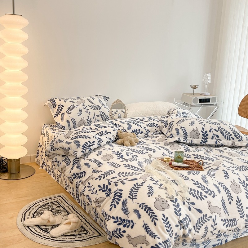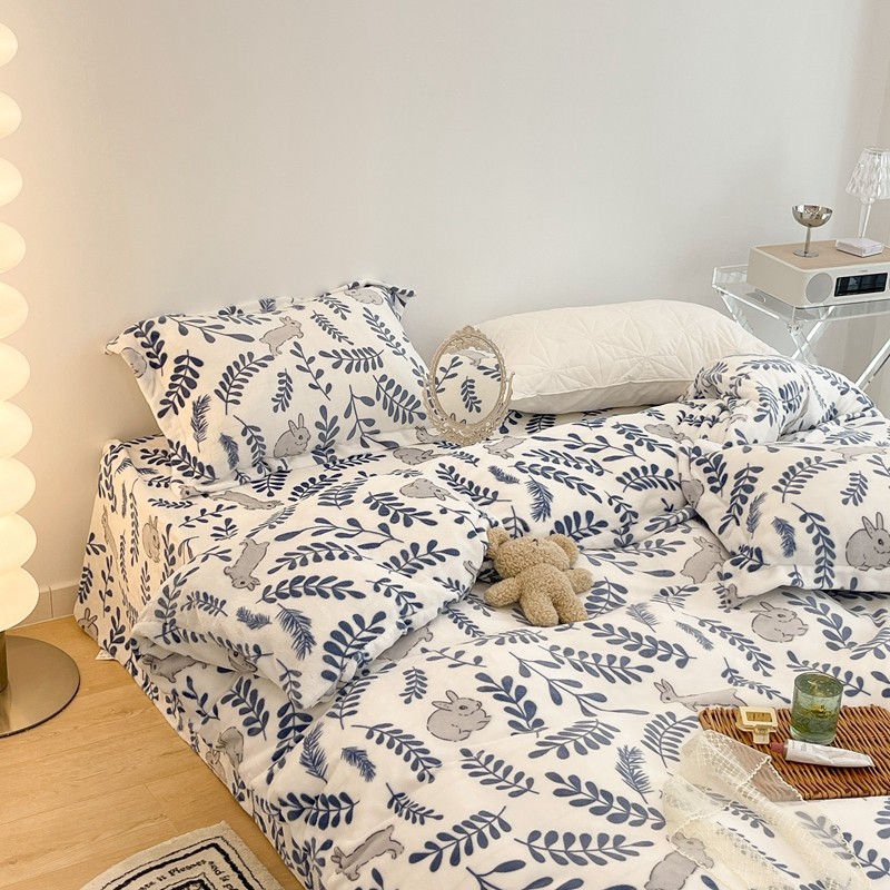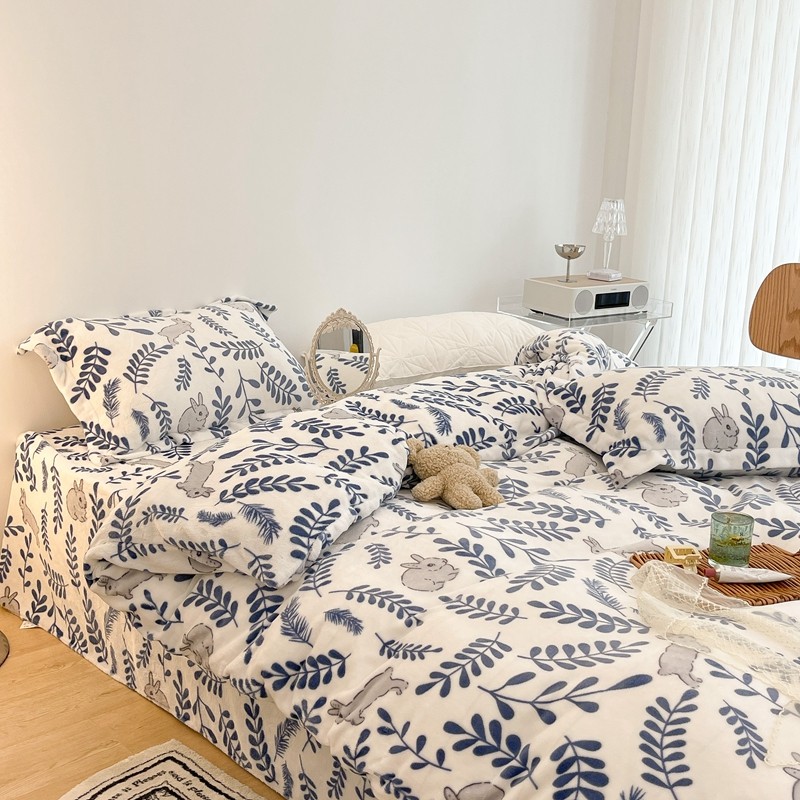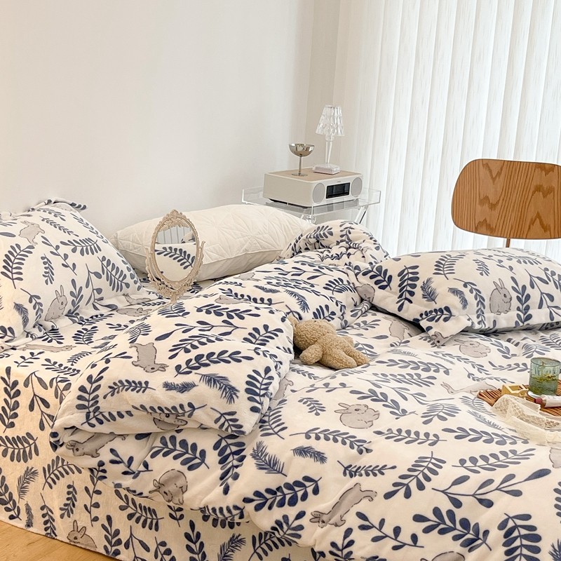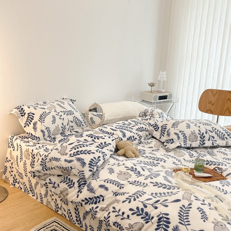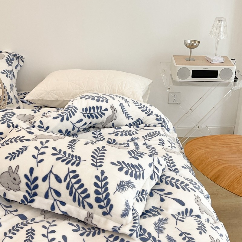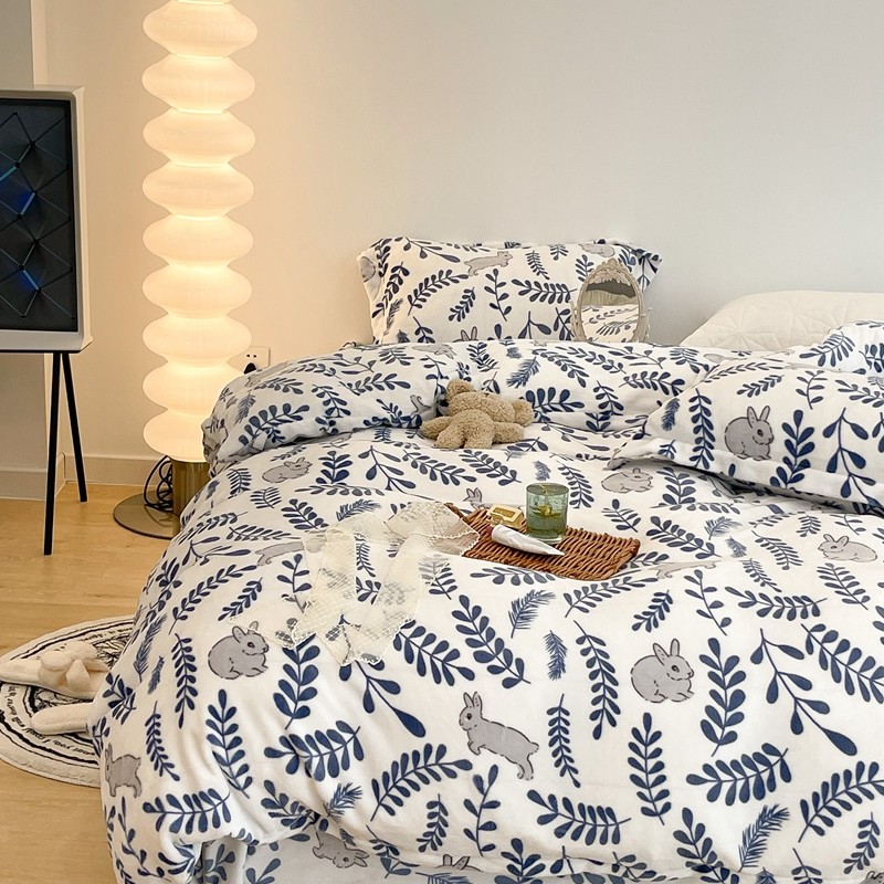 昔可家纺 2021新款牛奶绒四件套-二批 森系小兔