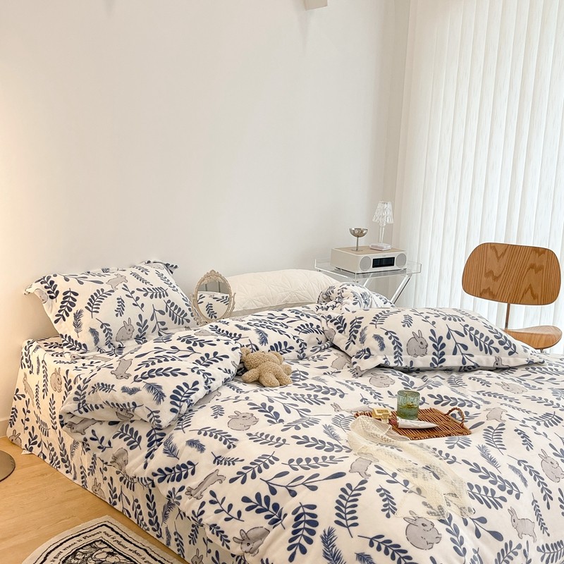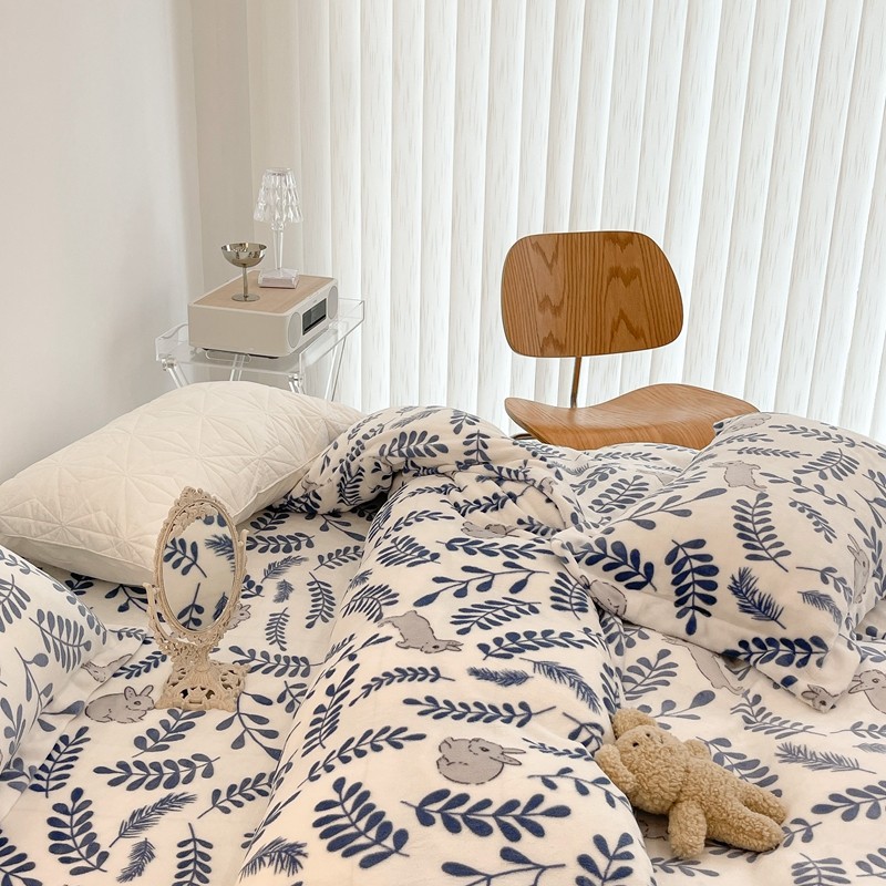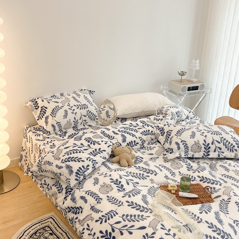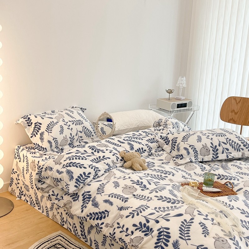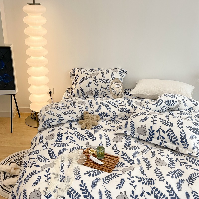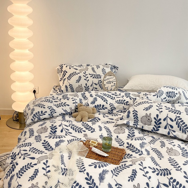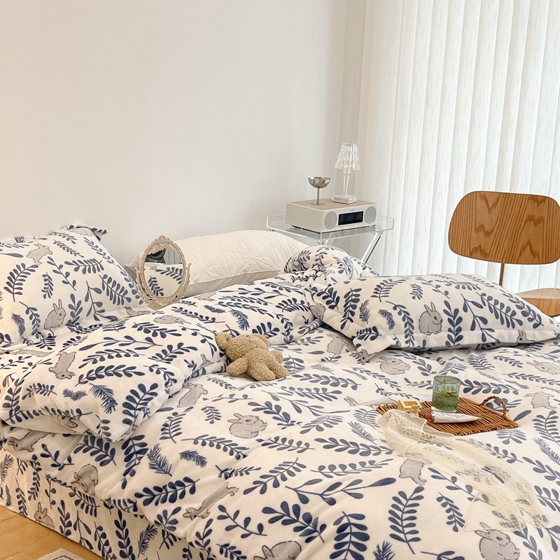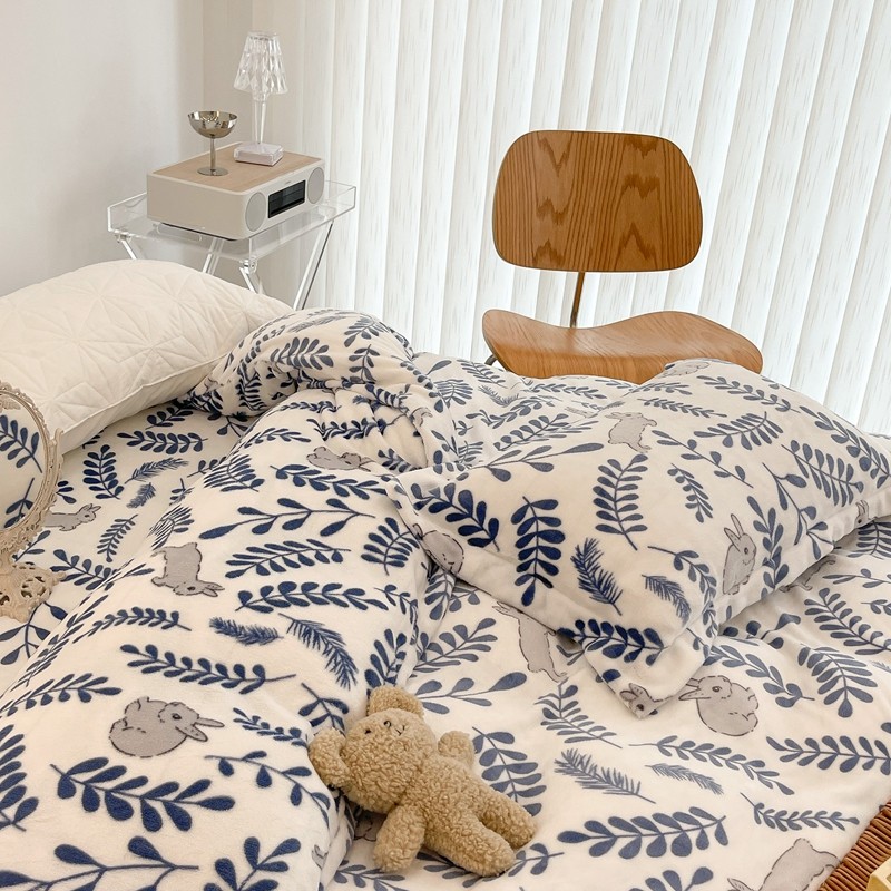 昔可家纺 2021新款牛奶绒四件套-二批 森系小兔