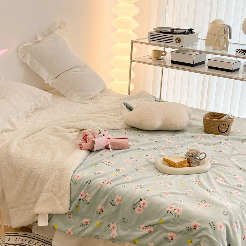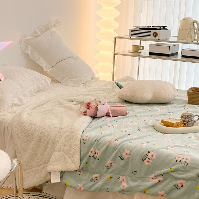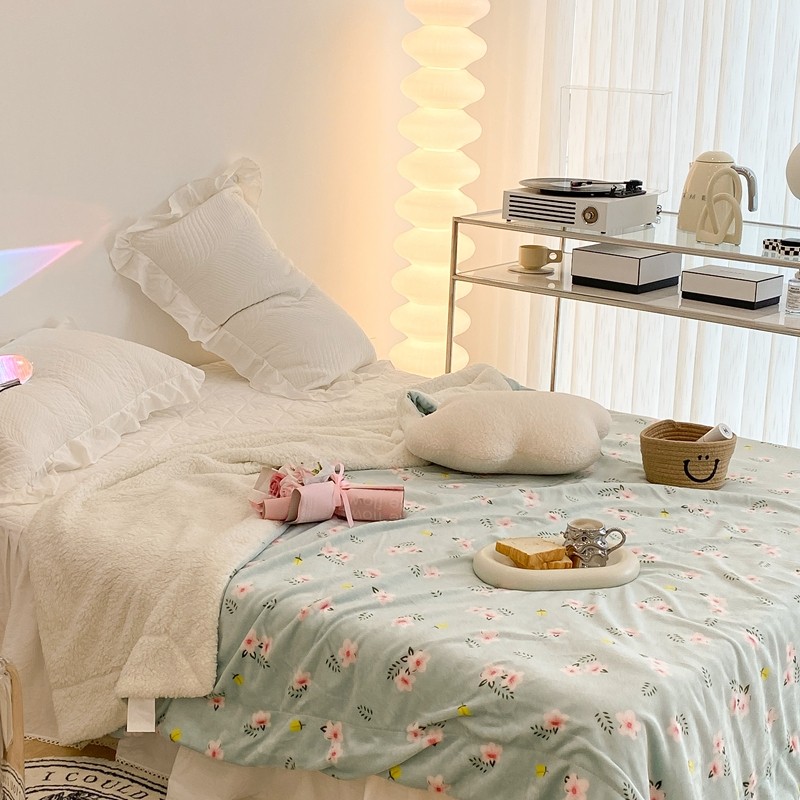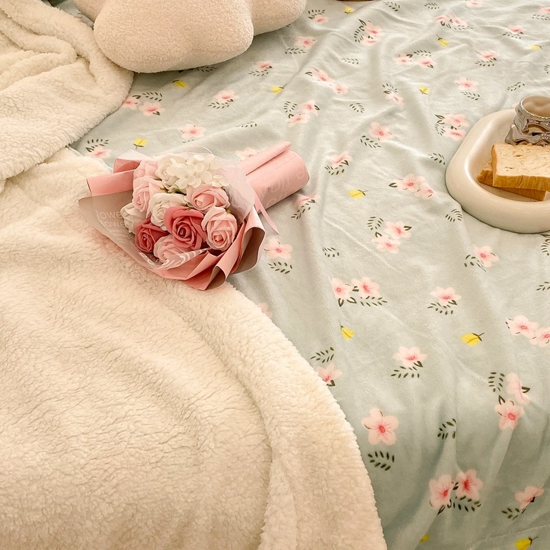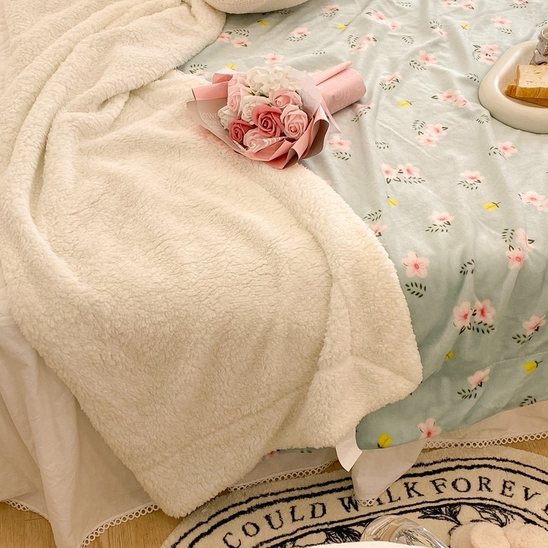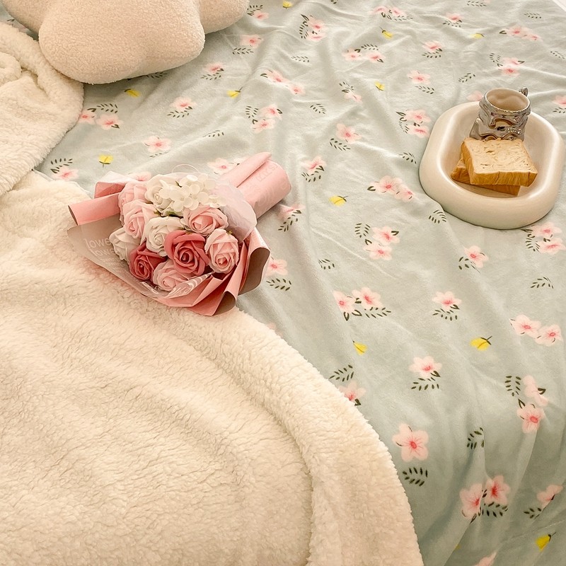昔可家纺 2021新款牛奶羊羔绒印花毯 花漾