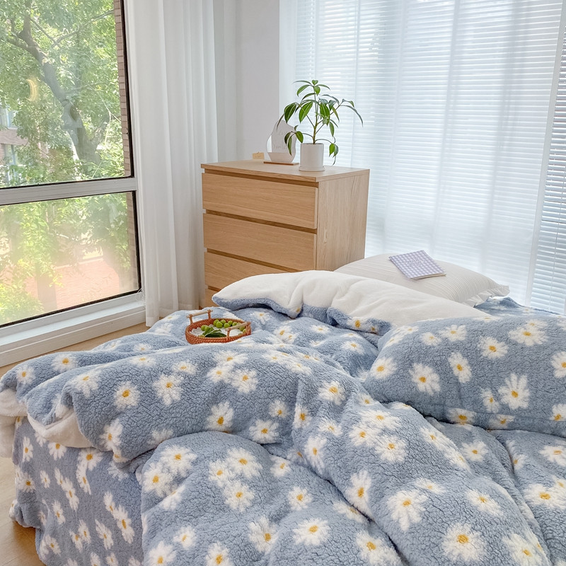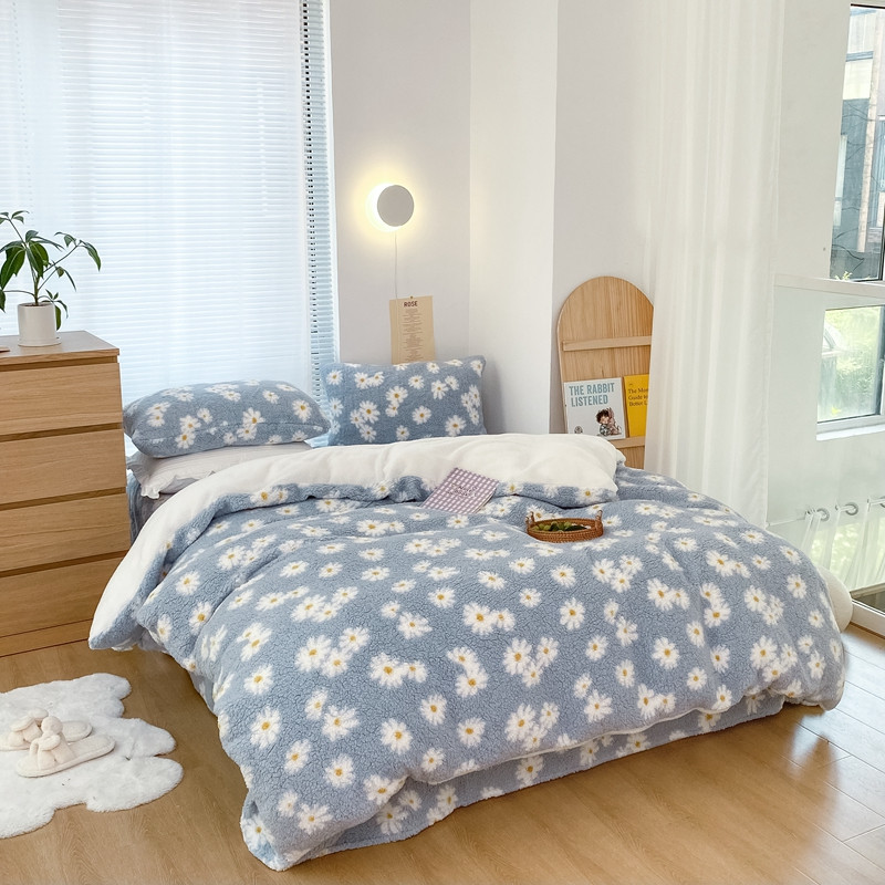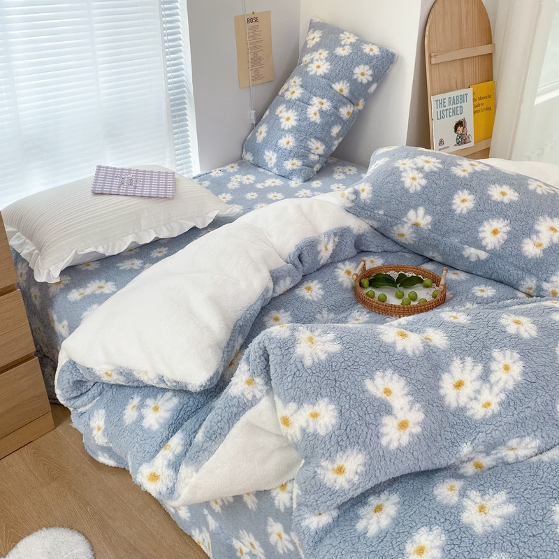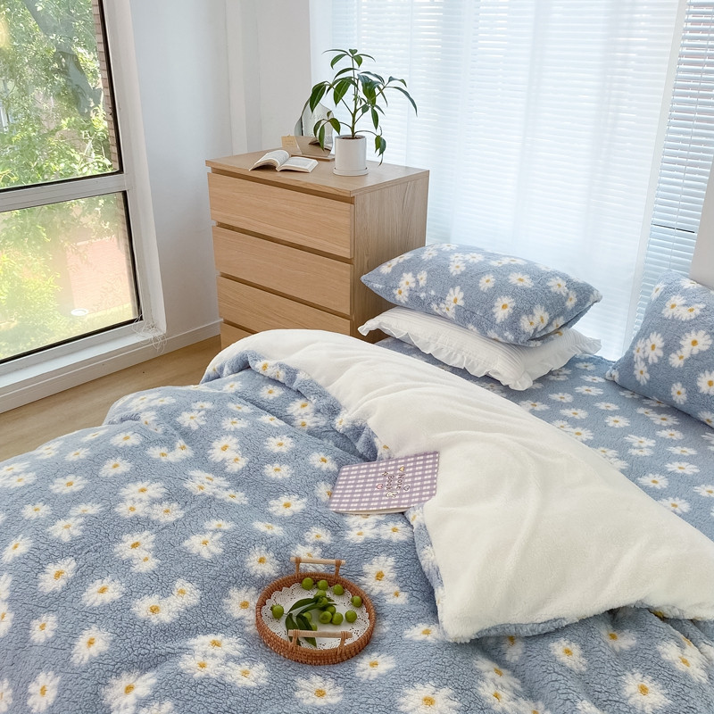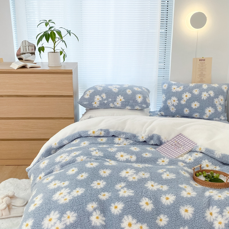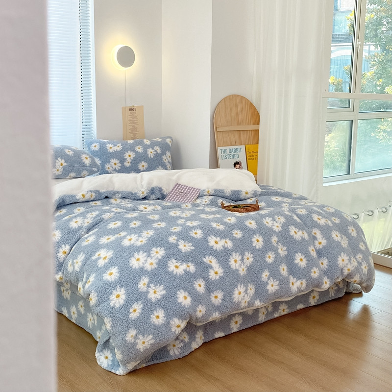 昔可 2021新款泰迪羊羔绒四件套 浅蓝小雏菊