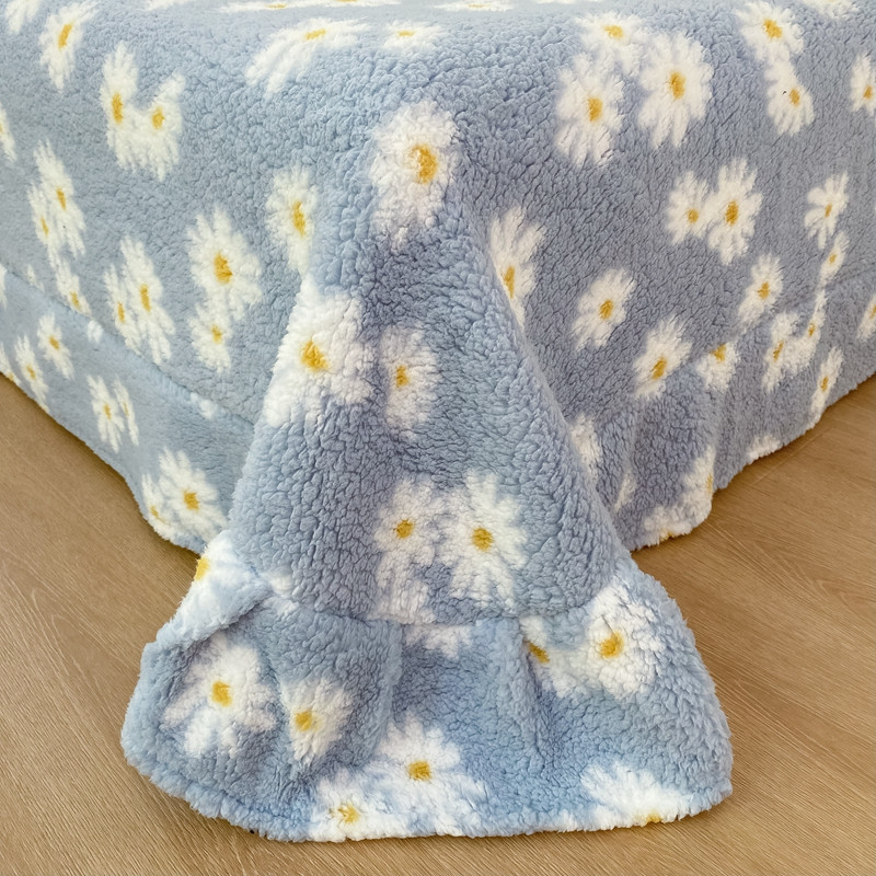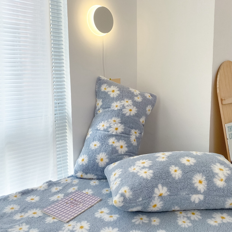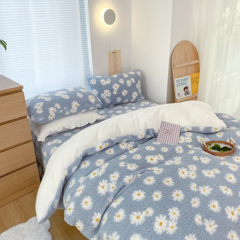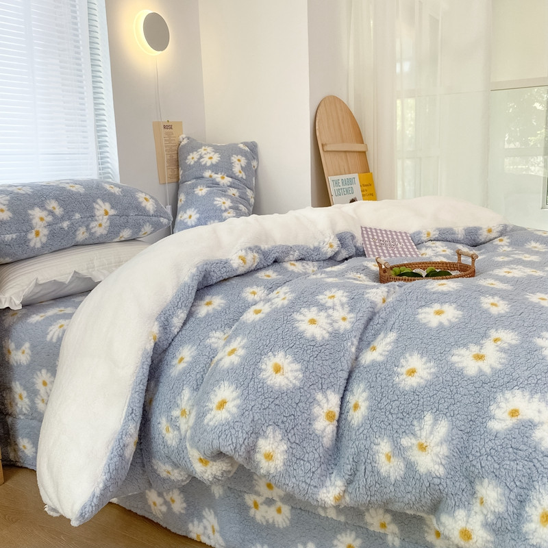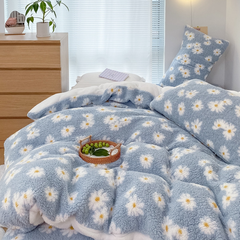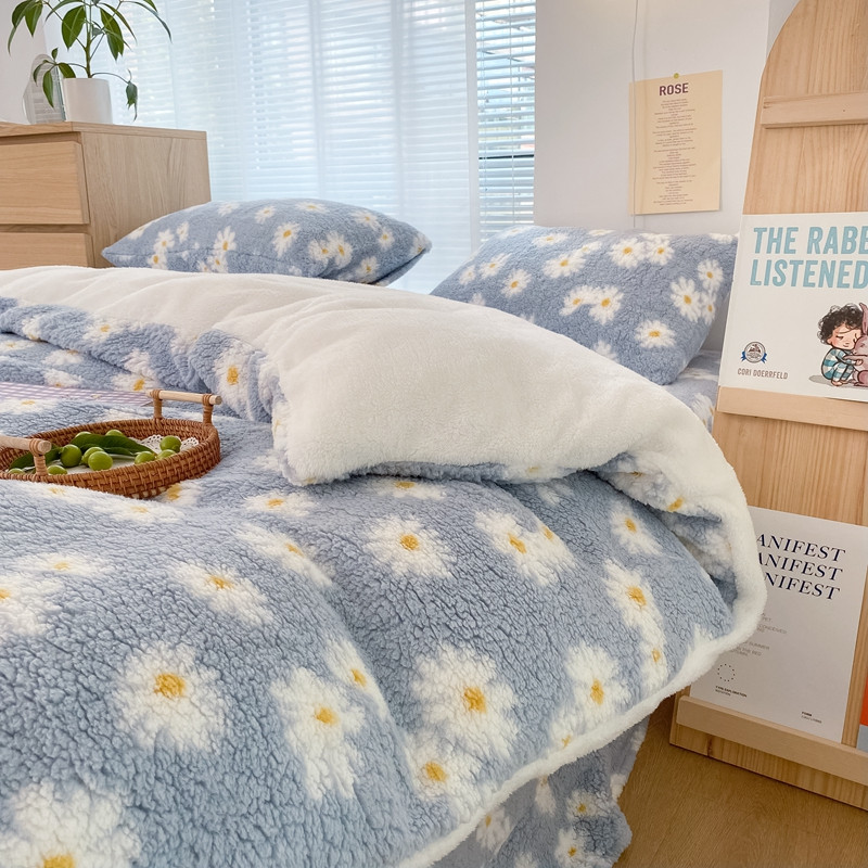 昔可 2021新款泰迪羊羔绒四件套 浅蓝小雏菊