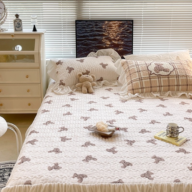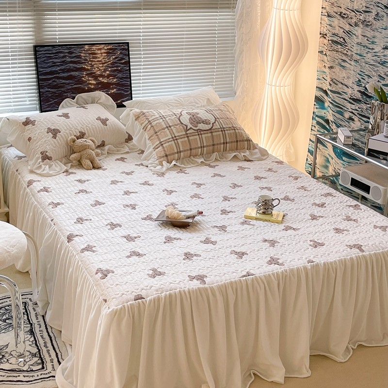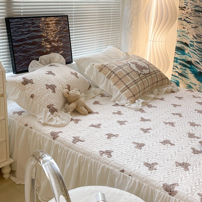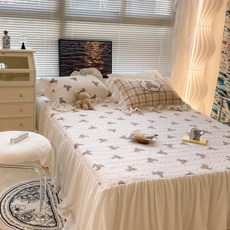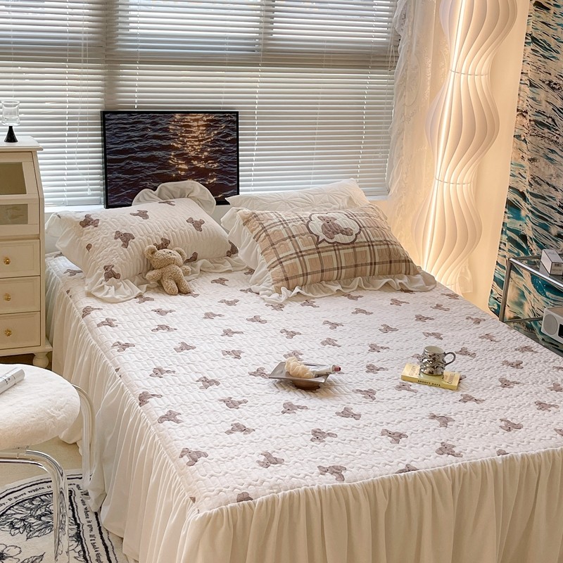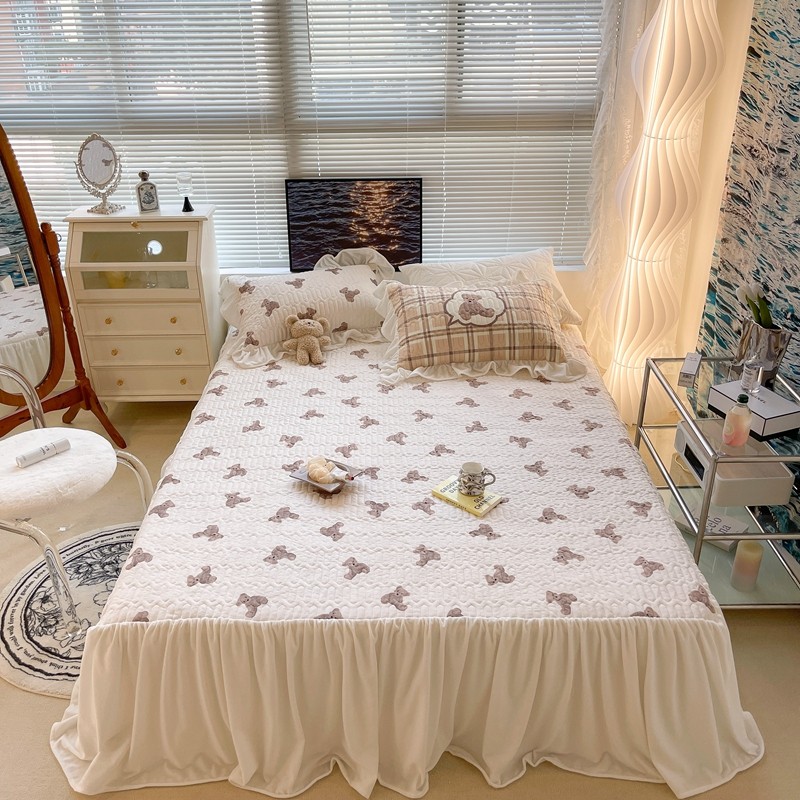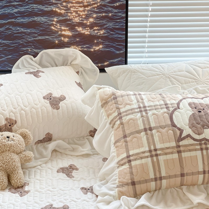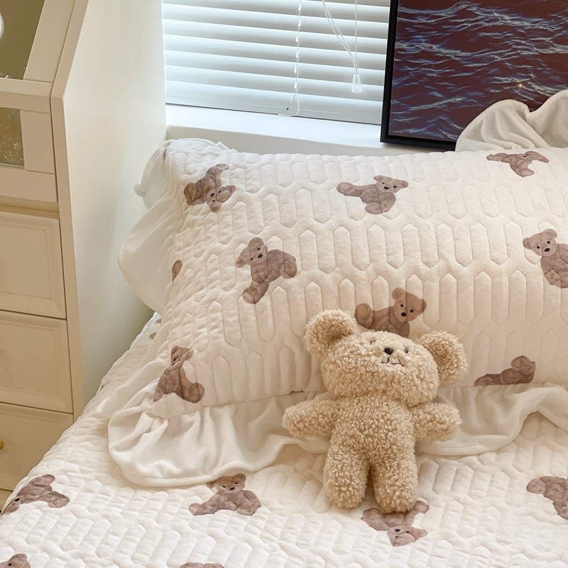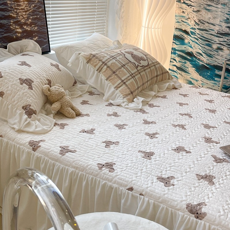 昔可家纺 2021新款秋冬超仙牛奶宝宝绒床裙 小小熊仔