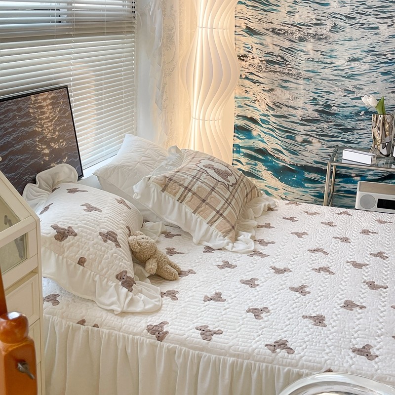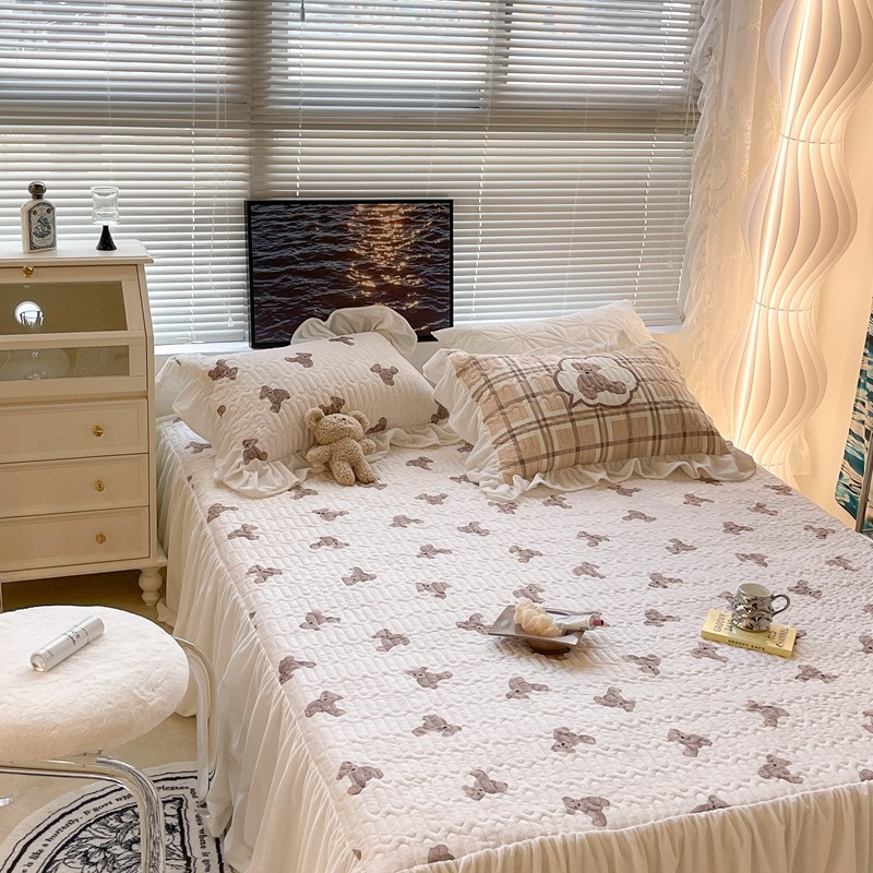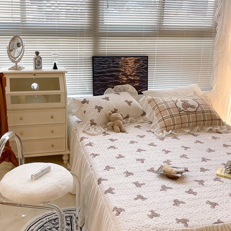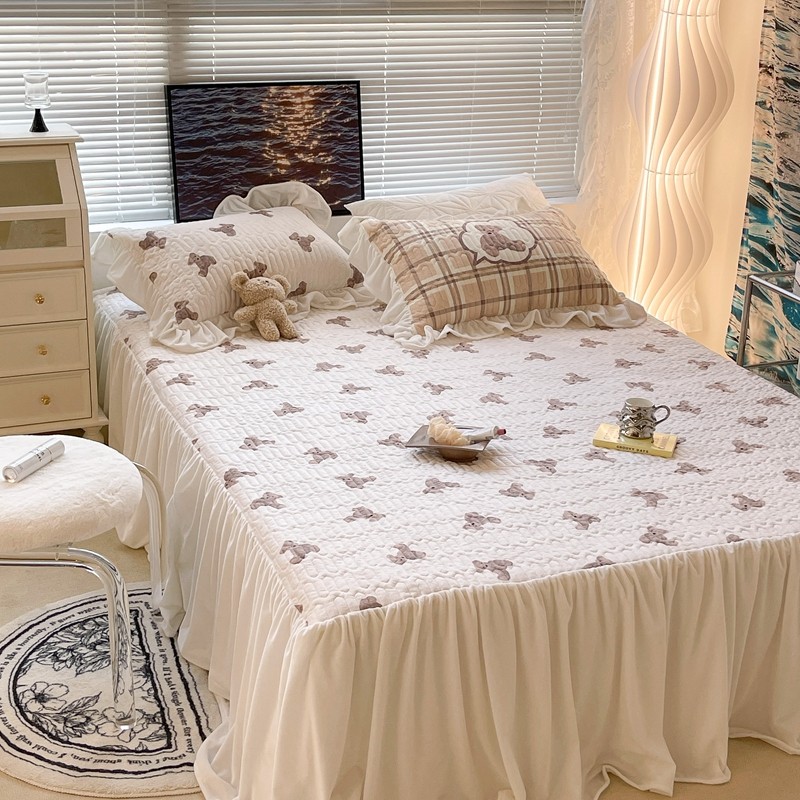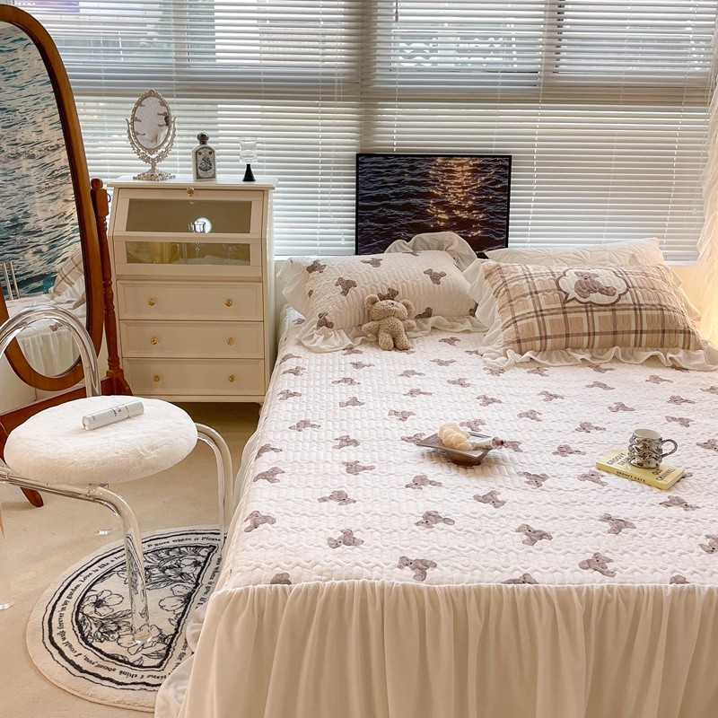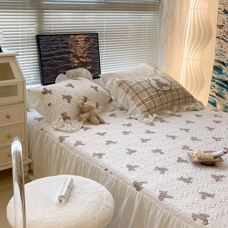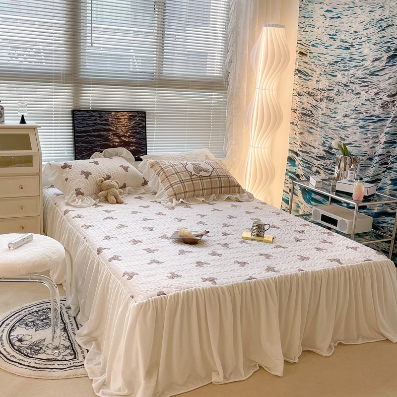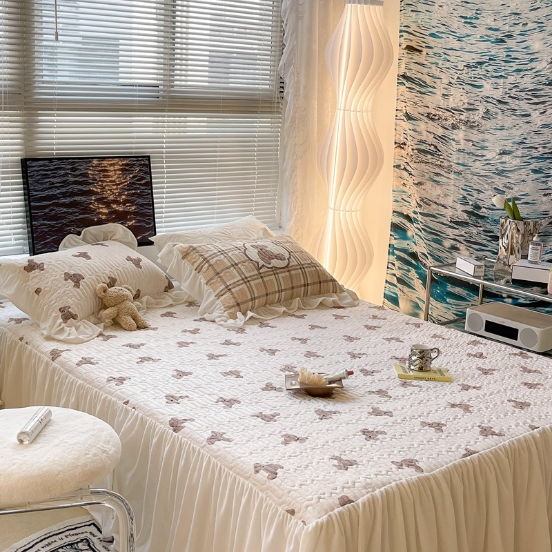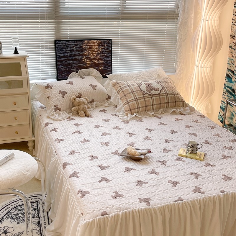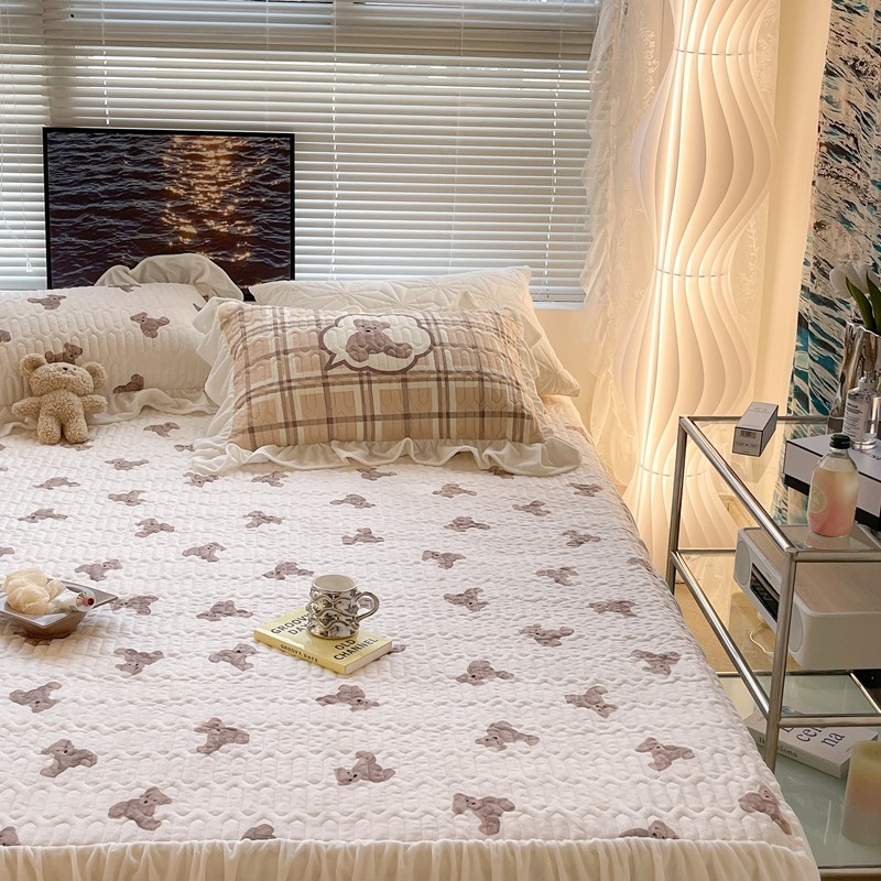 昔可家纺 2021新款秋冬超仙牛奶宝宝绒床裙 小小熊仔