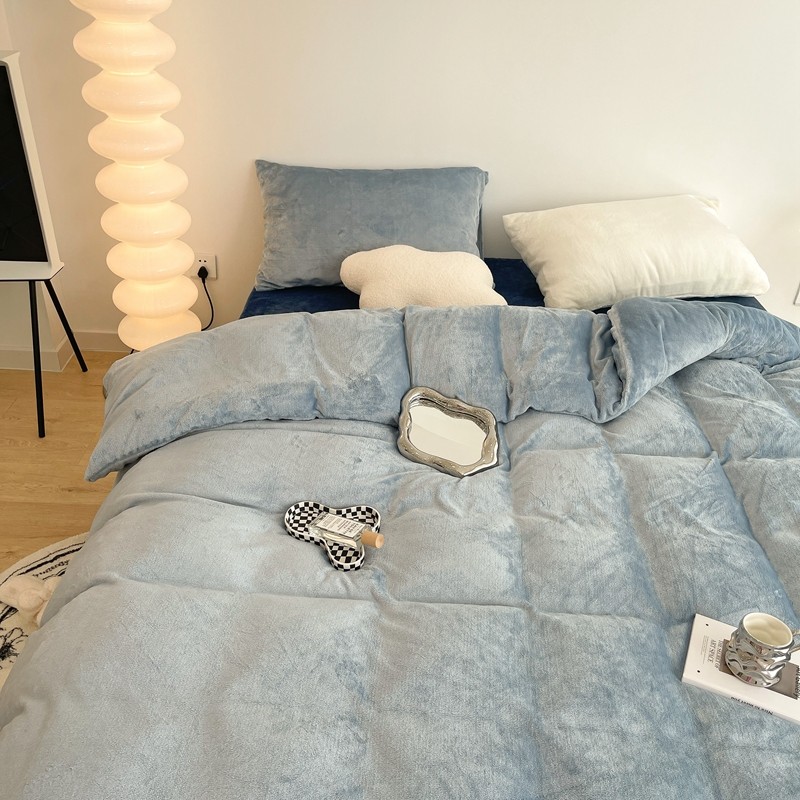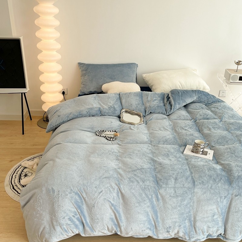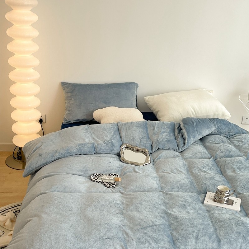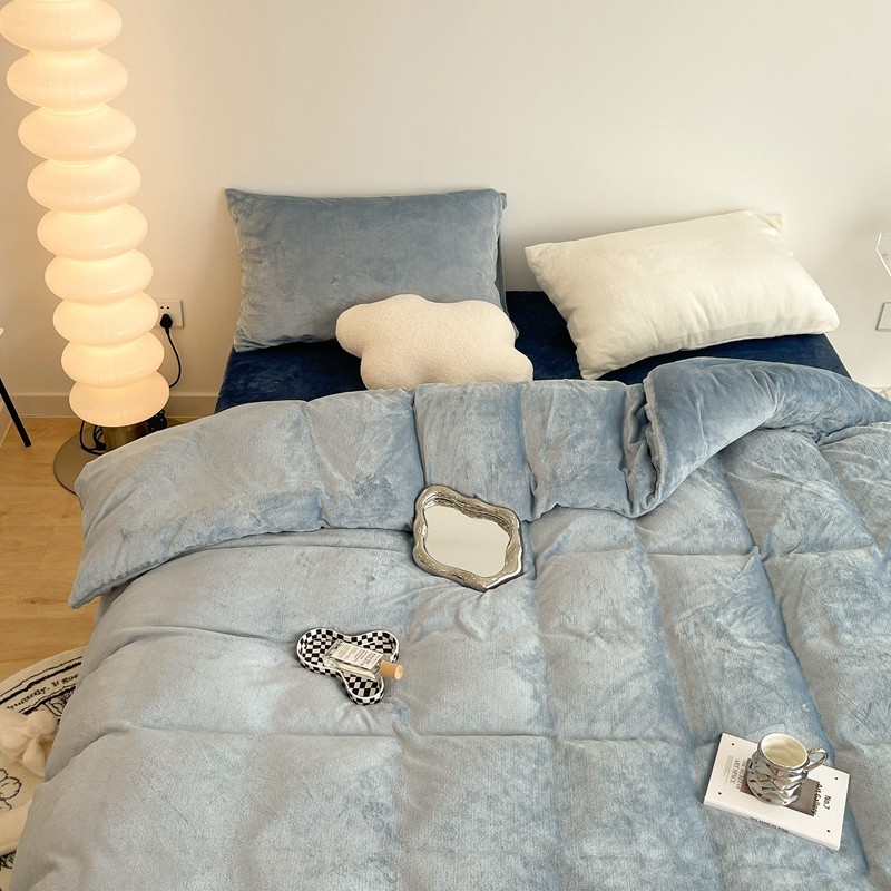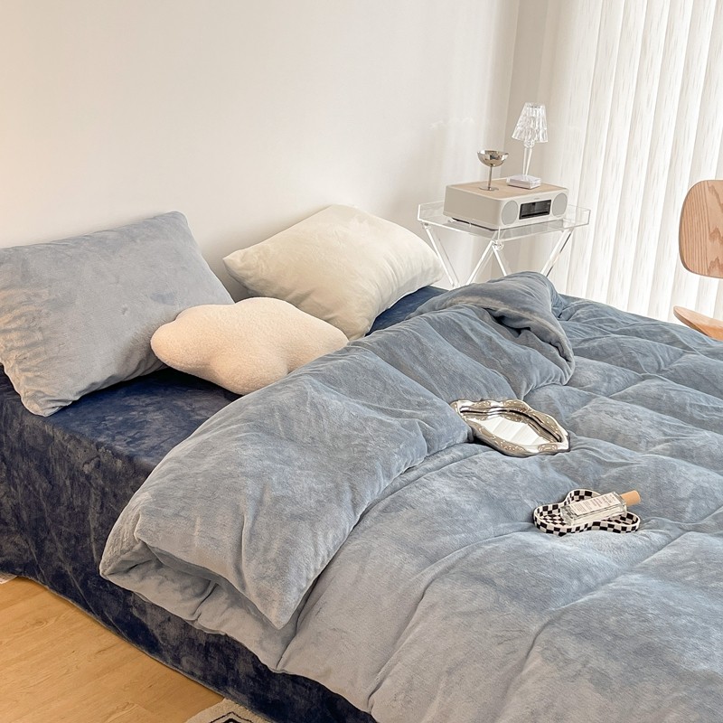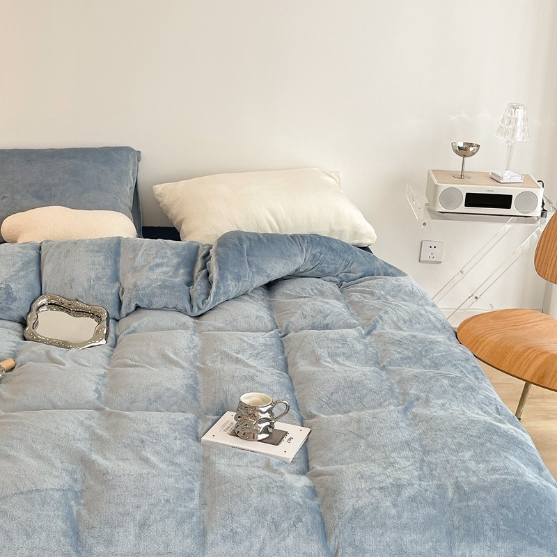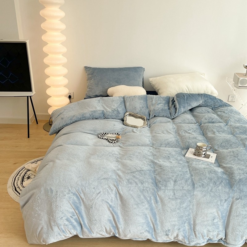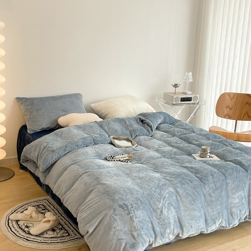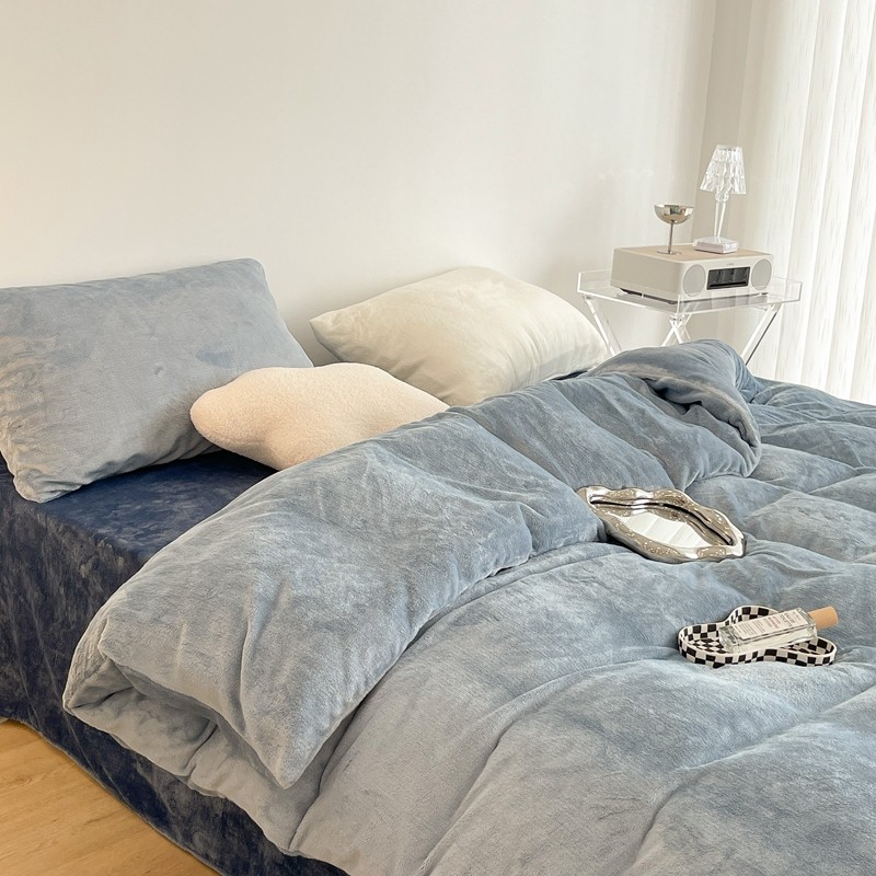 昔可家纺 2021新款撞色牛奶绒四件套 柔雾蓝
