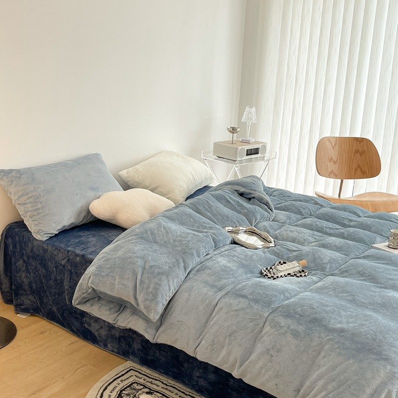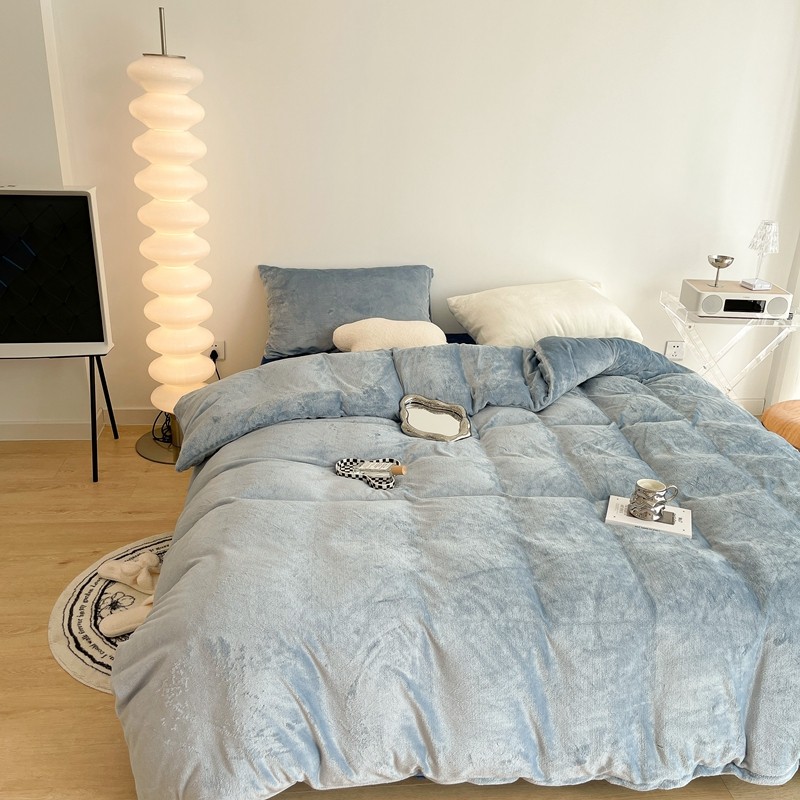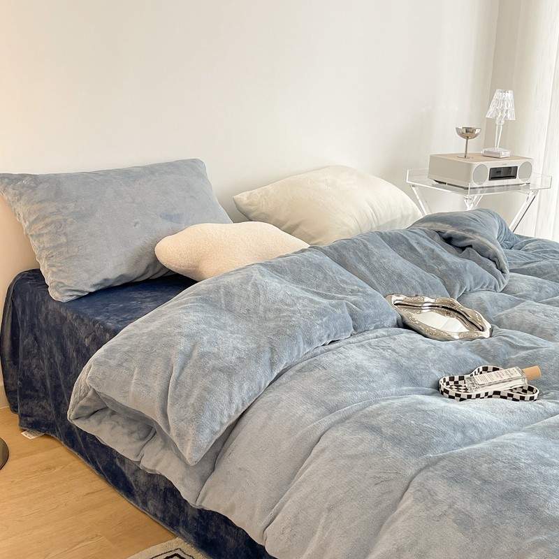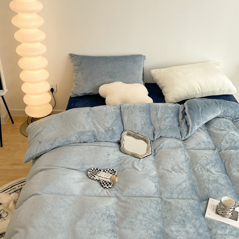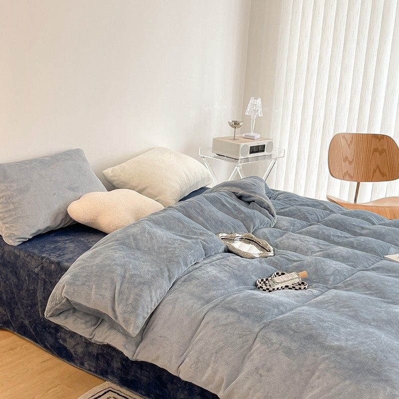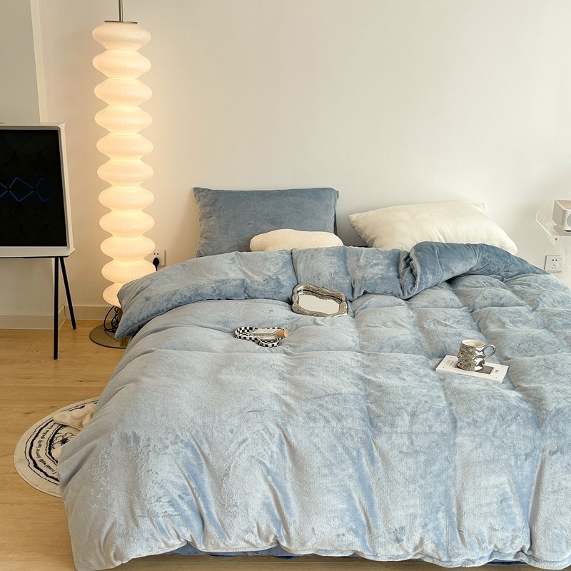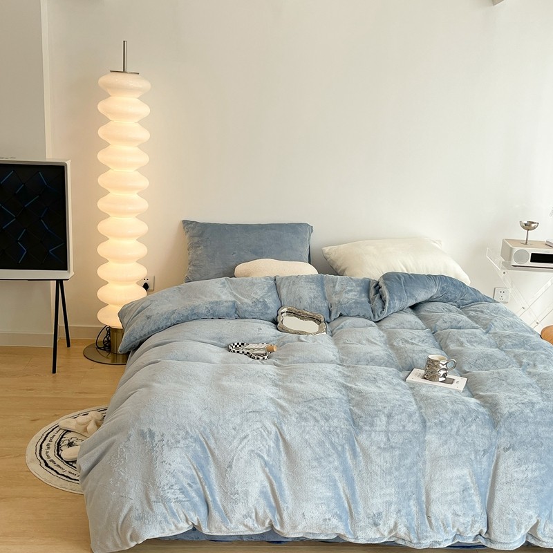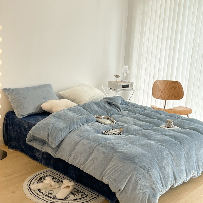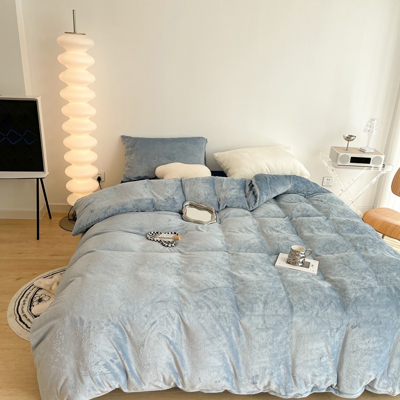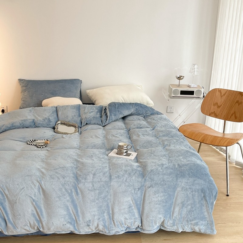 昔可家纺 2021新款撞色牛奶绒四件套 柔雾蓝