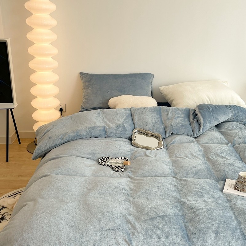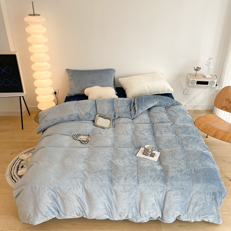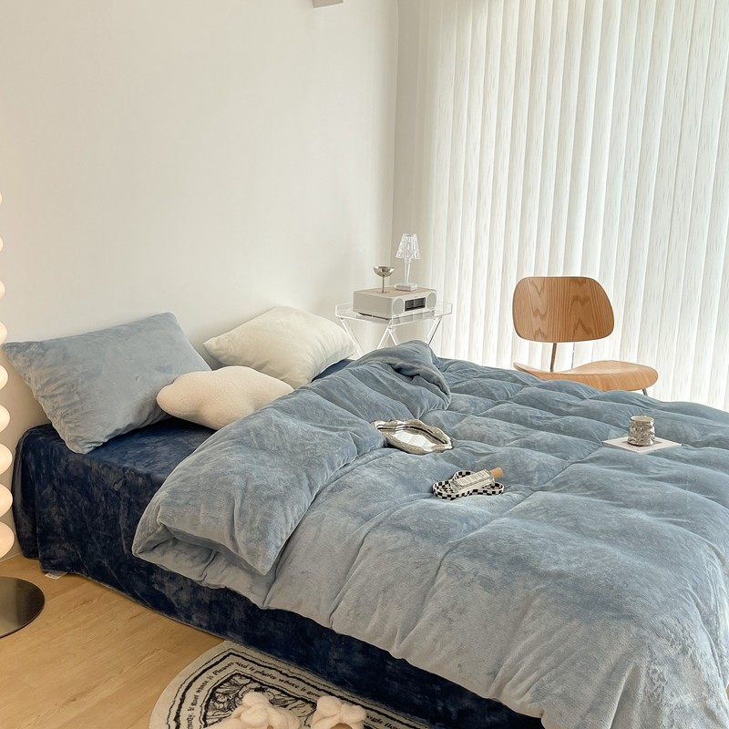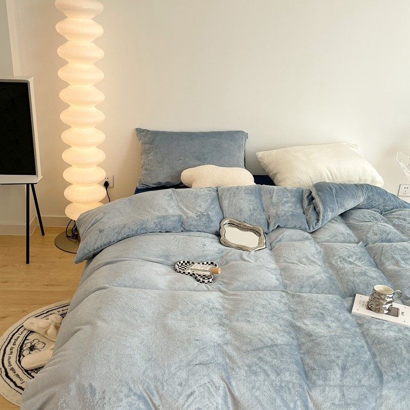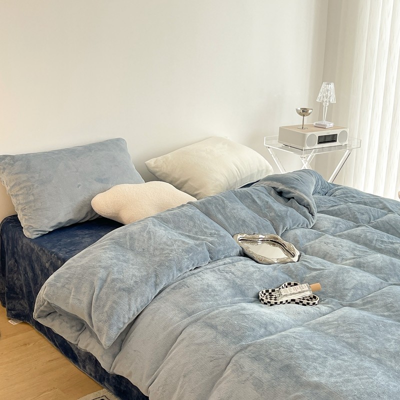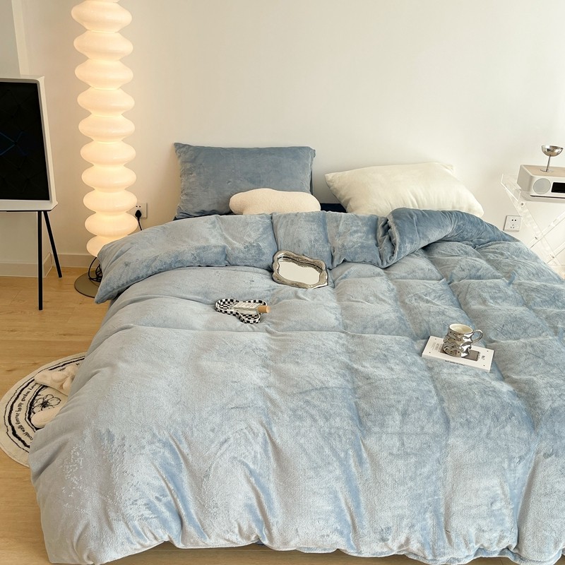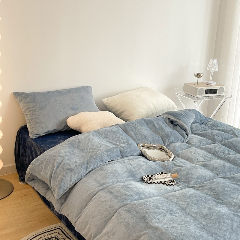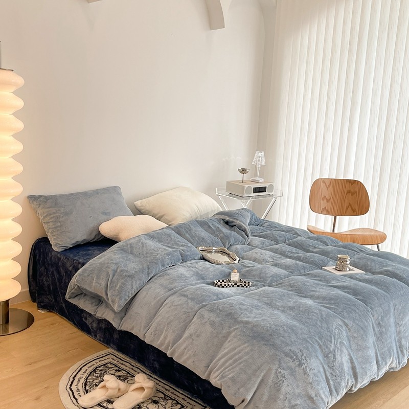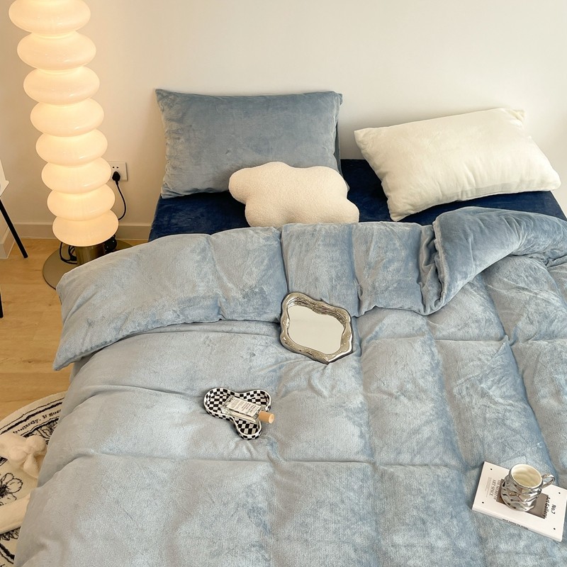 昔可家纺 2021新款撞色牛奶绒四件套 柔雾蓝