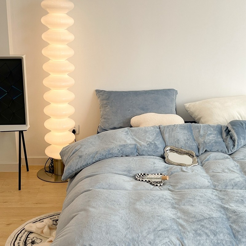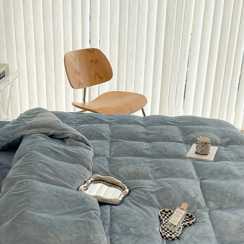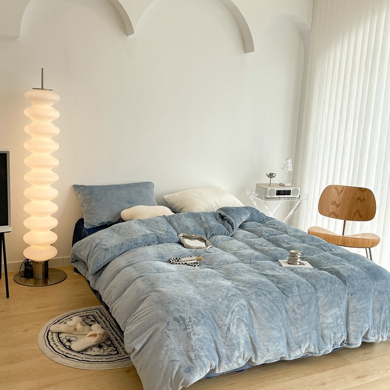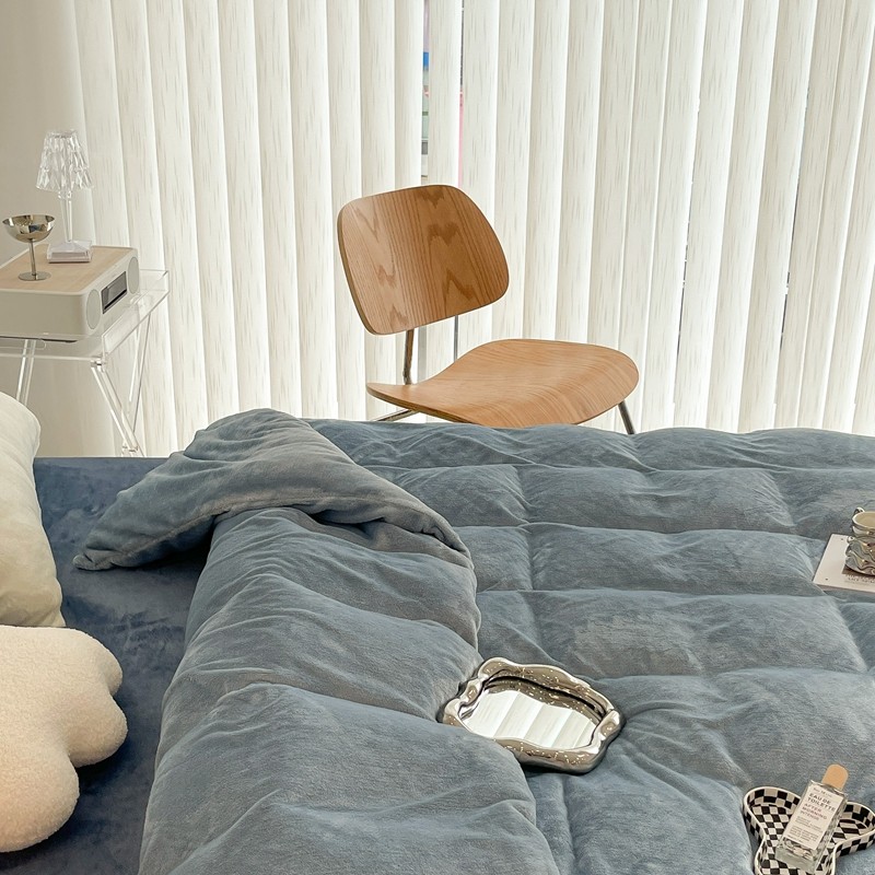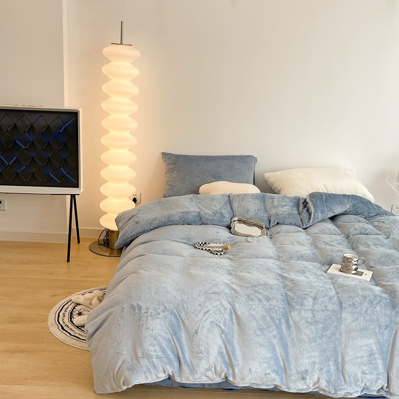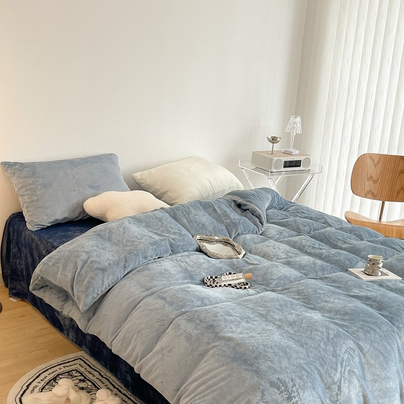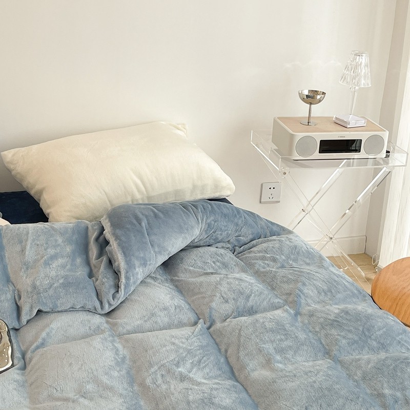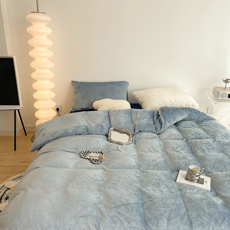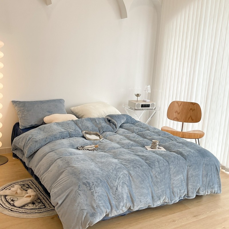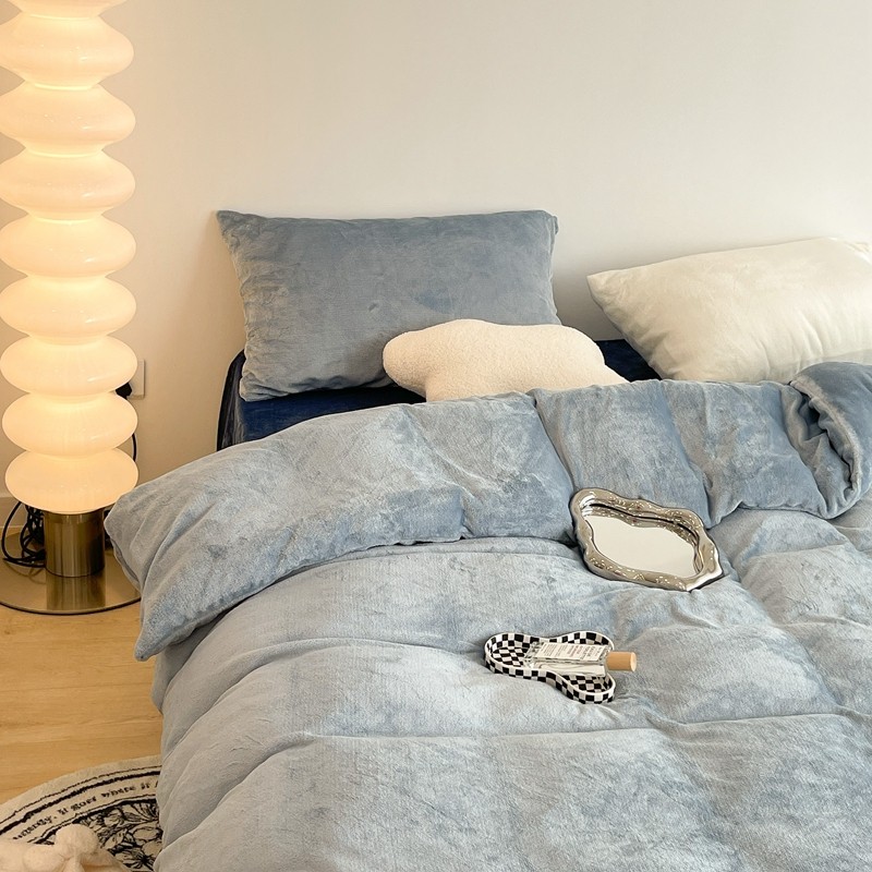 昔可家纺 2021新款撞色牛奶绒四件套 柔雾蓝