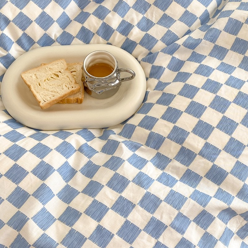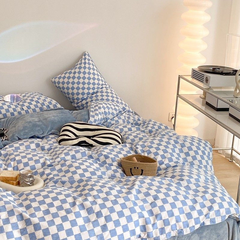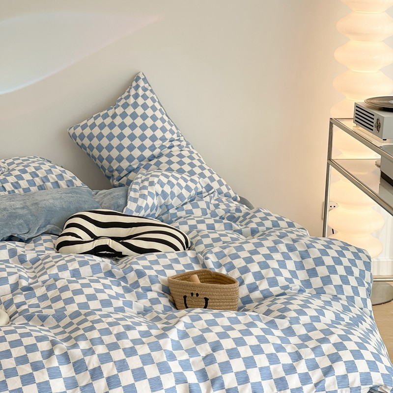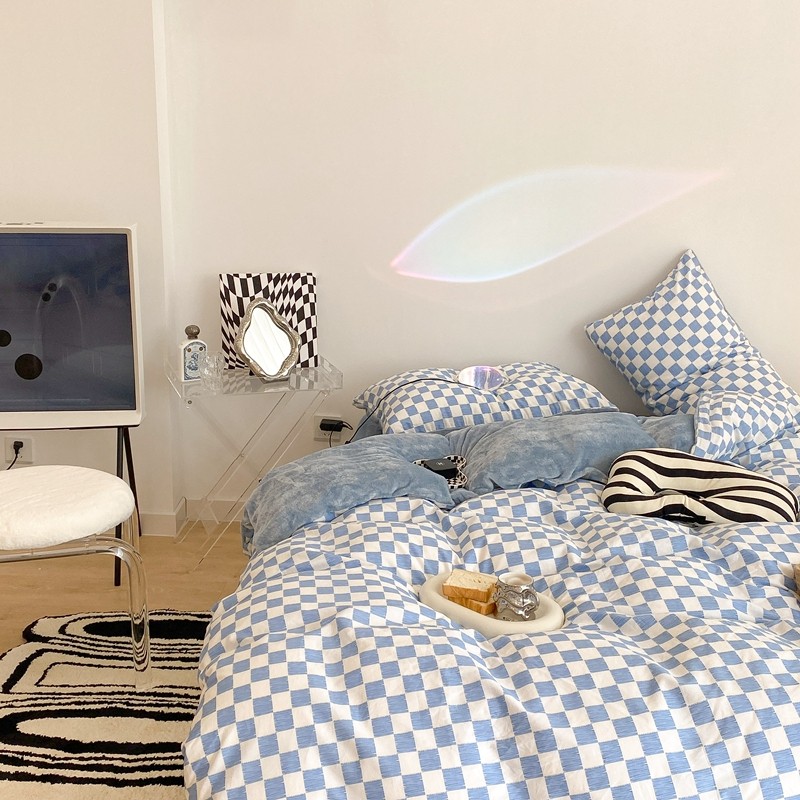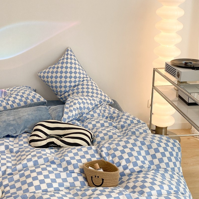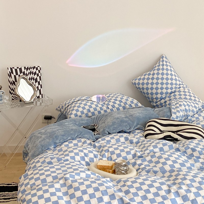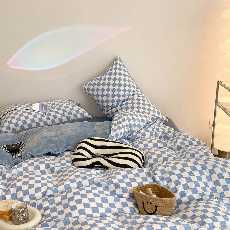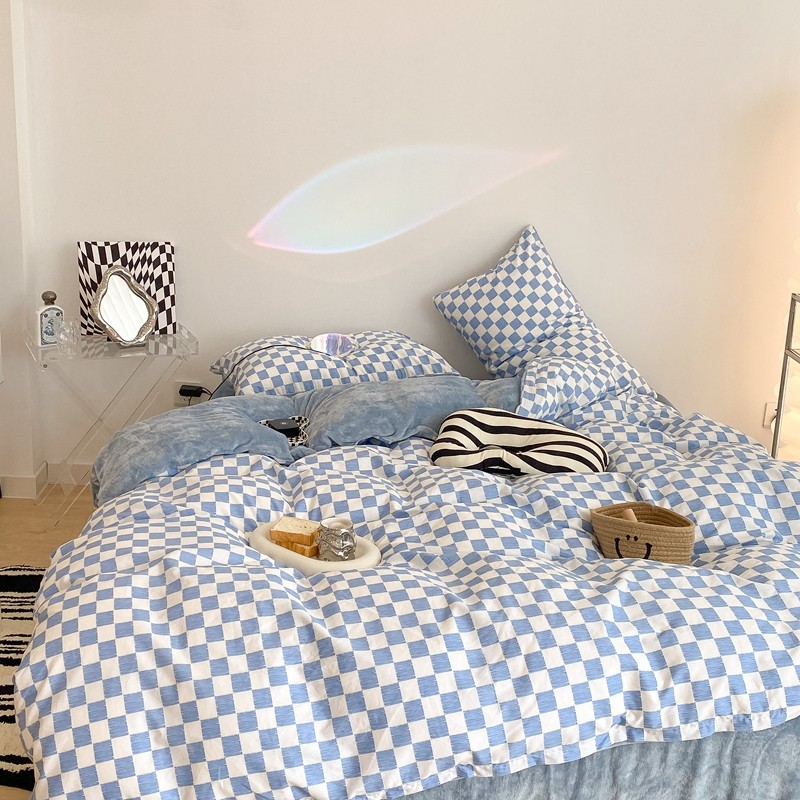 昔可家纺 2021新款棉加牛奶绒四件套 蓝色棋盘格