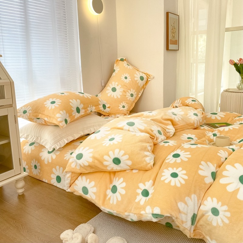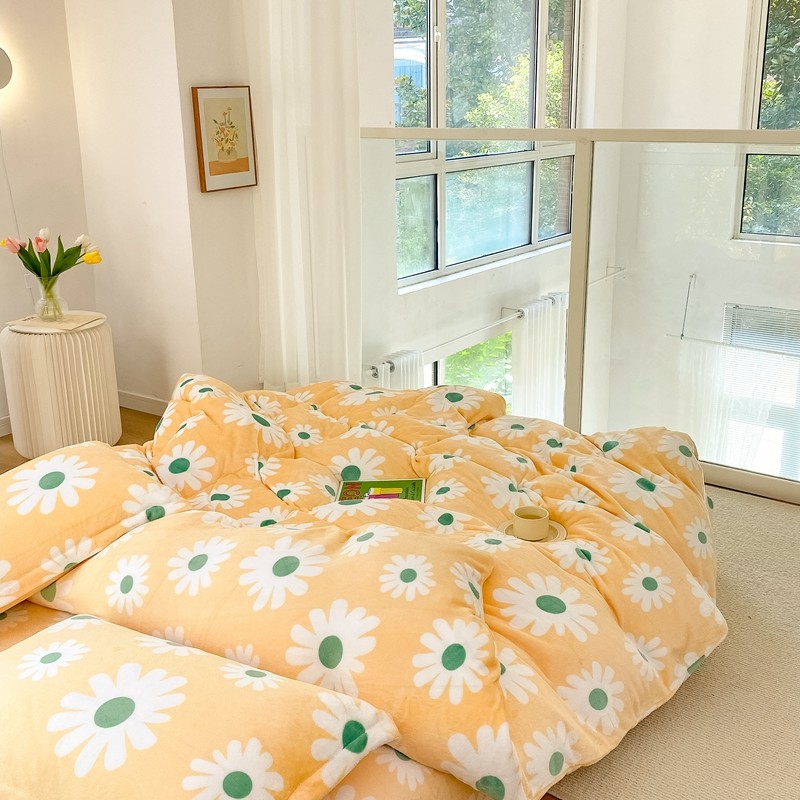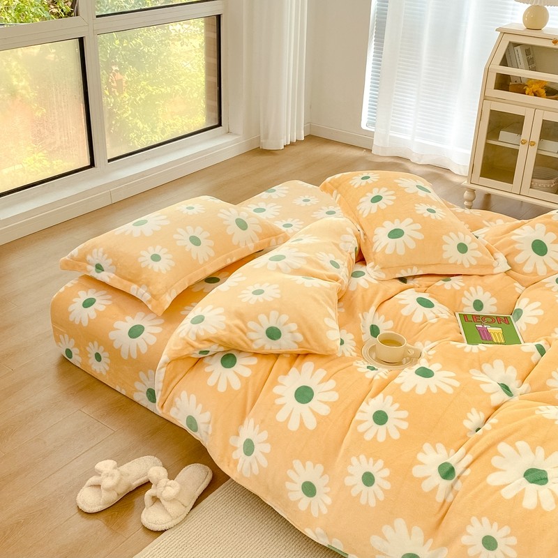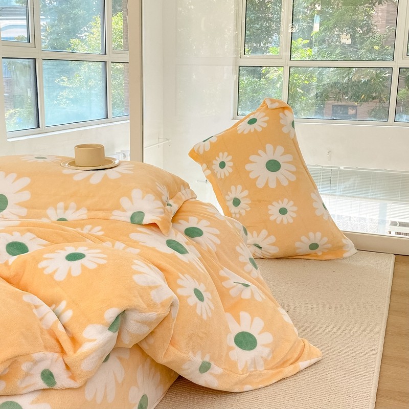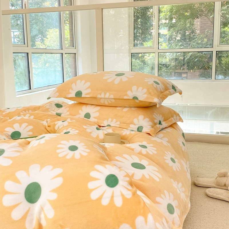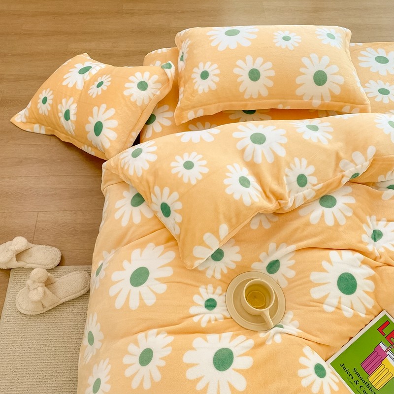 商品名称:昔可家纺 2021新款牛奶绒四件套第二组图 奶黄雏菊花