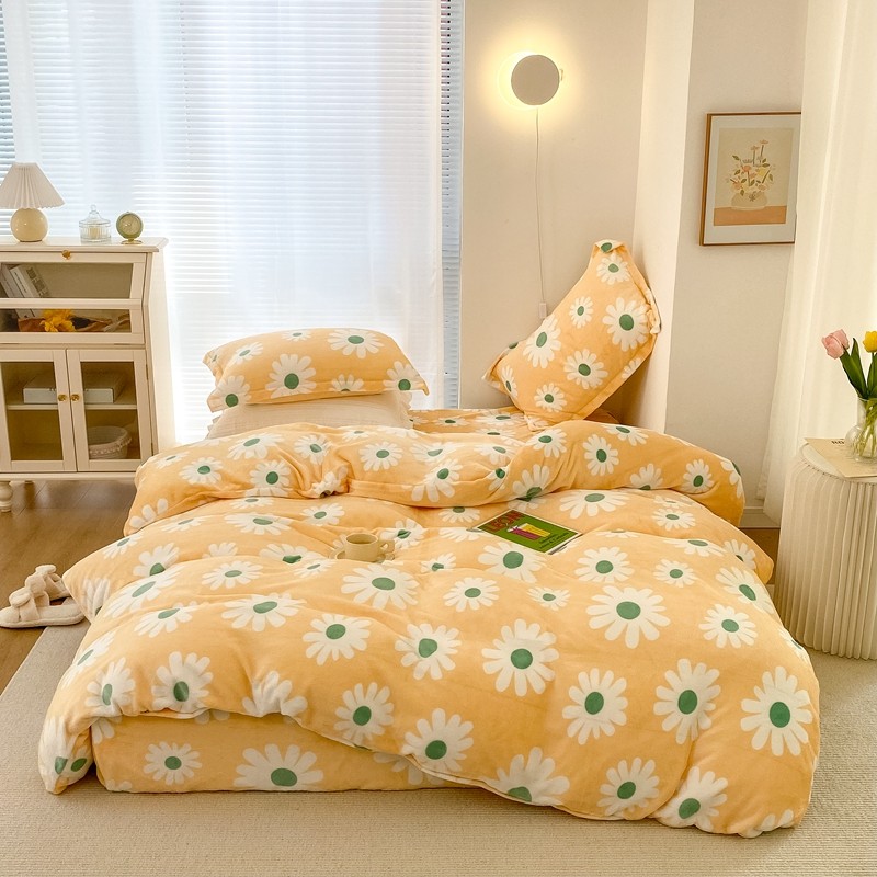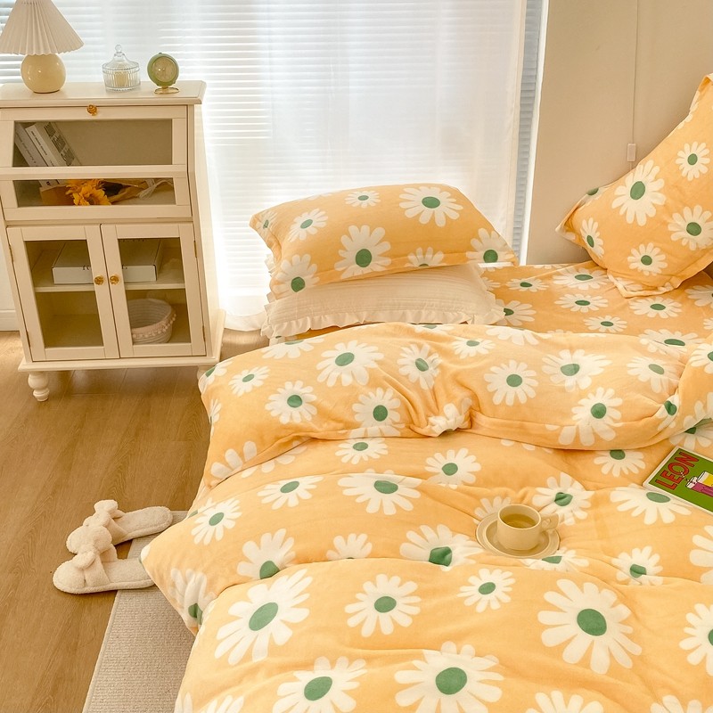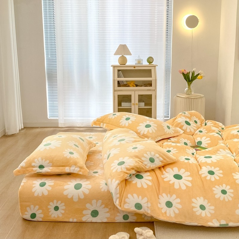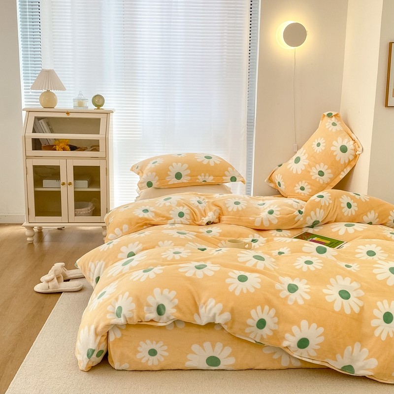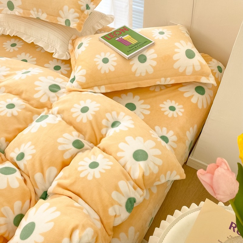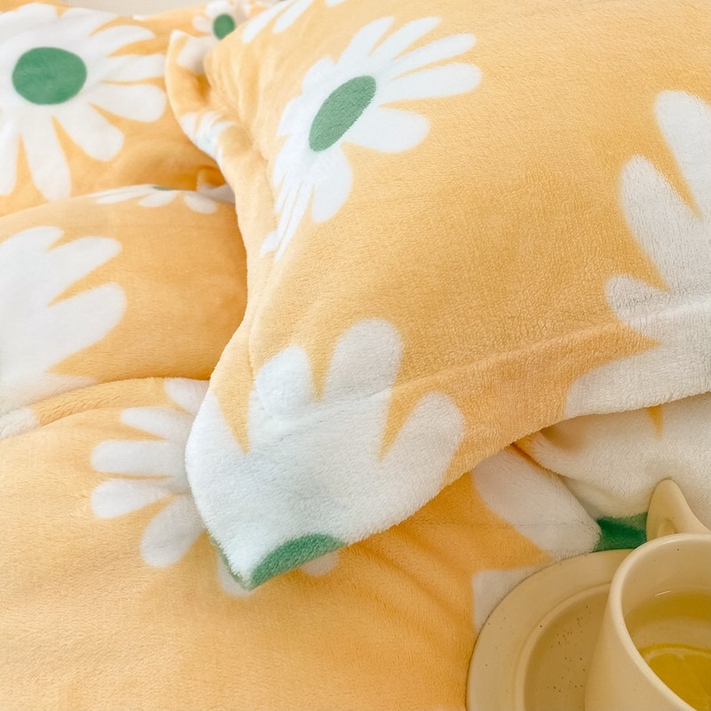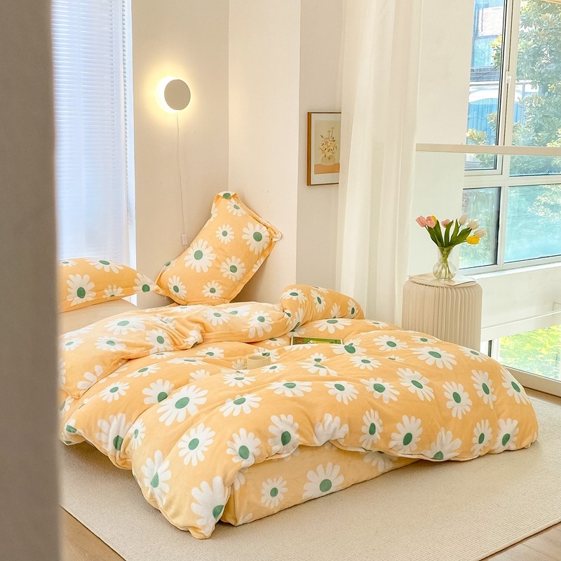 商品名称:昔可家纺 2021新款牛奶绒四件套第二组图 奶黄雏菊花