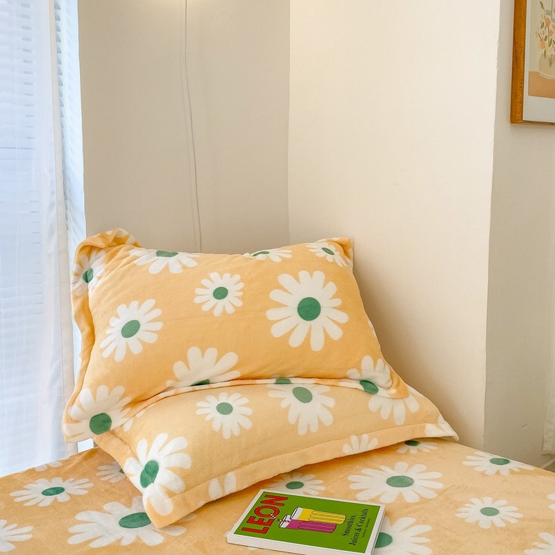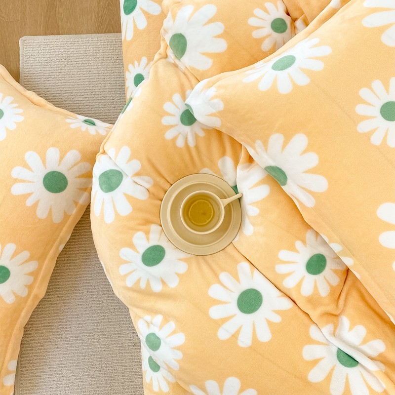昔可家纺 2021新款牛奶绒四件套第二组图 奶黄雏菊花