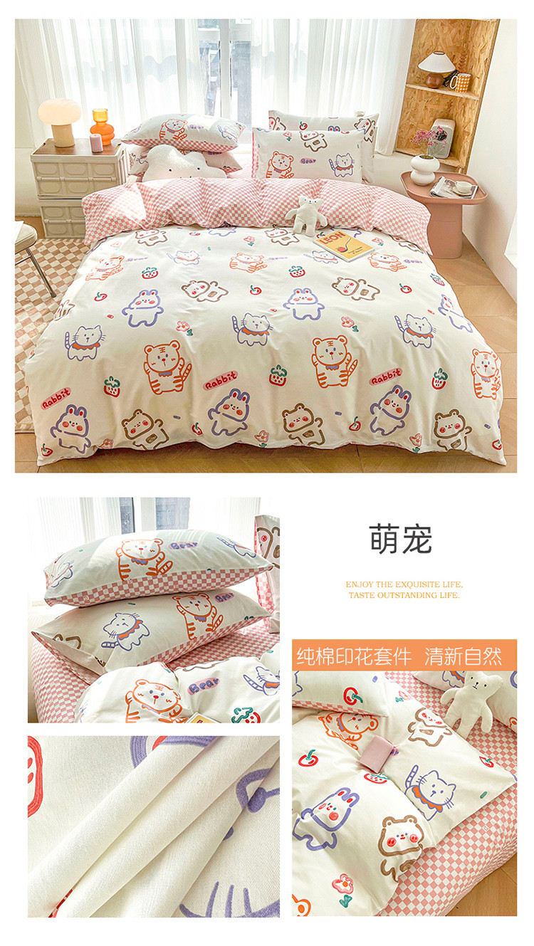 (总)感遇家纺 2025新款小清新甜系全棉四件套,百丽兔,波点小女孩,点点小狗,复古樱桃,格子草莓,格子樱桃,花间牧歌,灰条猫咪,奶绿,宁夏,森林小熊猫,甜心波点