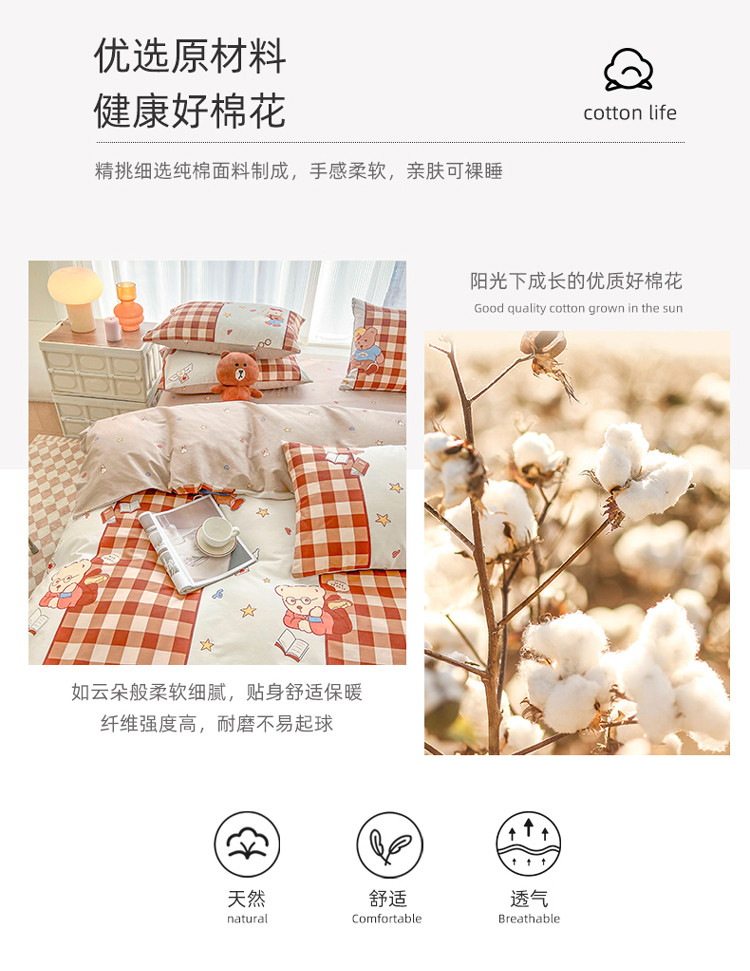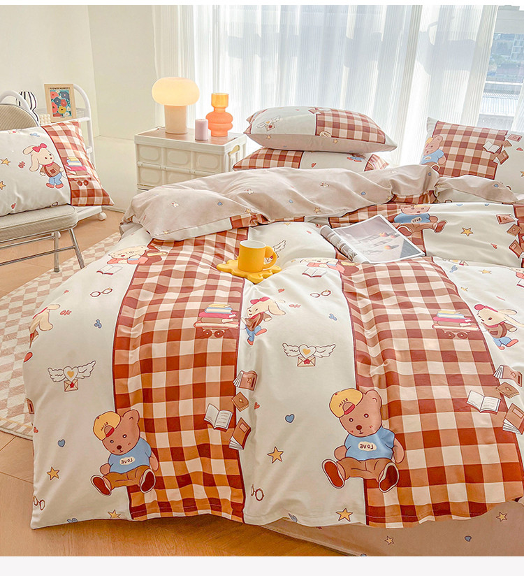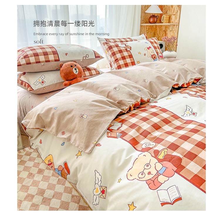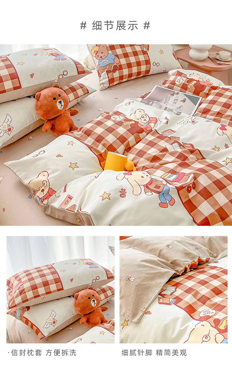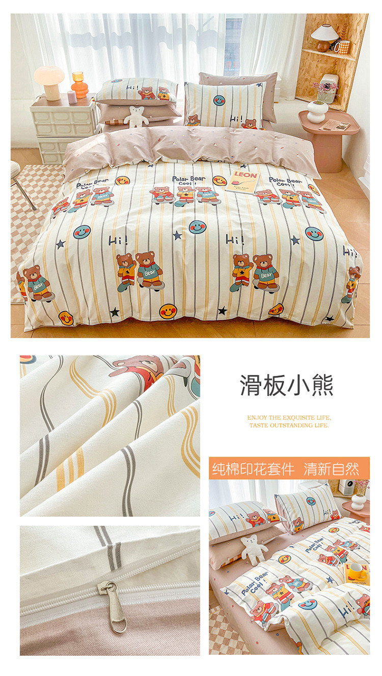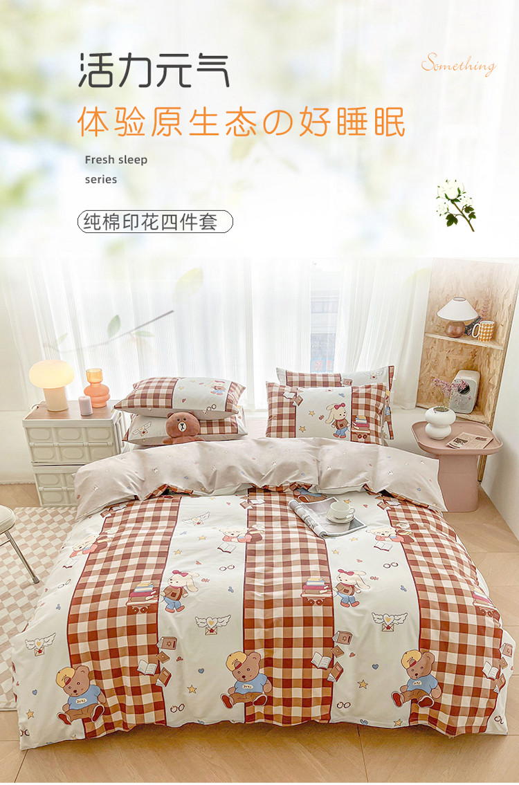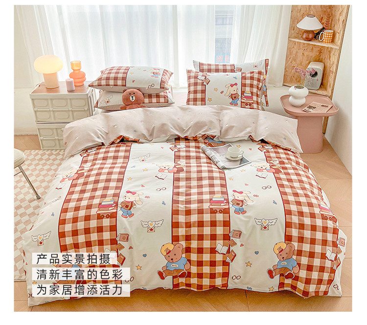 (总)感遇家纺 2022新款全棉印花四件套,格子草莓,花晓,滑板小熊,萌宠,时光,兔宝宝,熊先生