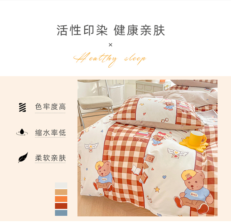 (总)感遇家纺 2021新款春夏新品全棉四件套纯棉三件套,AB熊,小情调-灰,小情调-桔,小情调-蓝,英伦熊-灰,律动,迷你熊