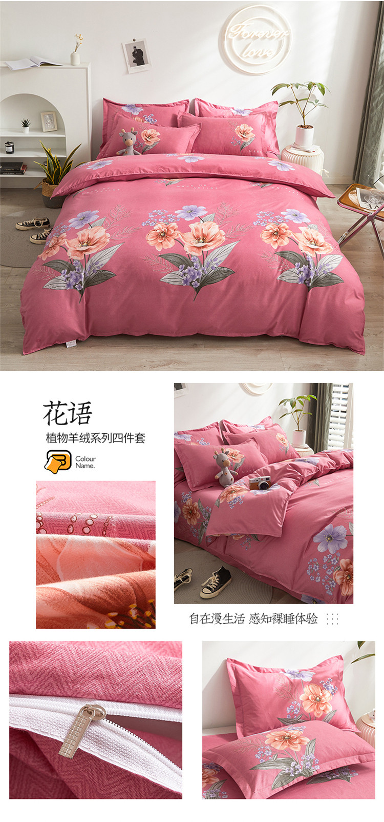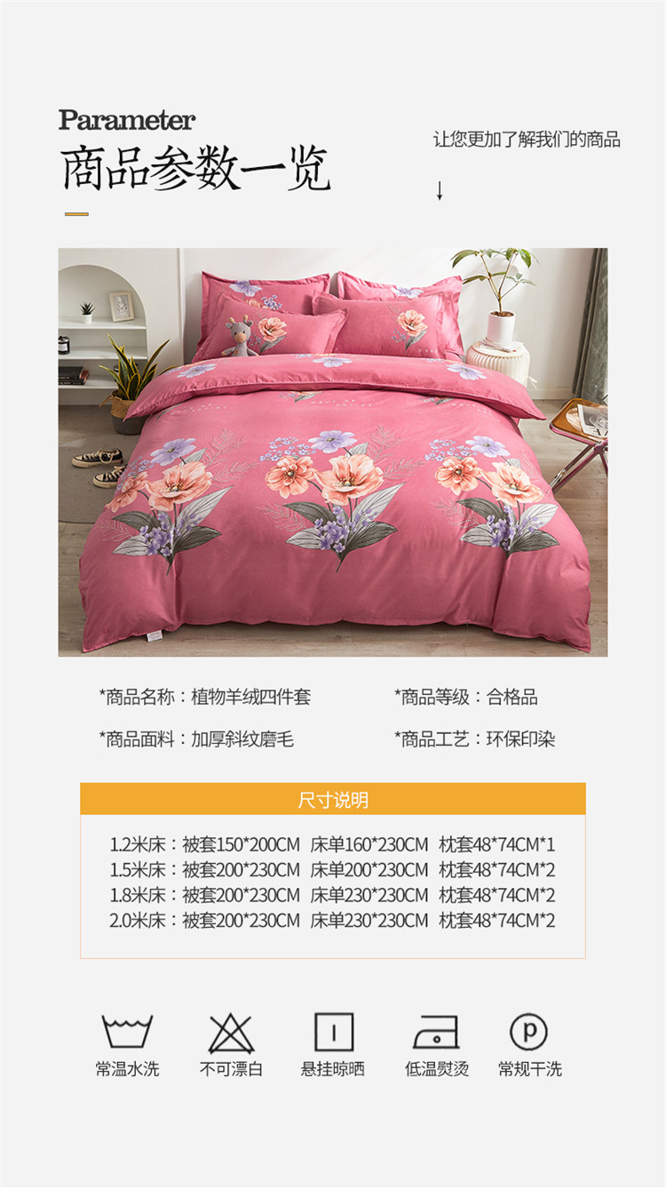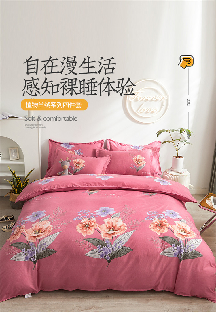 当前位置: 91家纺网 > 商品网购 > 床品套件 > 四件套 > 化纤普通四件套 > 优家居 2023新款植物羊绒四件套 花语