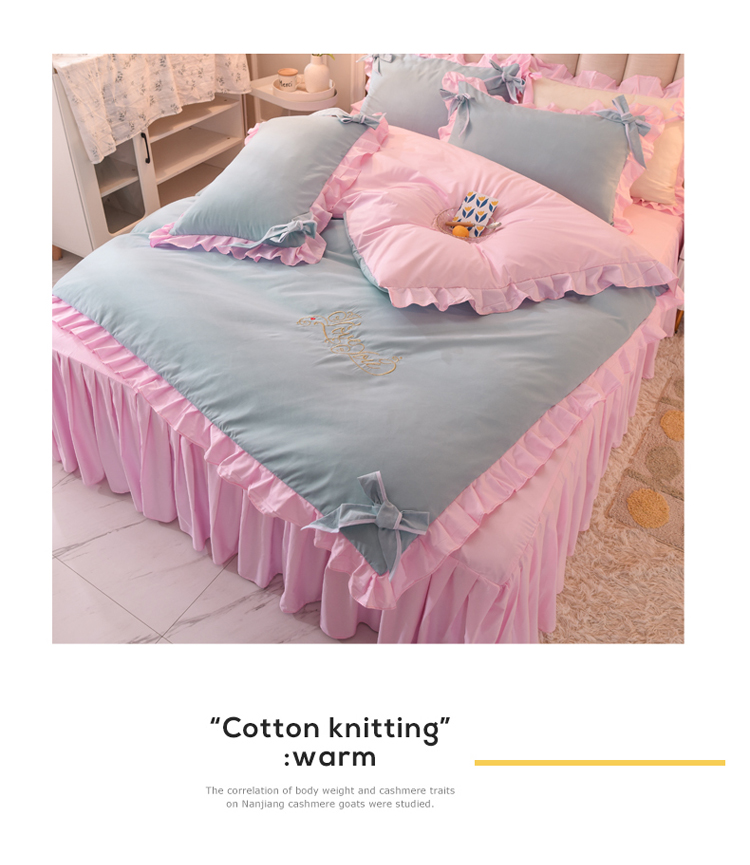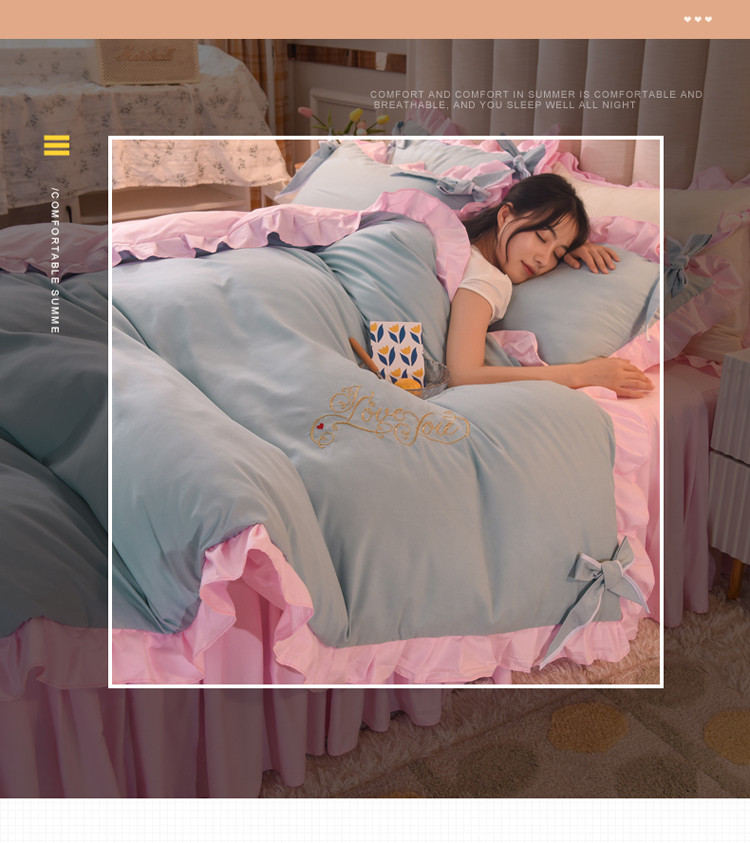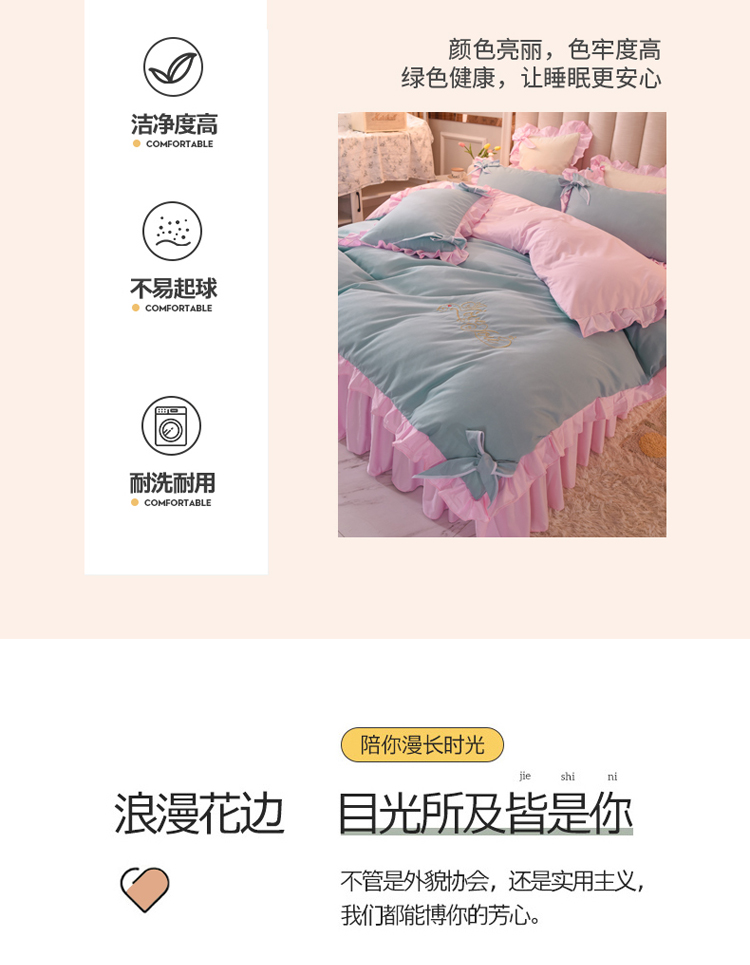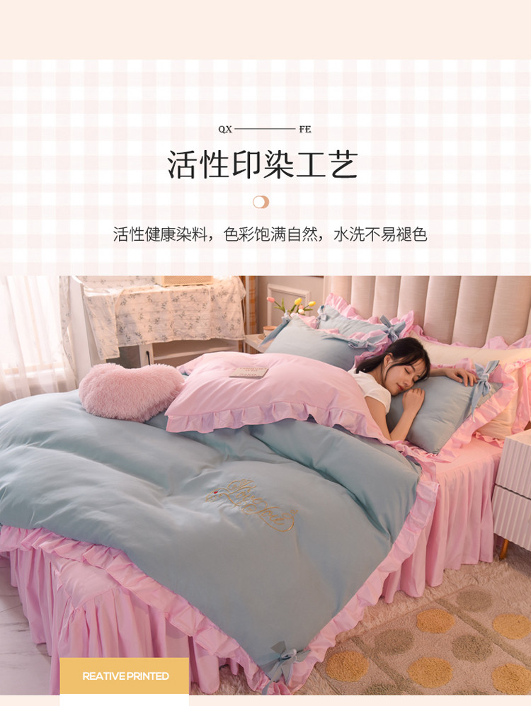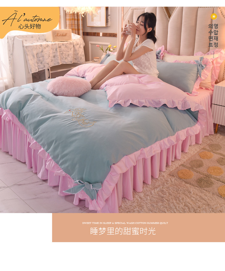 当前位置: 91家纺网 > 商品网购 > 床品套件 > 四件套 > 水洗棉四件套 > 欧冠 2022新款潮系列爱巢款床裙款刺绣四件套 兰粉