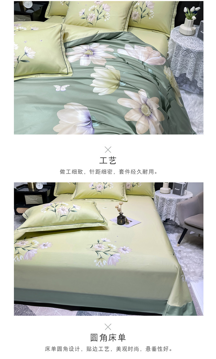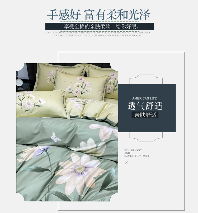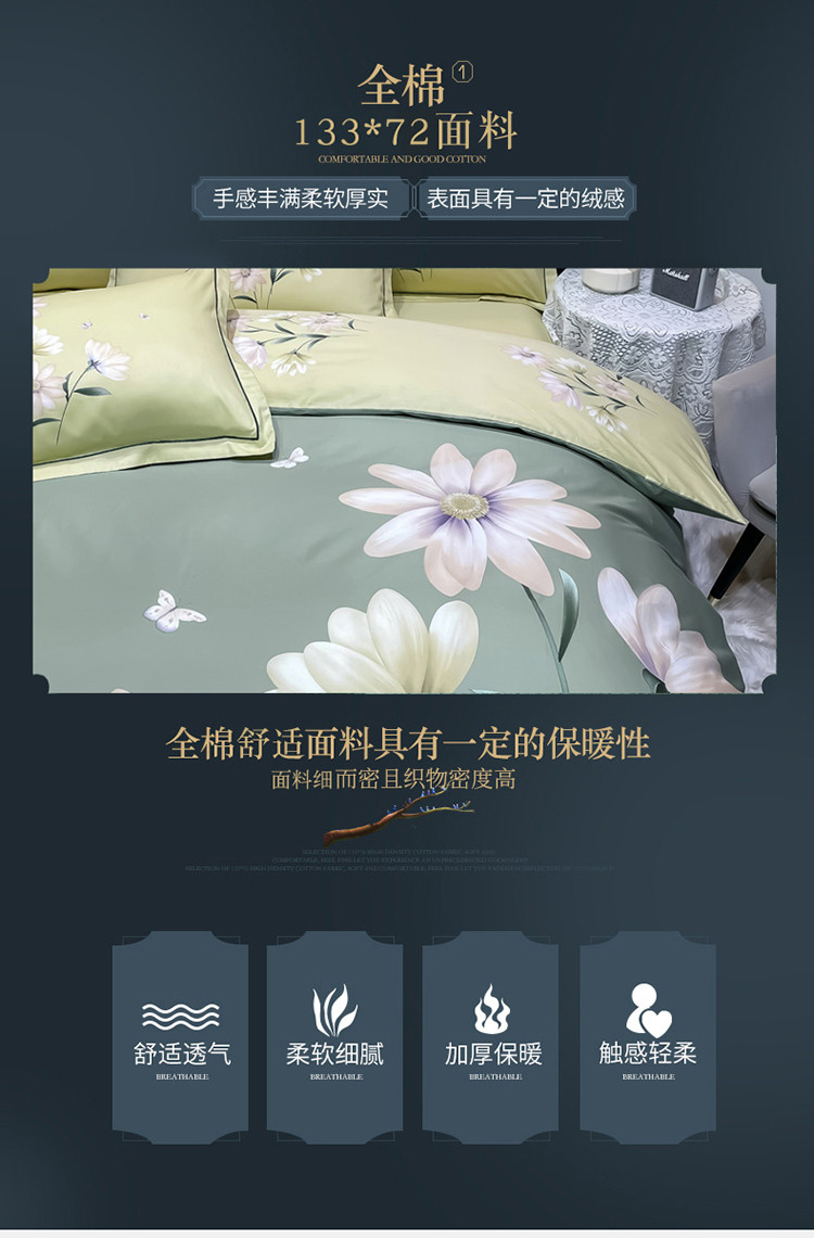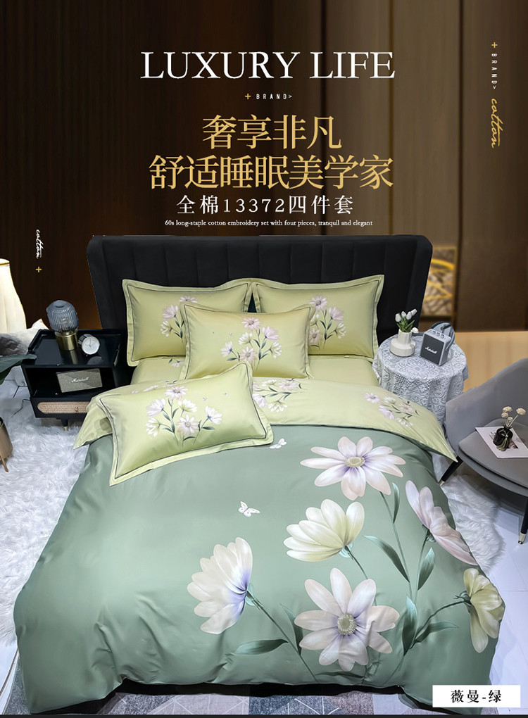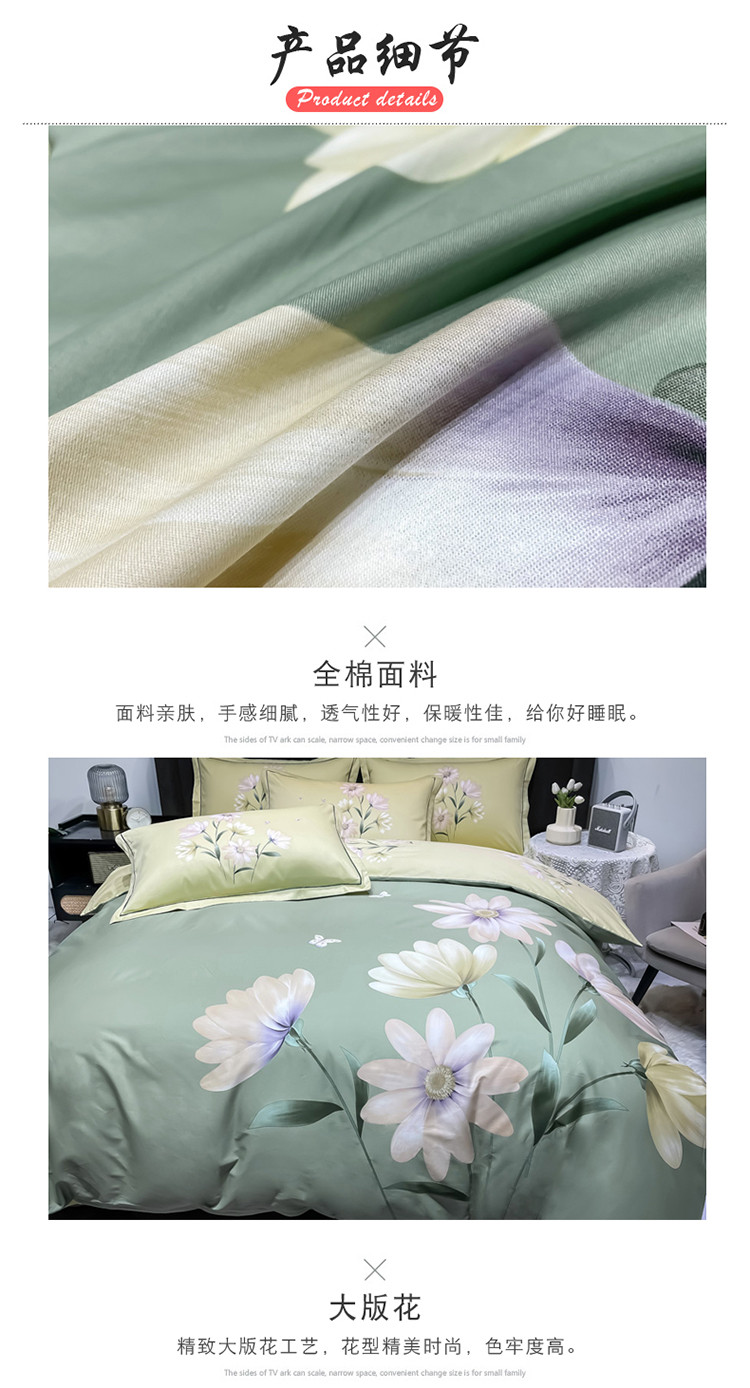 金爱家 2023新款大版13372全棉花卉系列四件套薇曼-绿