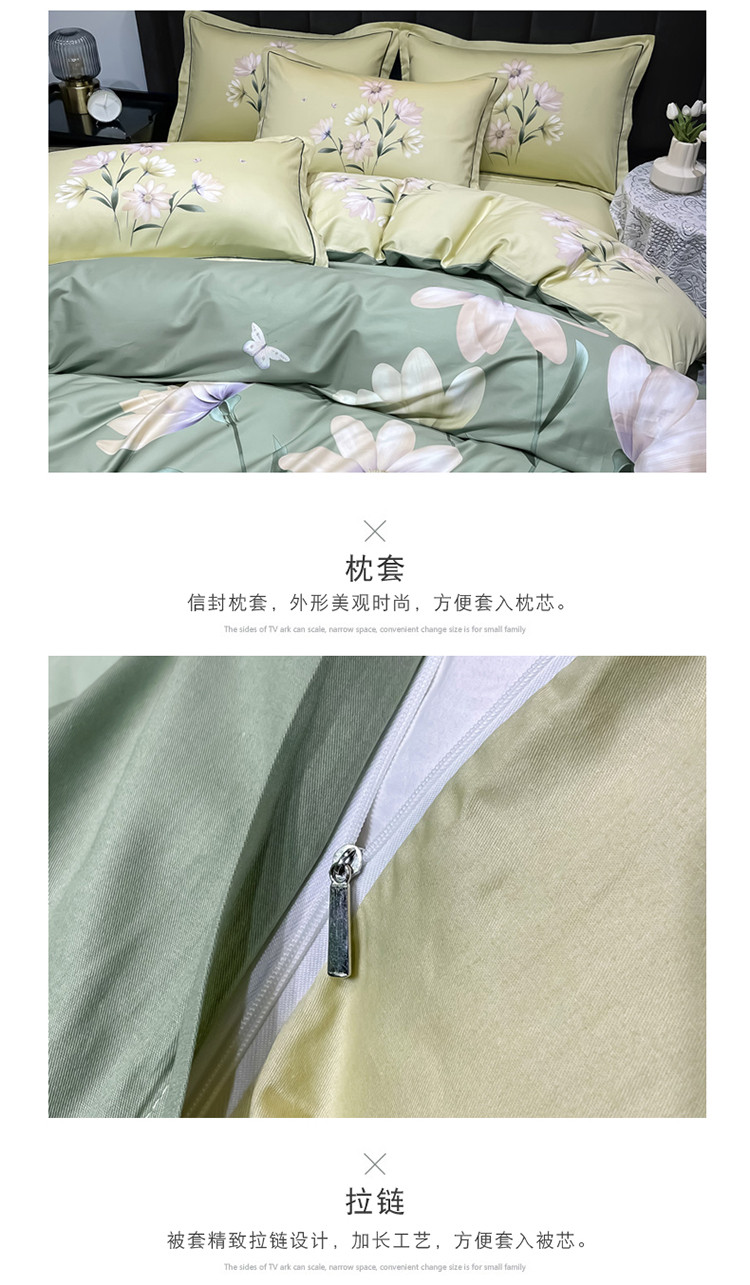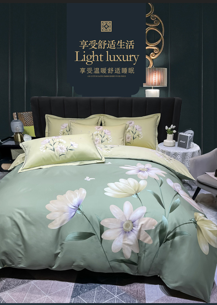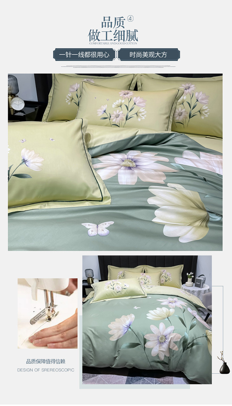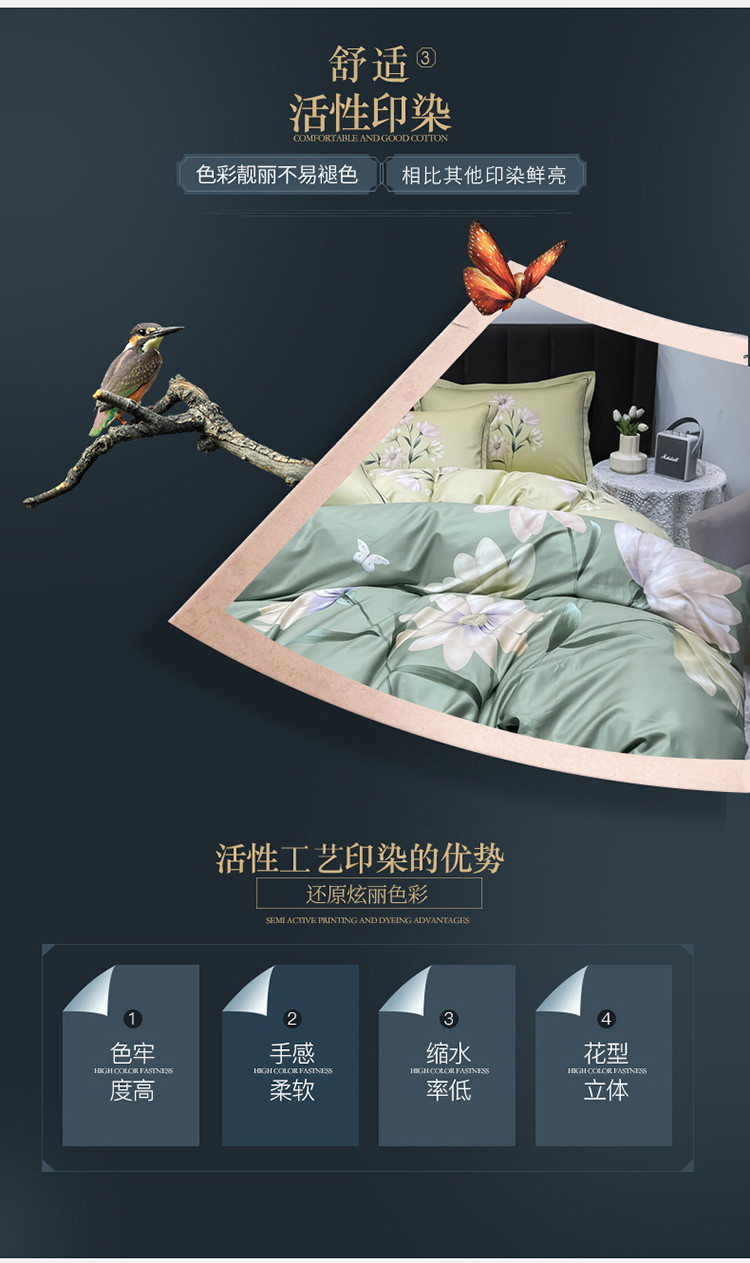 金爱家 2023新款大版13372全棉花卉系列四件套薇曼-绿