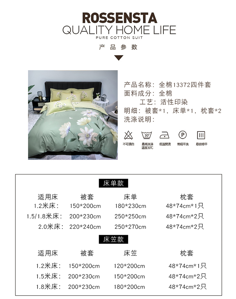 商品名称:金爱家 2023新款大版13372全棉花卉系列四件套薇曼-绿