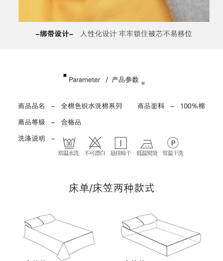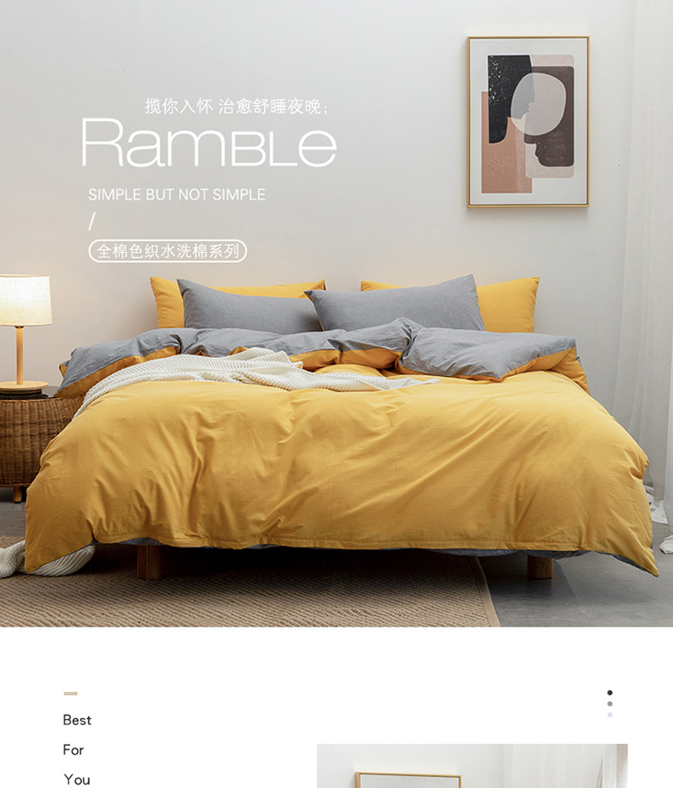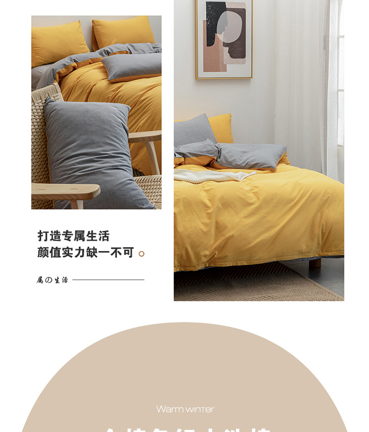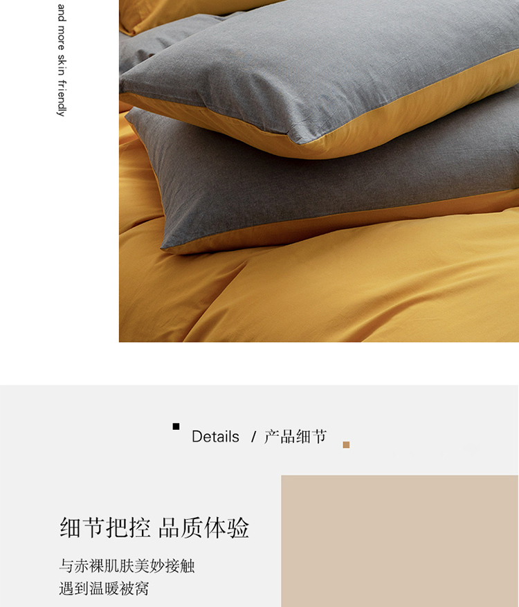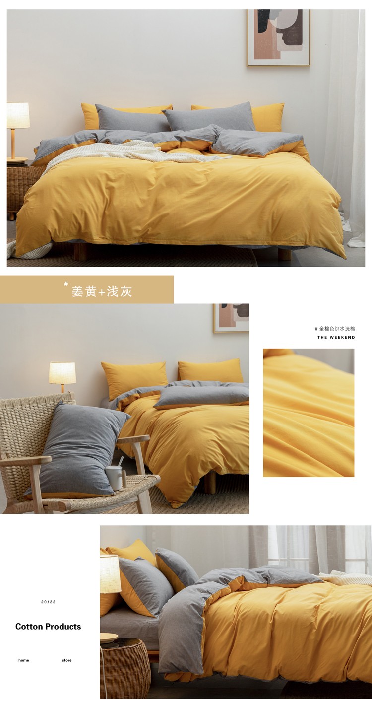 当前位置: 91家纺网 > 商品网购 > 床品套件 > 四件套 > 全棉活性四件套 > 棉邦 2022新款全棉色织水洗棉四件套 姜黄+浅灰