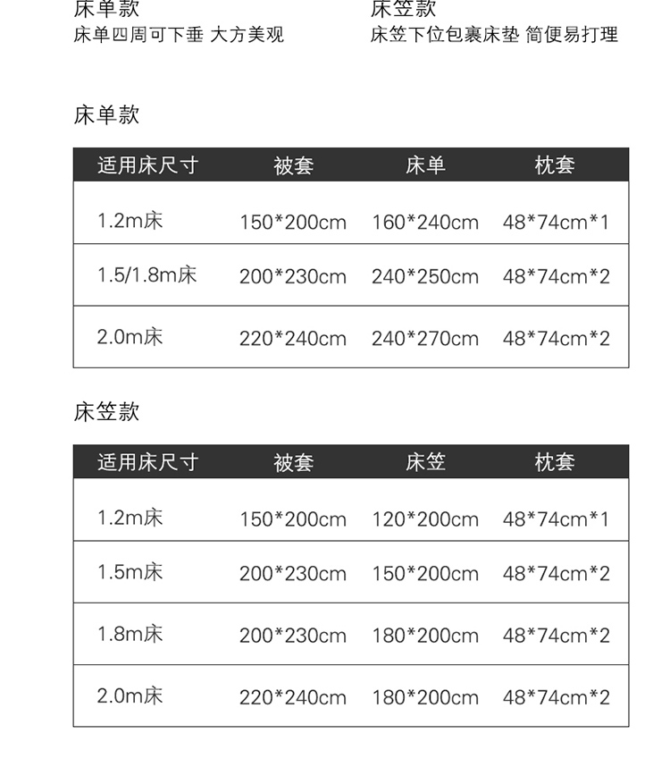 1.8m加大床笠款四件套(被套220x240cm) | ¥145.00 |