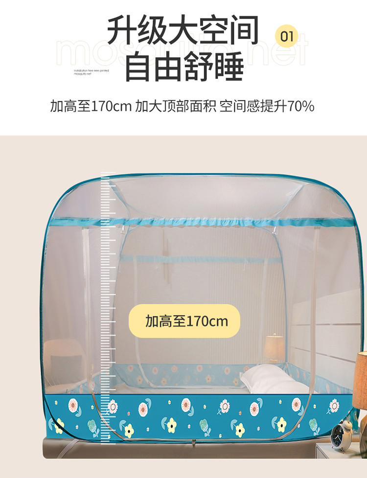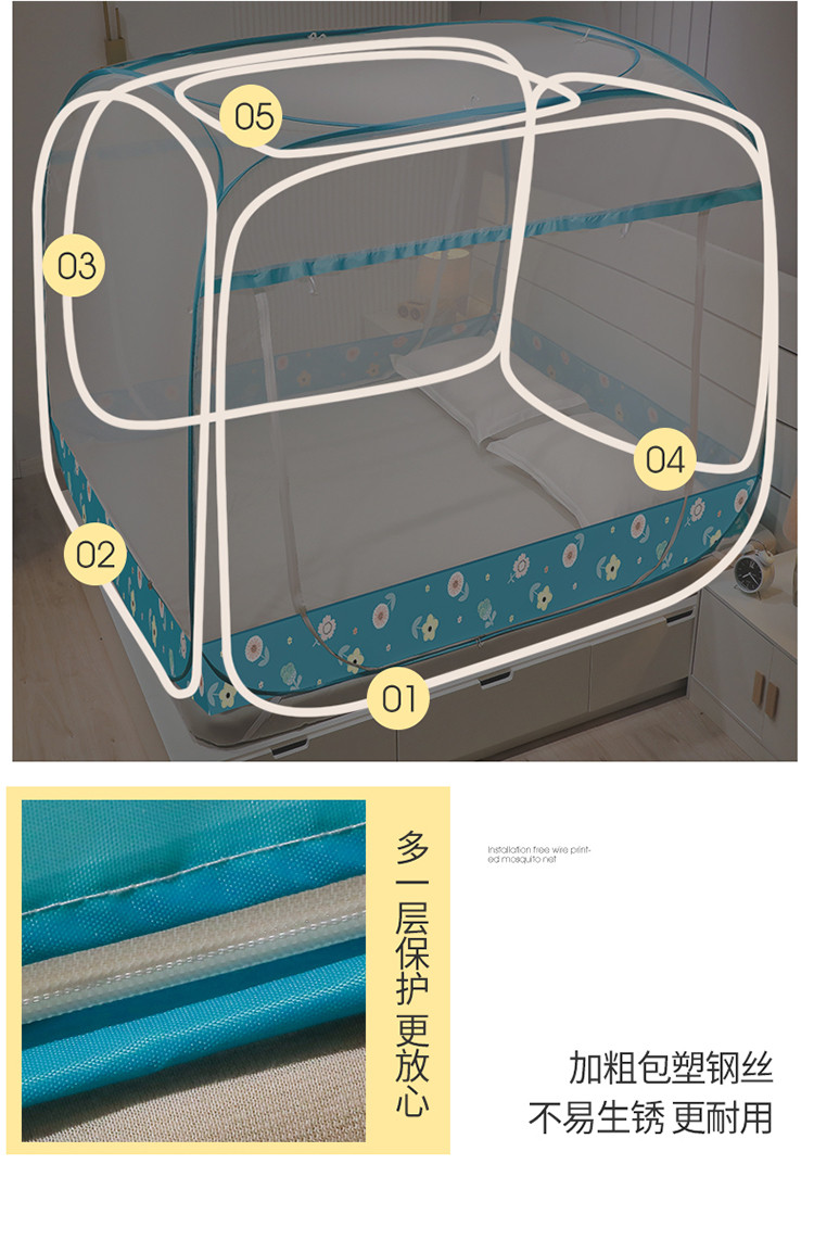 商品名称:博诺蚊帐 2022新款免安装钢丝印花蚊帐 花笑颜