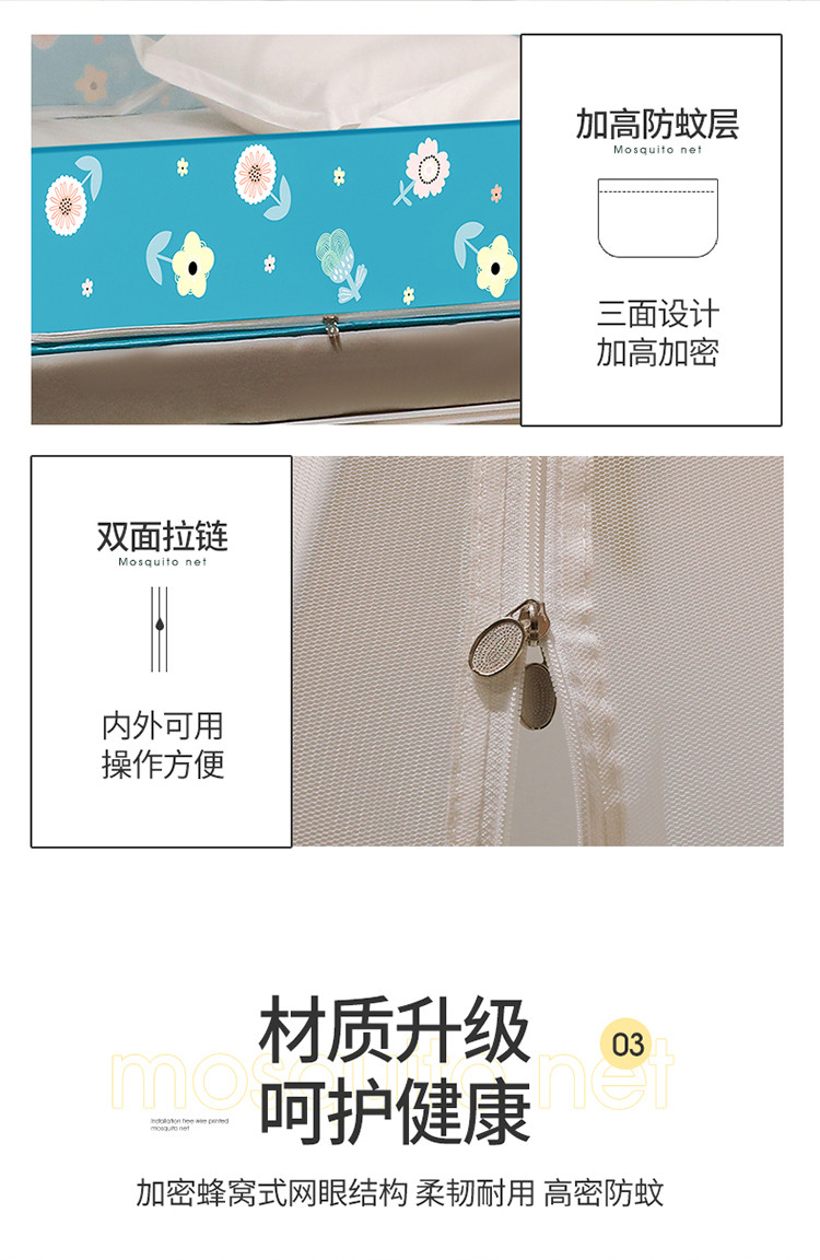 (总)博诺蚊帐 2025新款坐床全底蚊帐,田园绿,星空灰,樱花粉
