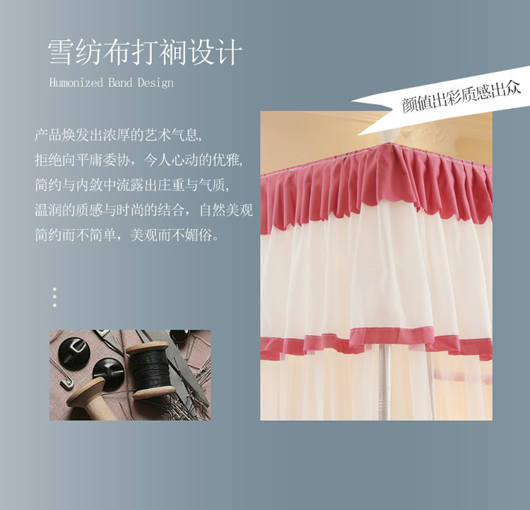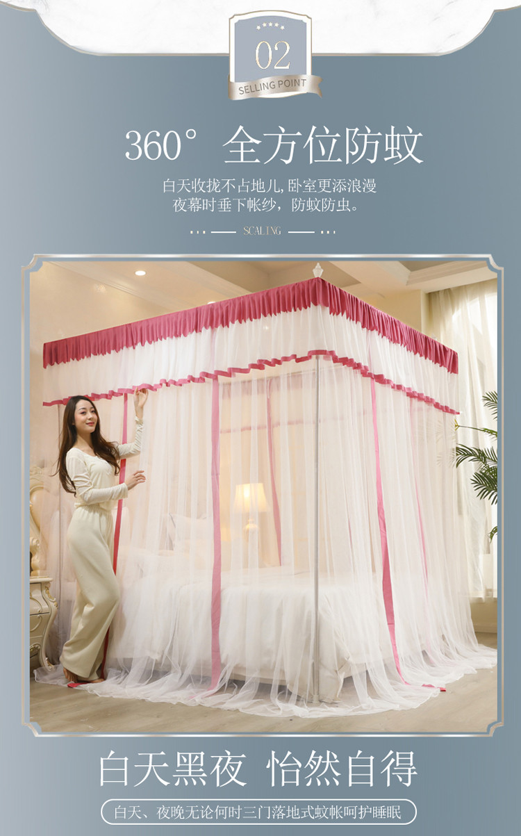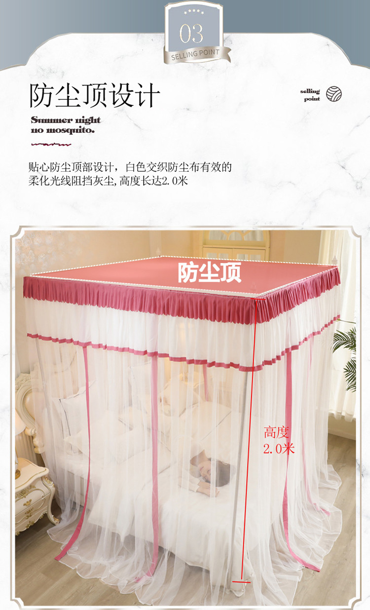 当前位置: 91家纺网 > 商品网购 > 床上用品 > 蚊帐 > 免安装蚊帐 > 迷仙巢2022新款三开门落地式防尘顶蚊帐A20清欢清欢-豆沙