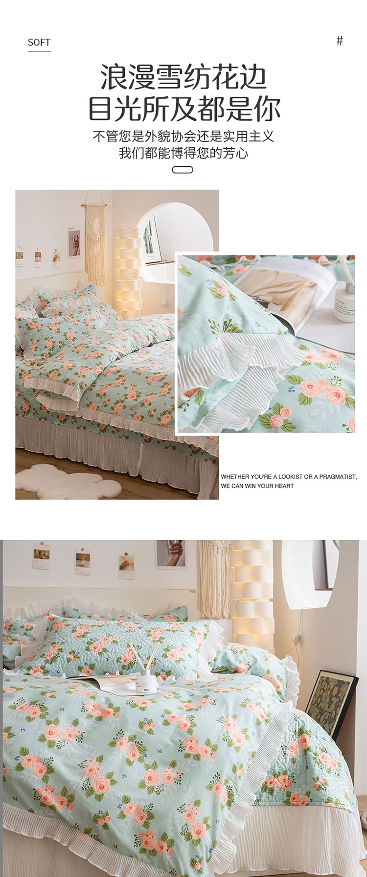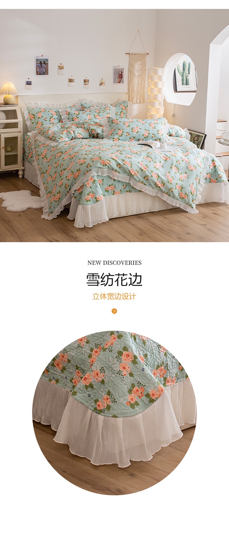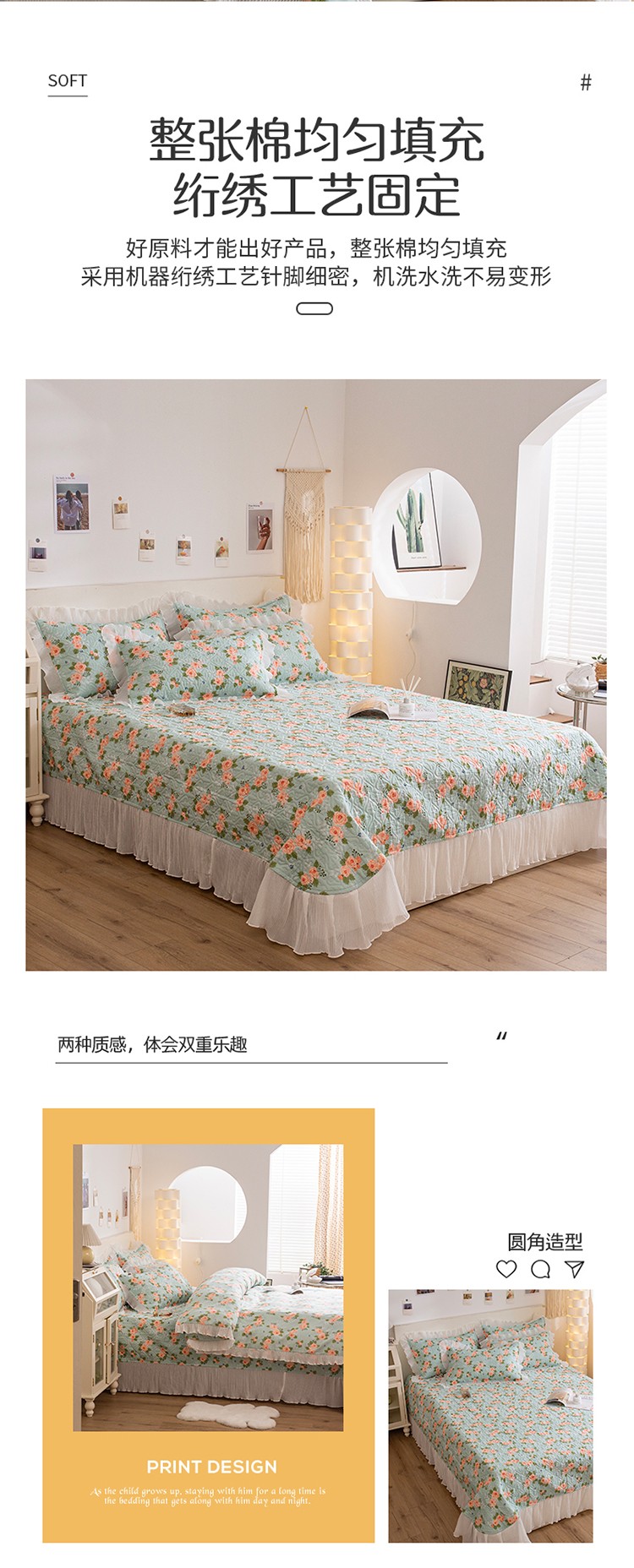 (总)添越 2024花边纯棉夹棉床盖三件套全棉,玫瑰花园粉,安娜花园,初恋,波点白,华美夺艳,黄波点,心动,梦境,多彩爱心,心心相印,太阳花米白,元气桃桃