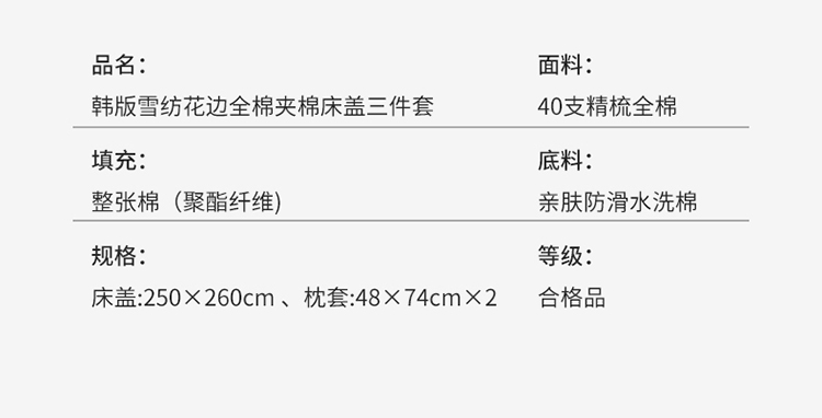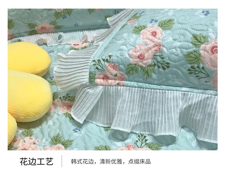商品名称:添越 小清新韩版蕾丝花边纯棉夹棉床盖三件套全棉 安娜花园