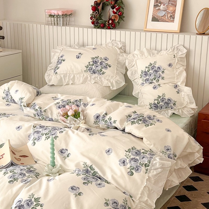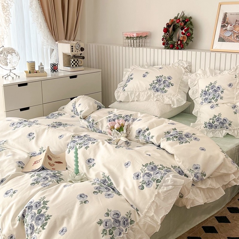(总)昔可家纺 2023新款全棉小花系列四件套,柏林少女,小小的樱桃,紫色葡萄