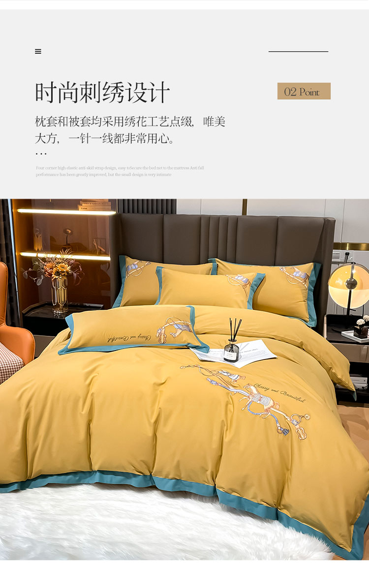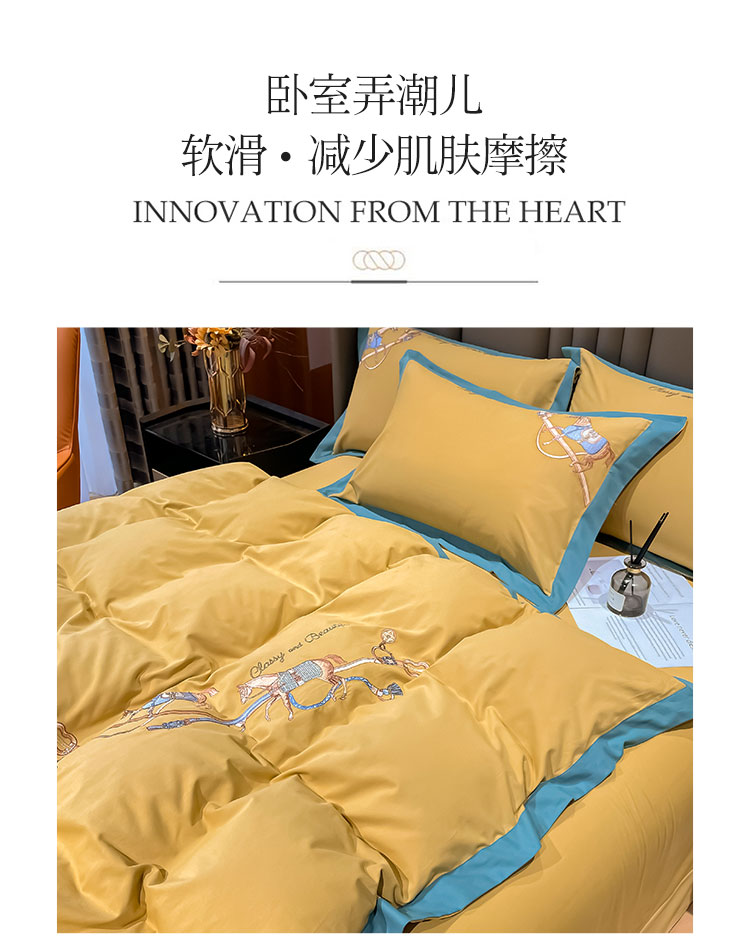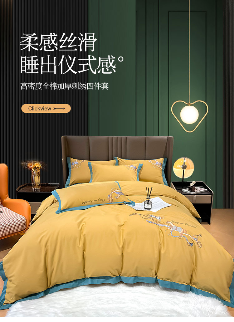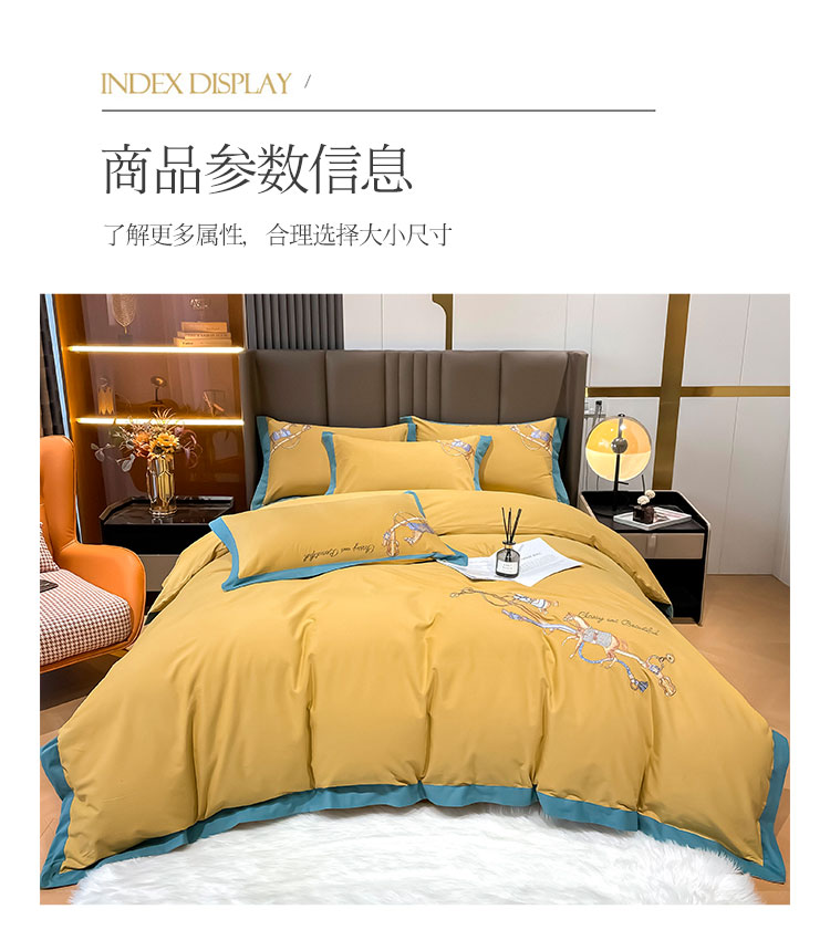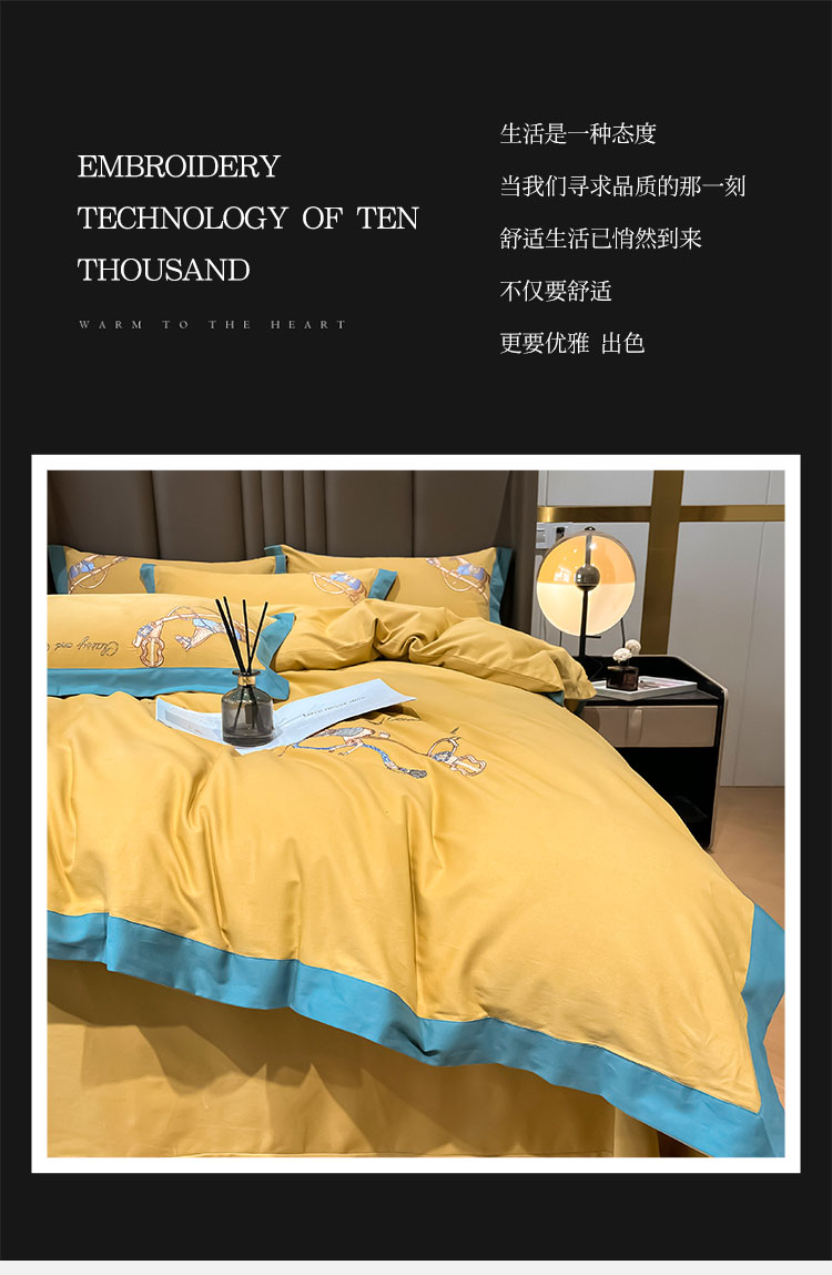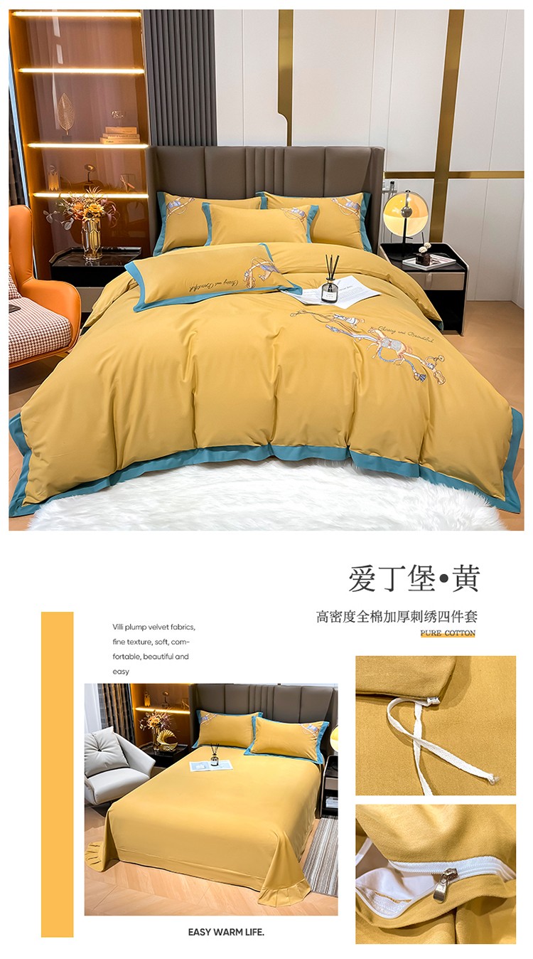 (总)雲归梦 2021新款全棉生态磨毛刺绣四件套,慕思-橙色,慕思-粉紫,慕思-灰,慕思-米黄,慕思-青绿,慕思-天蓝