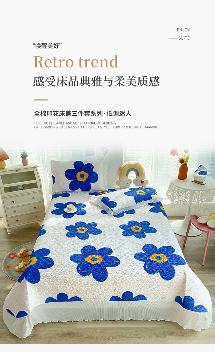 • 91家纺网 家纺一手货源 找家纺 鑫钰 2023全棉印花床盖三件套 奈思-兰