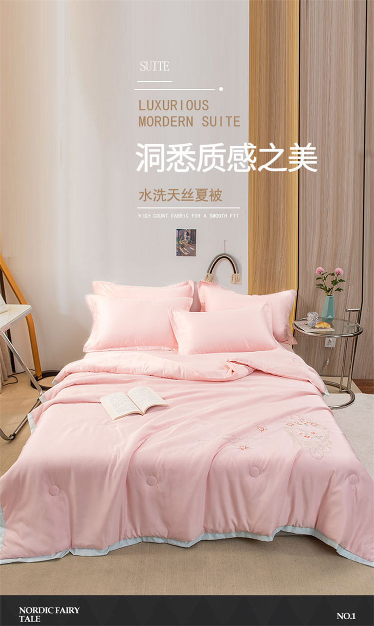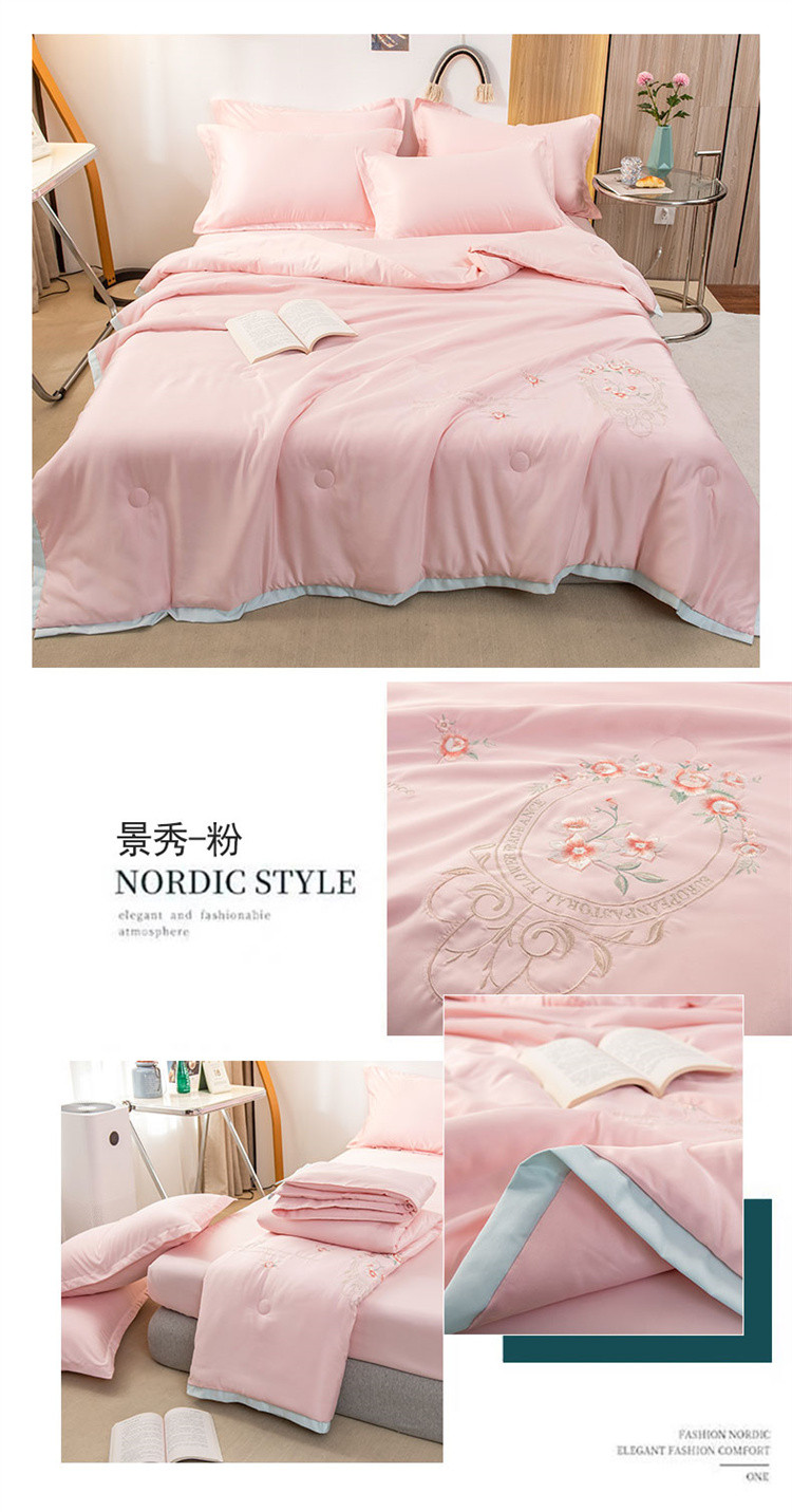 芃成家纺 2022新款水洗天丝绣花夏被子被芯 景秀-粉