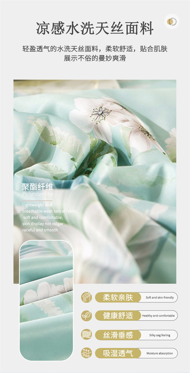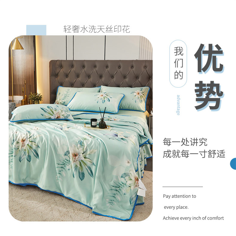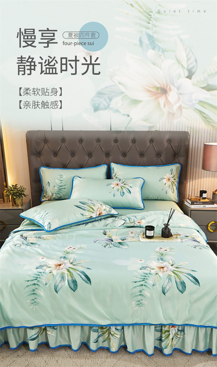 • 91家纺网 家纺一手货源 找家纺 铠畅 2022新款天丝夏被四件套床裙 半夏时光