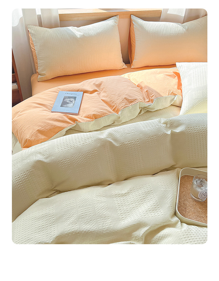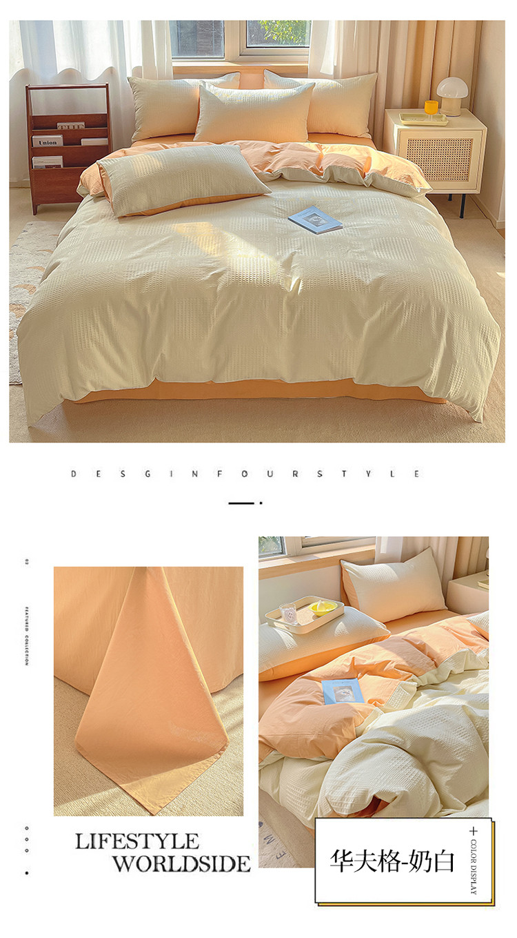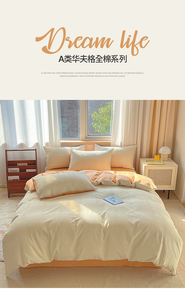 当前位置: 91家纺网 > 商品网购 > 床品套件 > 四件套 > 全棉普通四件套 > 蓝巢 2022新款A类华夫格全棉四件套 华夫格-奶白