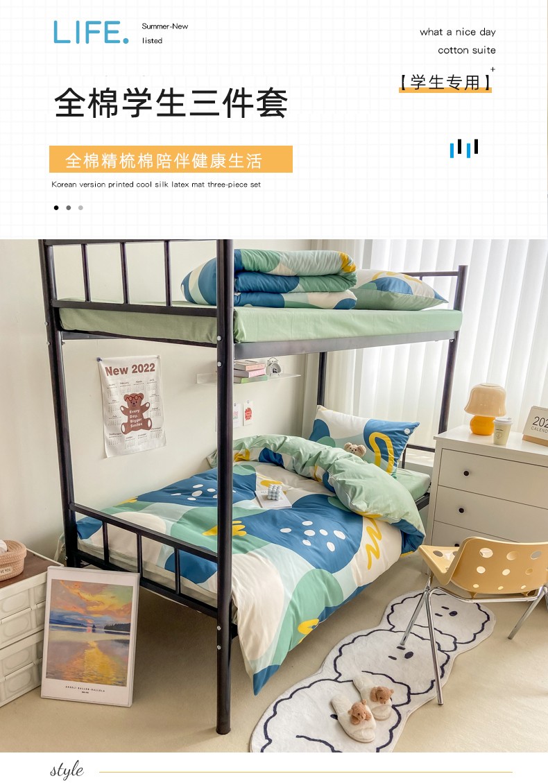 吉象 2022新款全棉印花学生宿舍三件套 悉尼绿