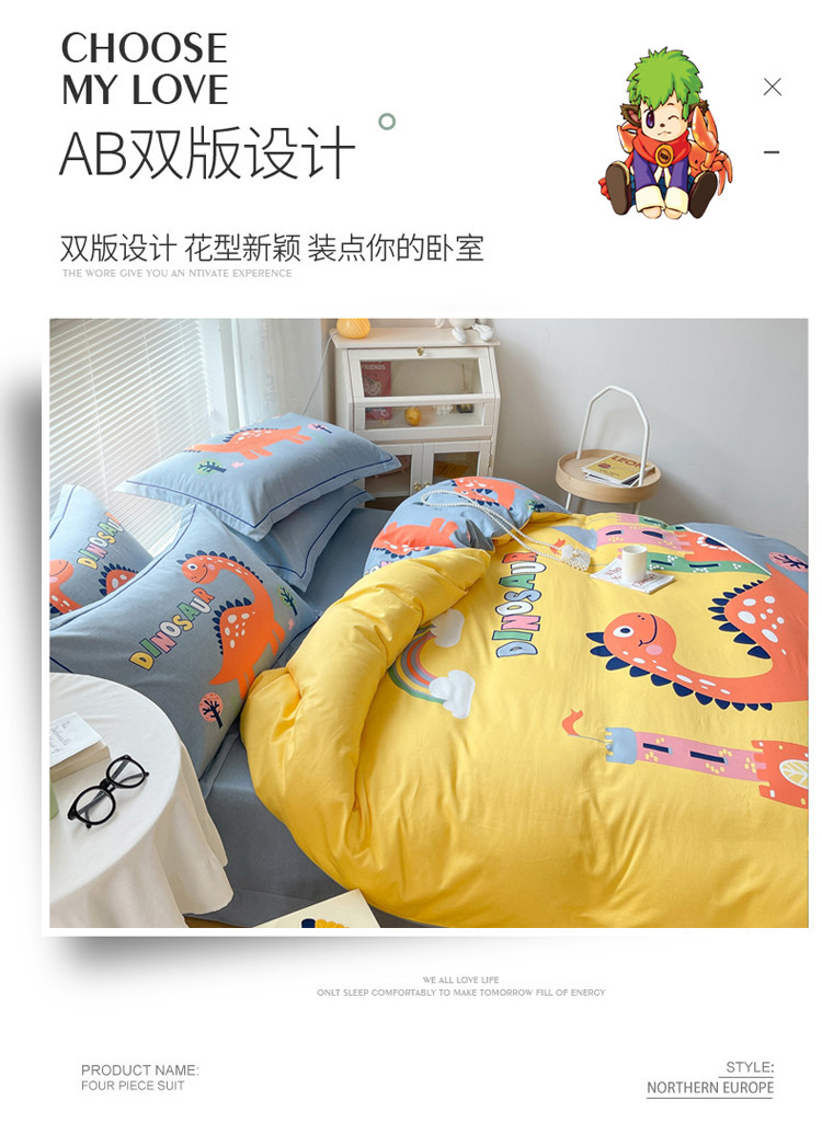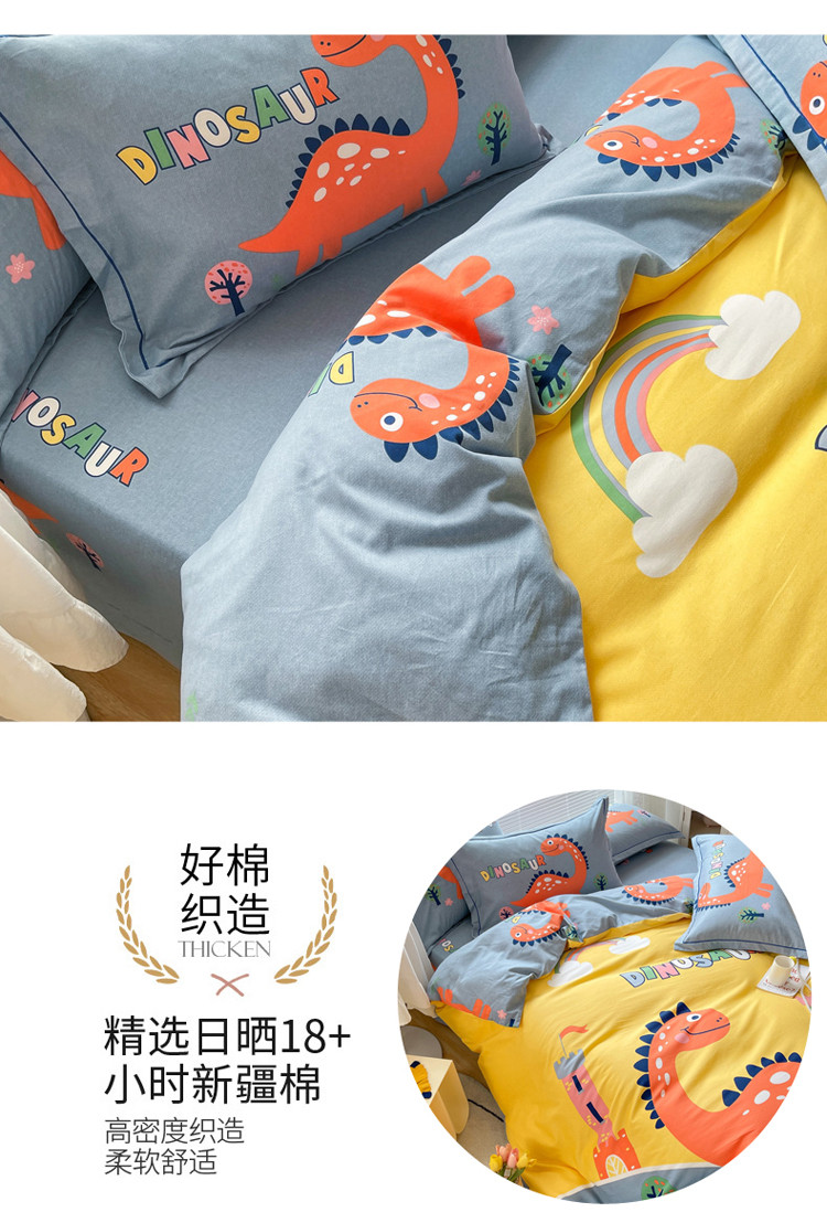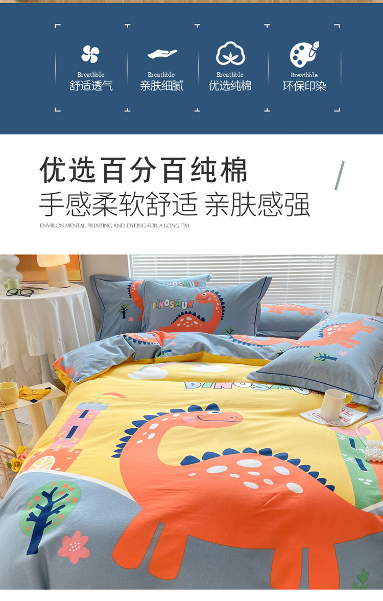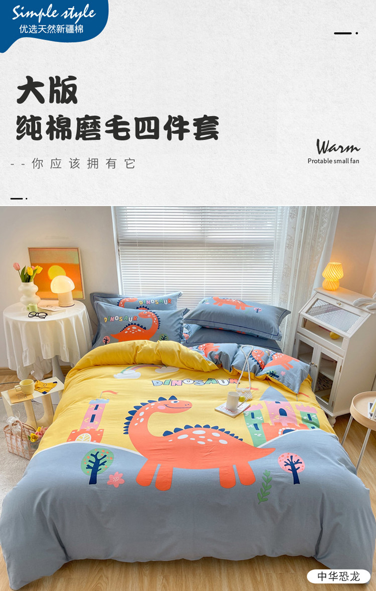 当前位置: 91家纺网 > 商品网购 > 床品套件 > 四件套 > 普通磨毛四件套 > 金爱家 2023新款大版卡通磨毛四件套 中华恐龙