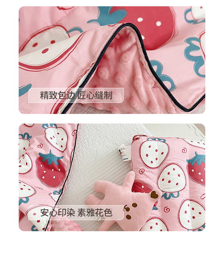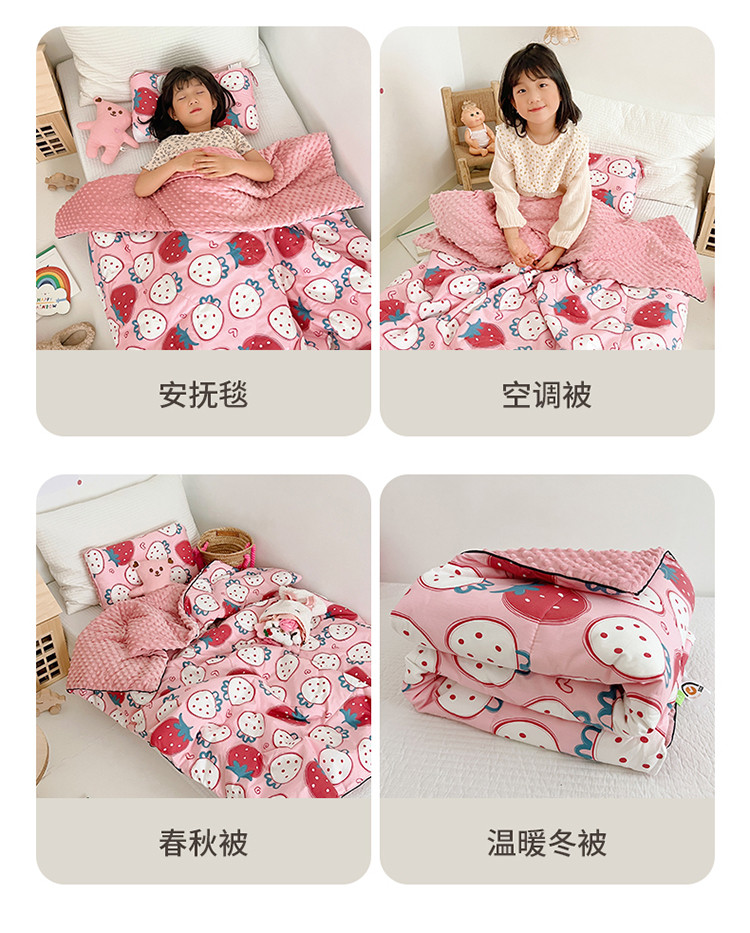 2025年新款幼儿园全棉被子三件套宝宝入园纯棉六件套被褥午睡被套草莓甜心,草莓甜心