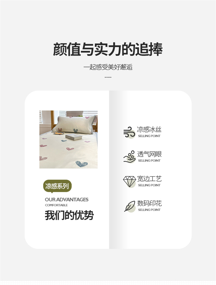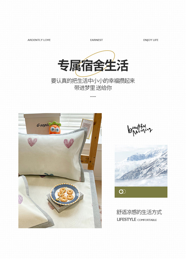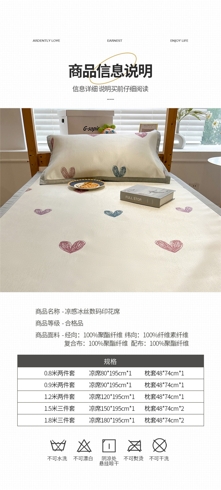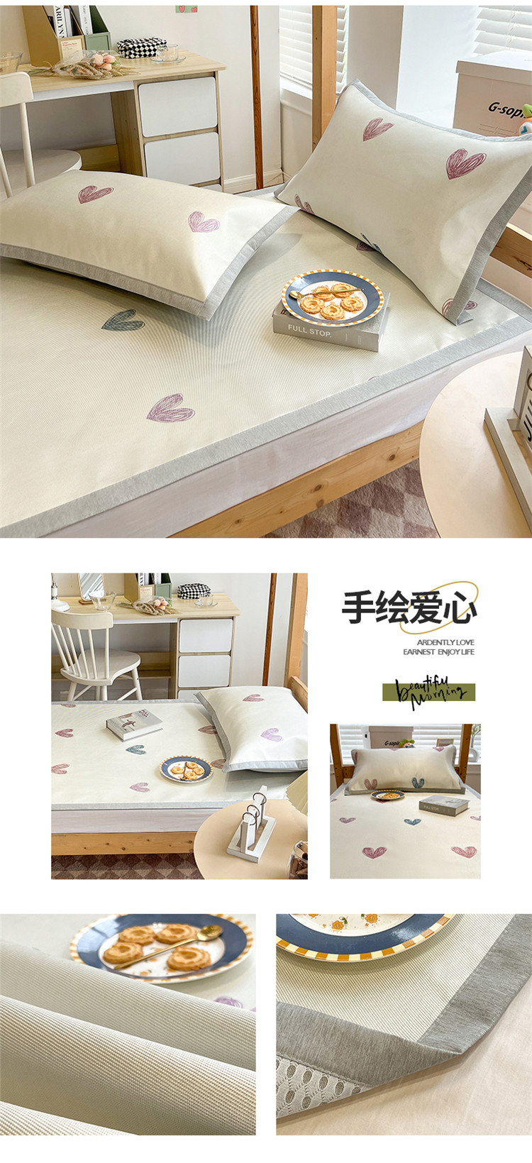 商品名称:懒猫家纺 2022新款学生宿舍冰丝数码印花凉席 手绘爱心