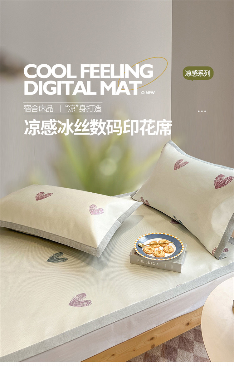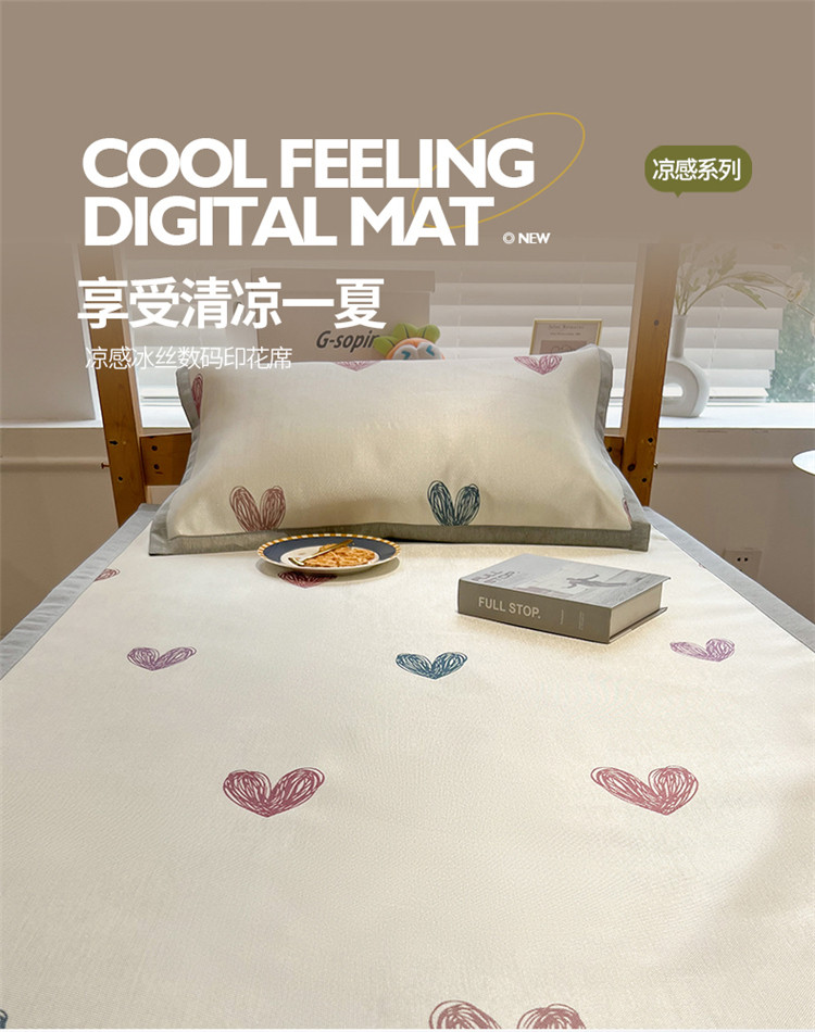 懒猫家纺 2022新款学生宿舍冰丝数码印花凉席 手绘爱心