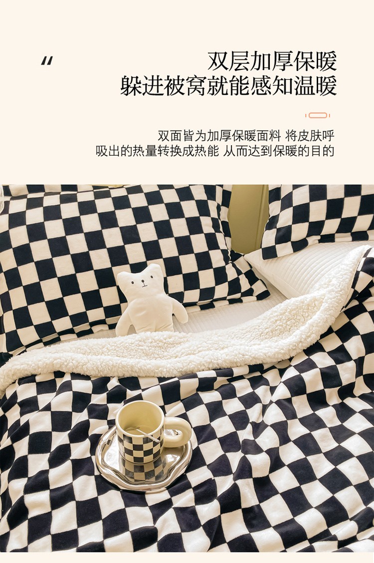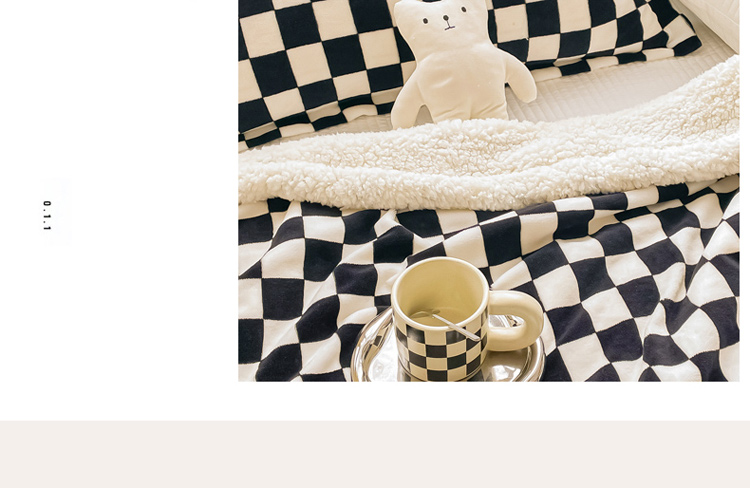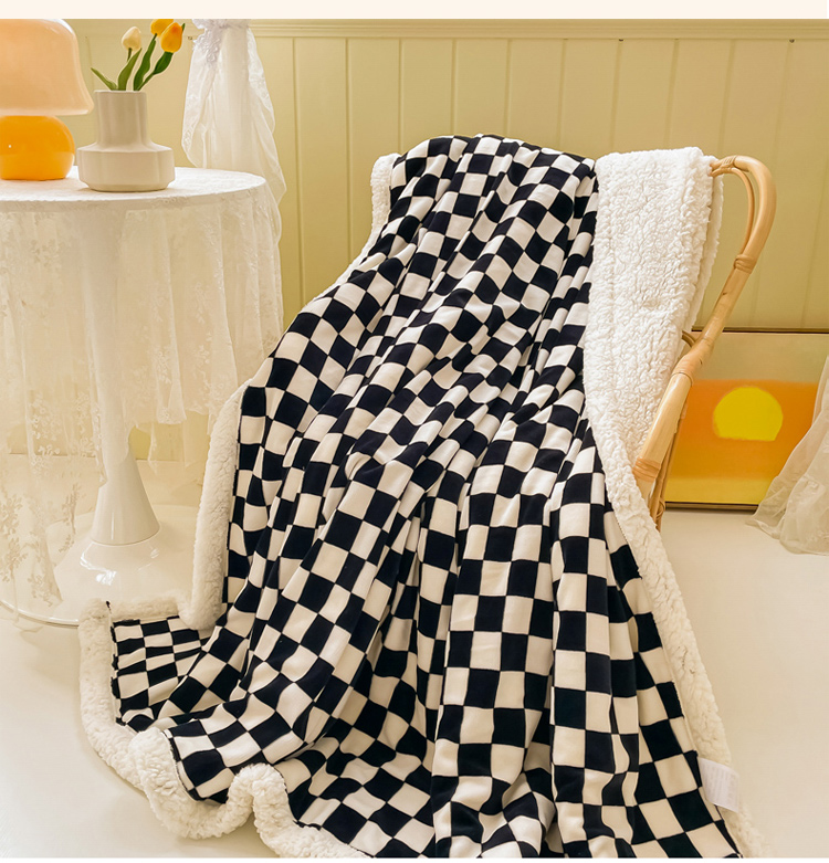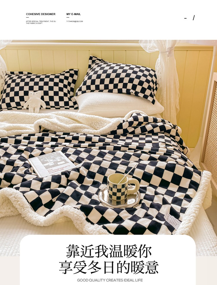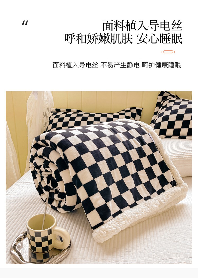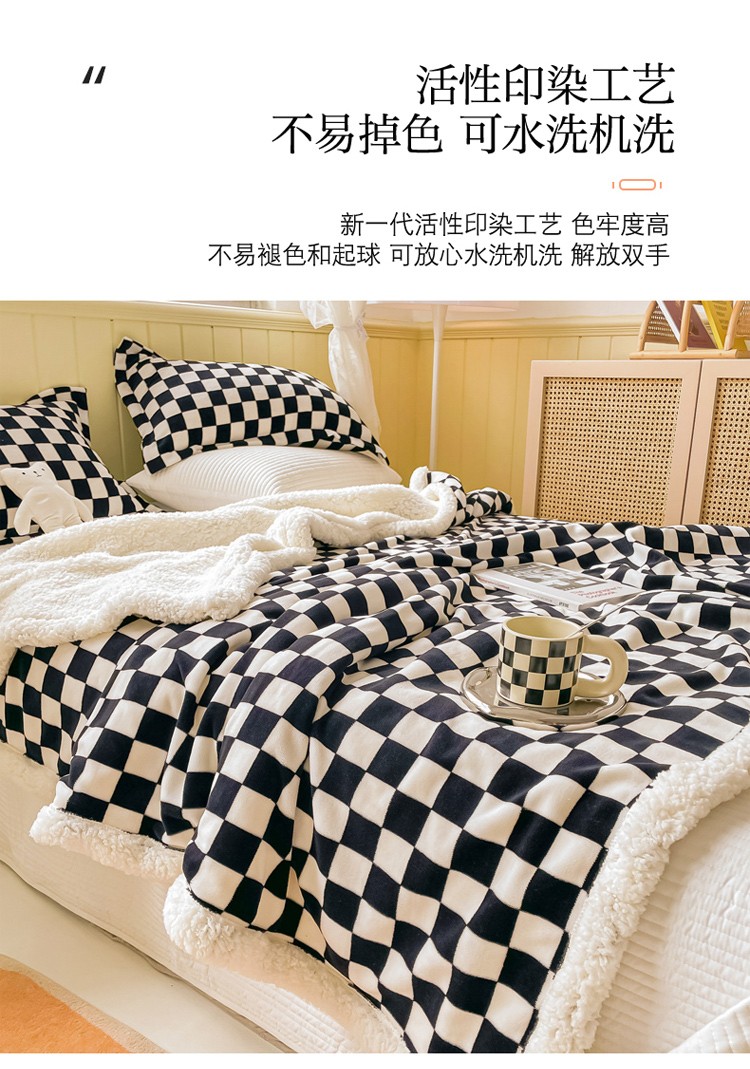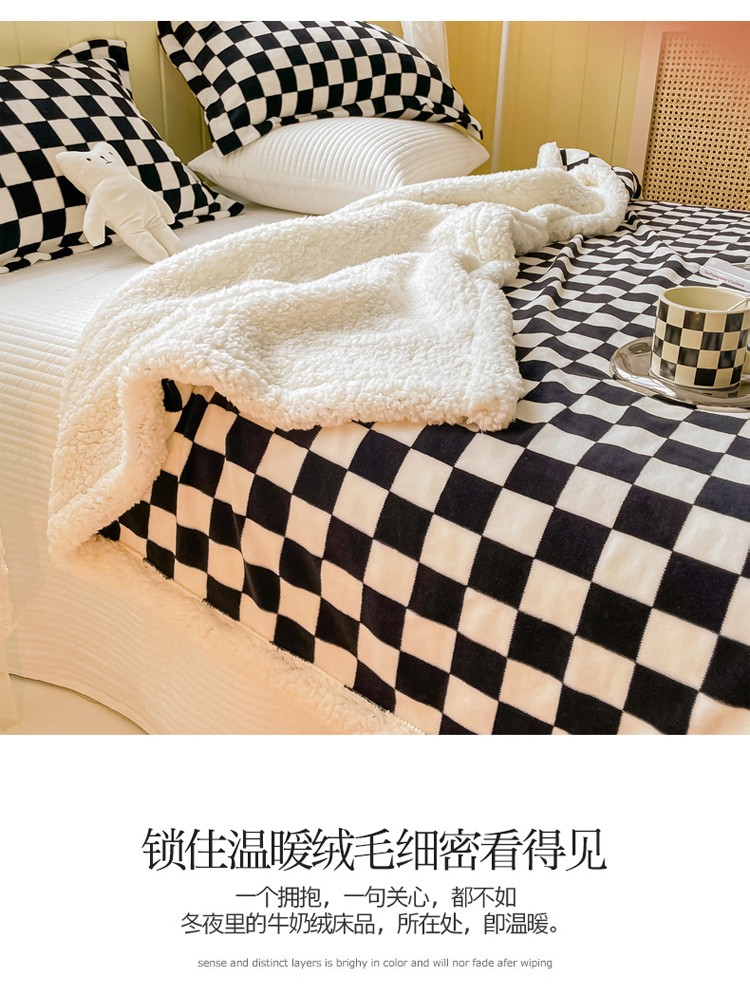 商品名称:沐慕 2022新款牛奶绒拼羊羔绒毛毯 黑白格