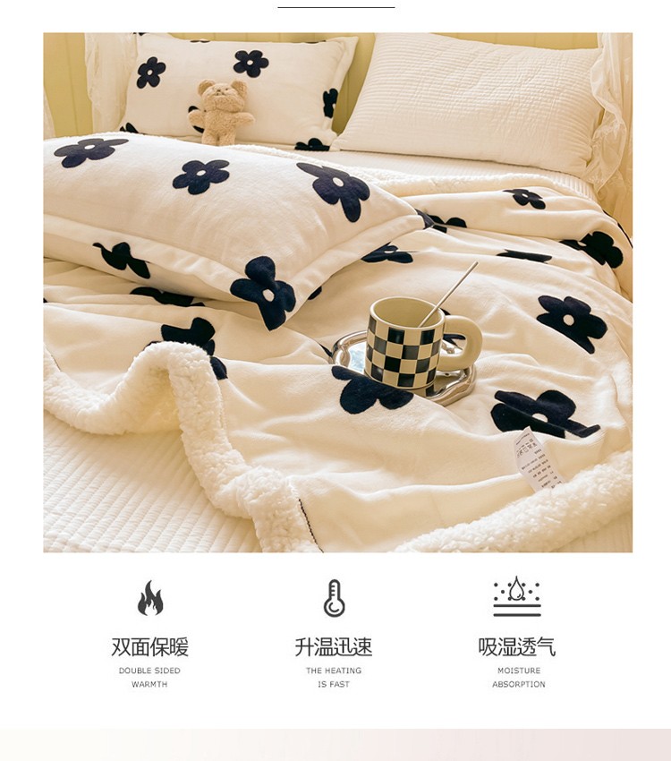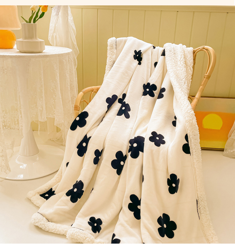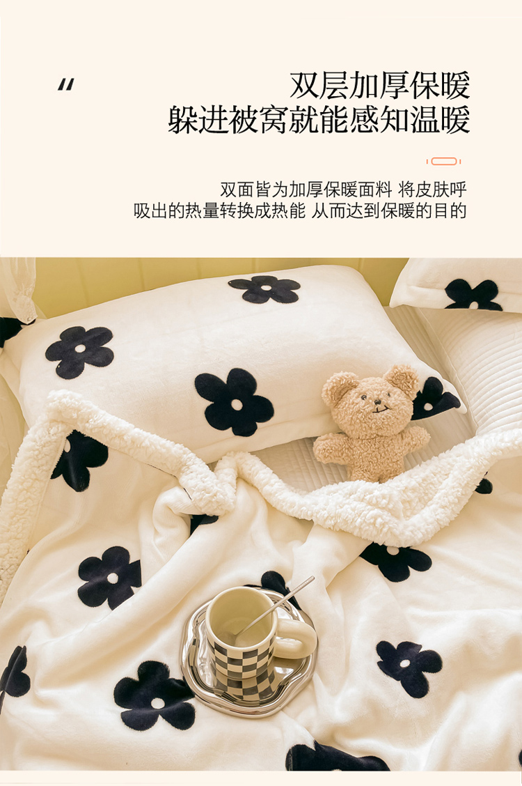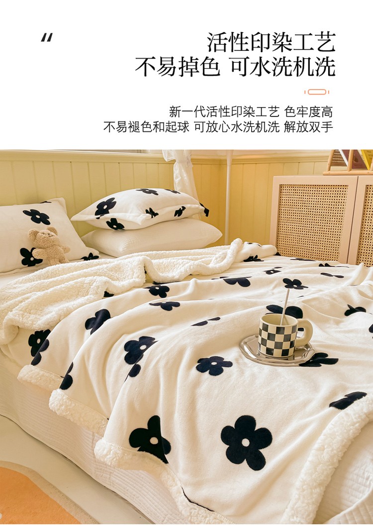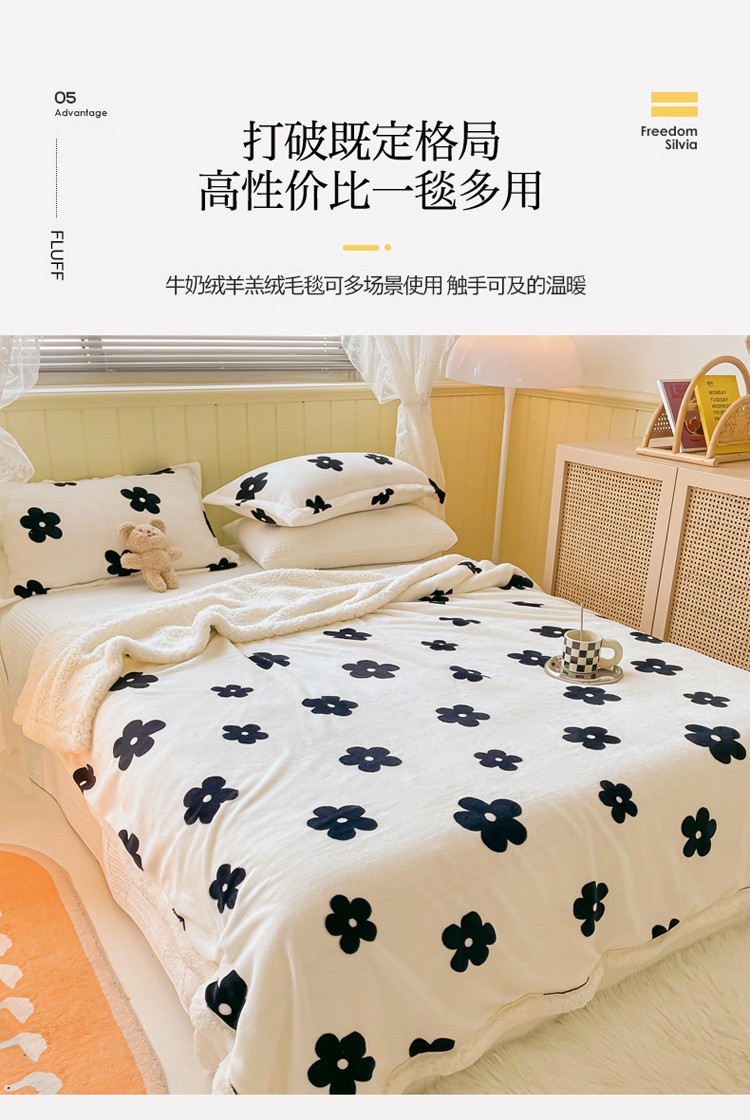 商品名称:沐慕 2022新款牛奶绒拼羊羔绒毛毯 香系花花