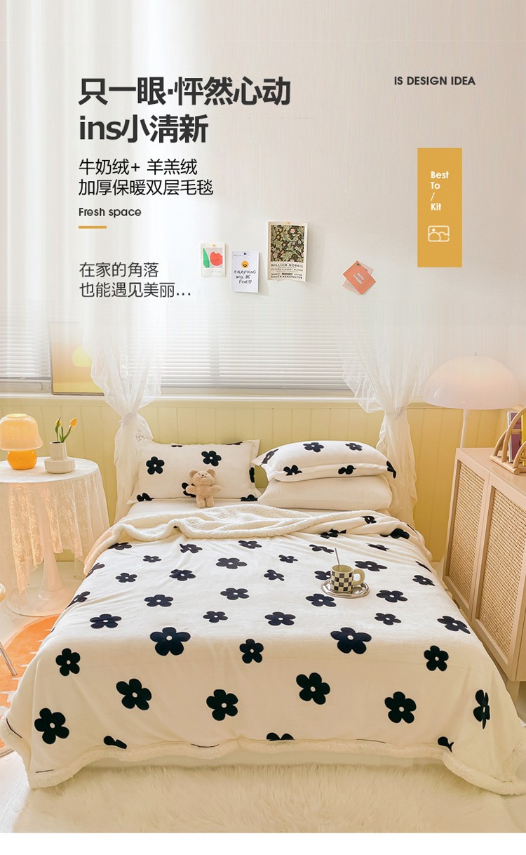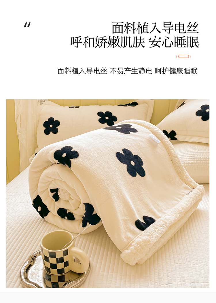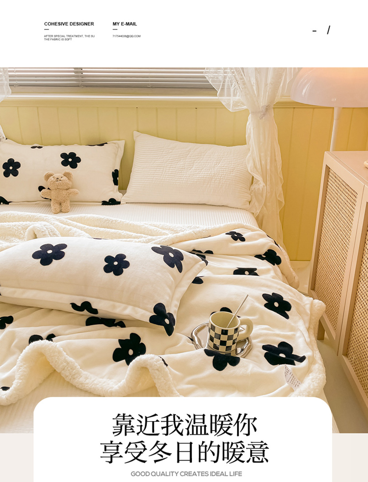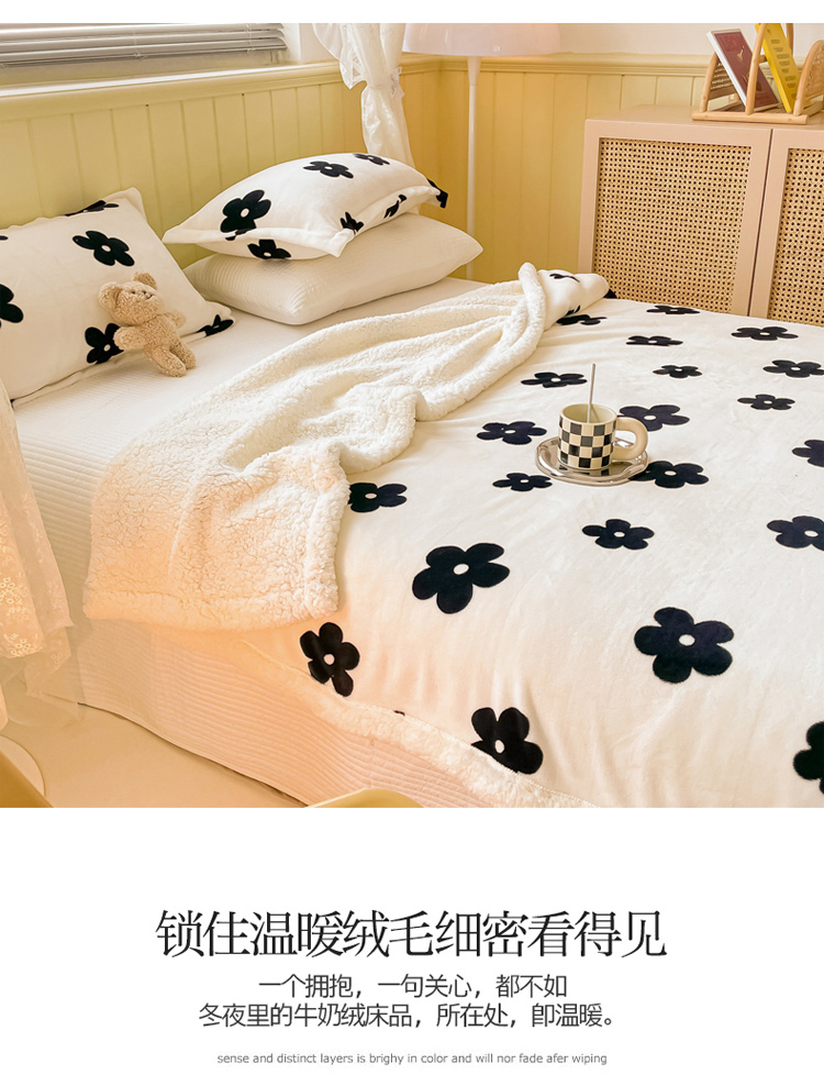 商品名称:沐慕 2022新款牛奶绒拼羊羔绒毛毯 香系花花