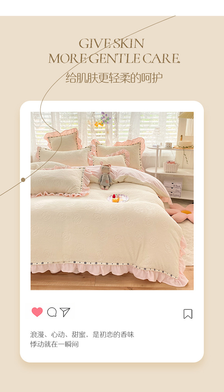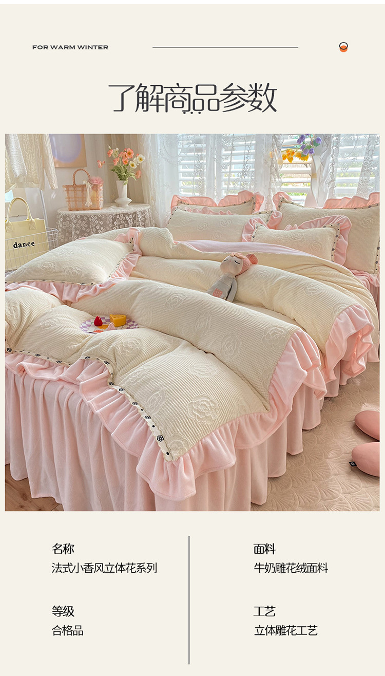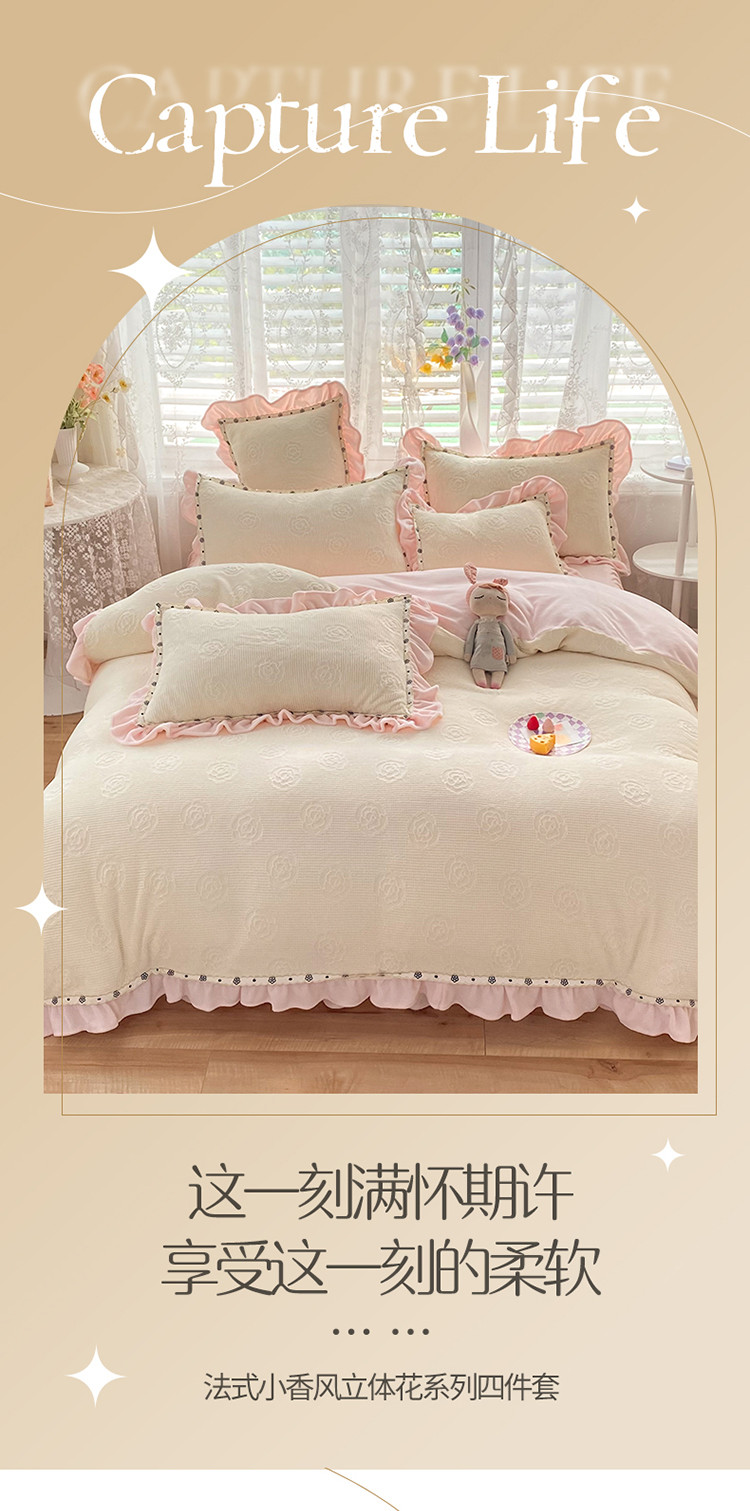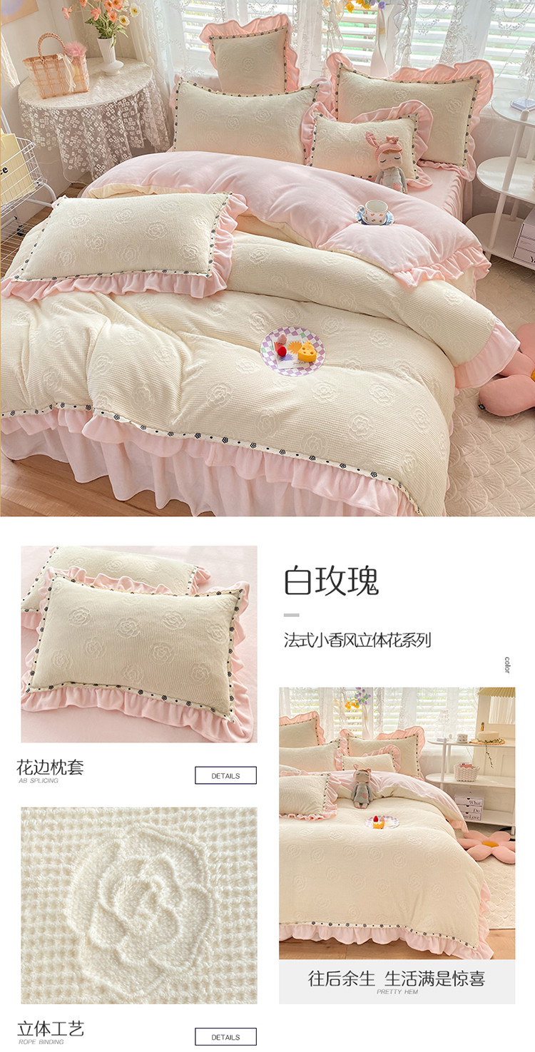 (总)恩和 2024新款牛奶绒雕花绒法式小香风四件套,白玫瑰,粉玫瑰,萝莉蓝,萝莉紫
