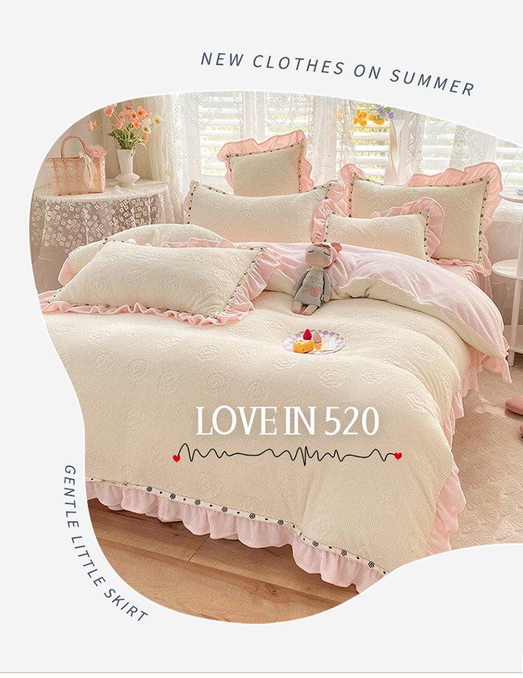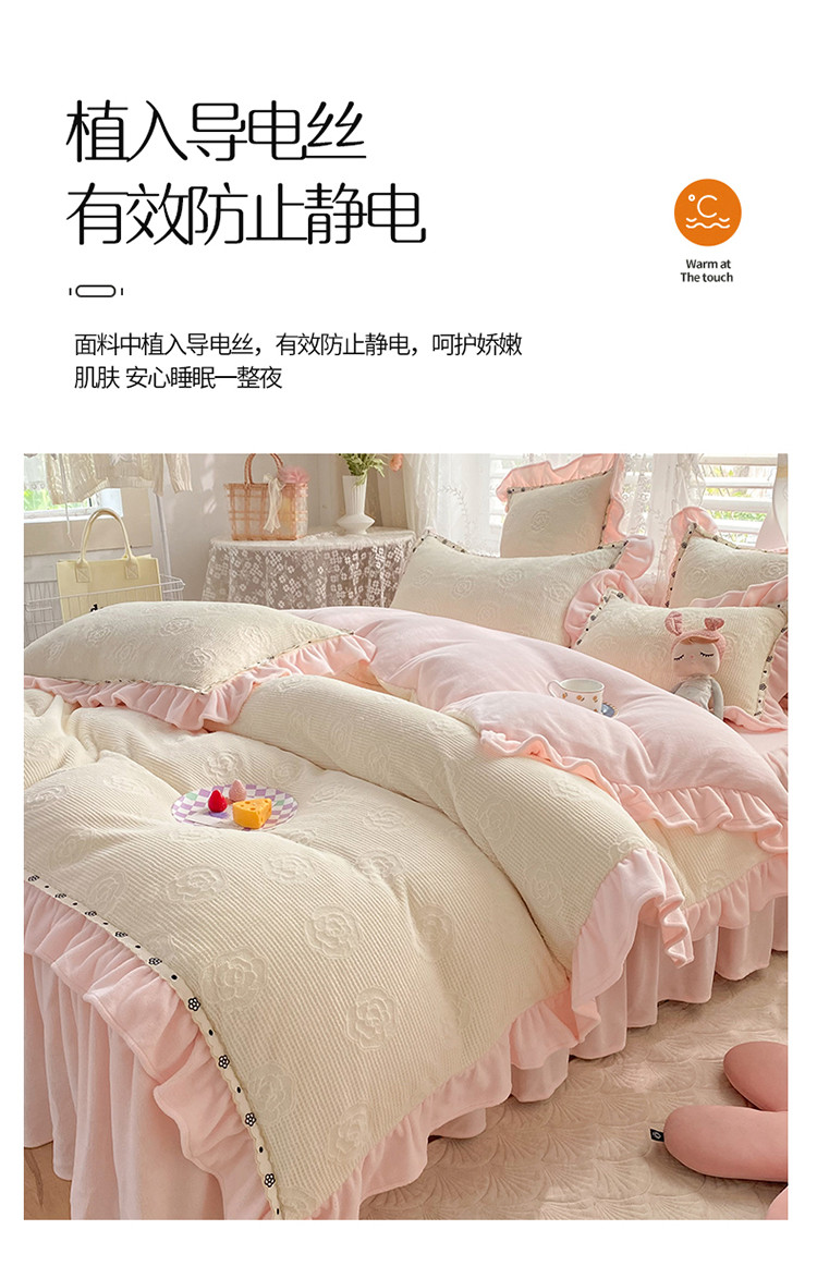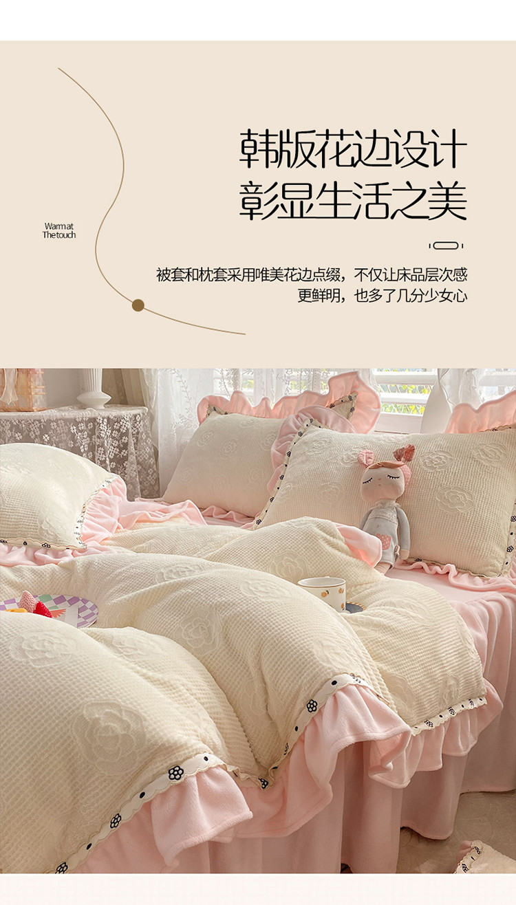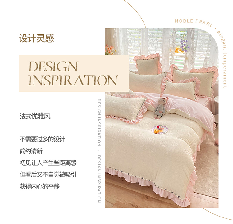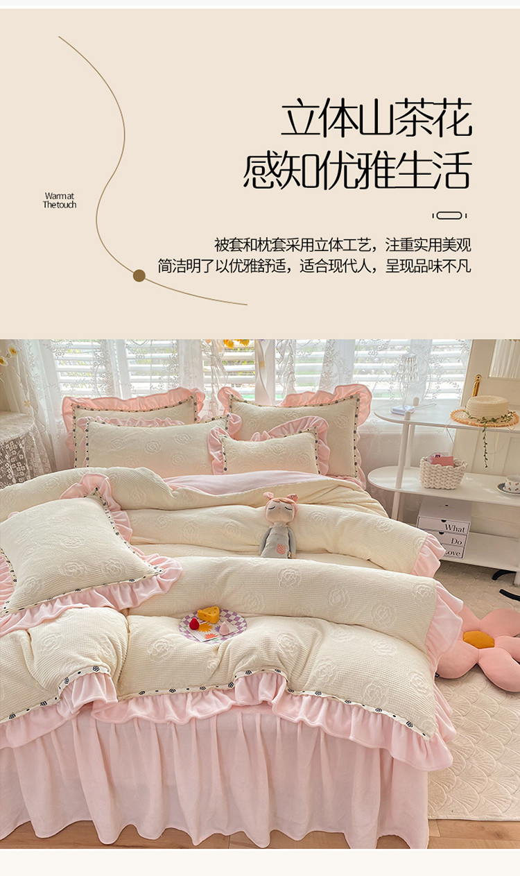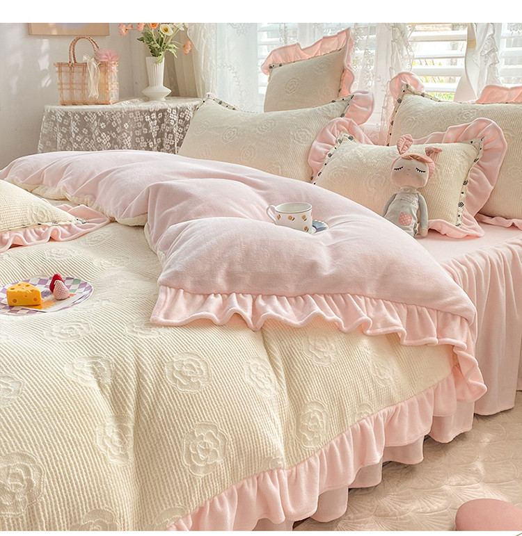 (总)恩和家纺 2025新款白色薄纱双层飞边牛奶绒四件套,粉玉,灰色,米白,米驼